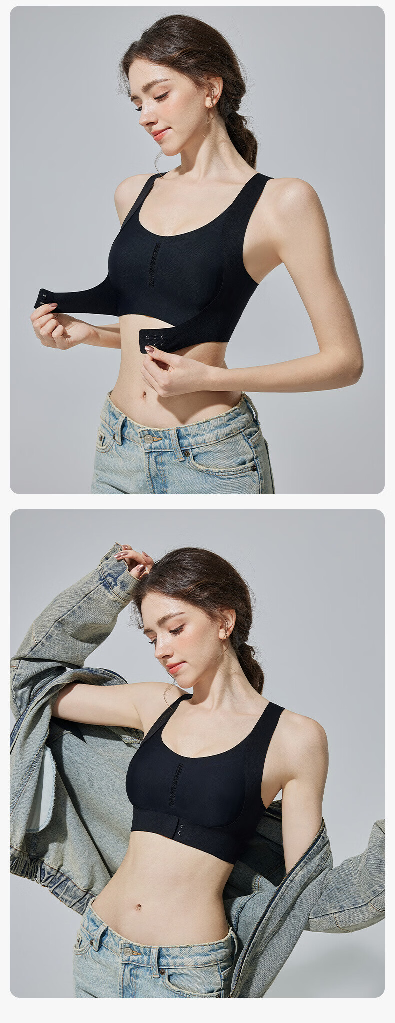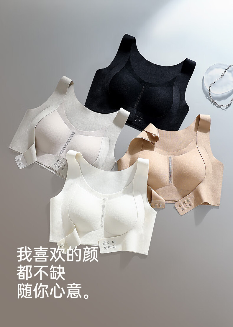 DAPHNE达芙妮【M】前扣提拉美背文胸无钢圈聚拢防下垂薄款大码运动 黑色【半固定内衣】 M建议90-105斤