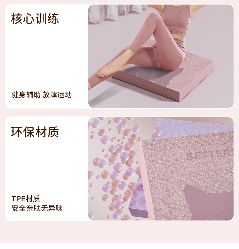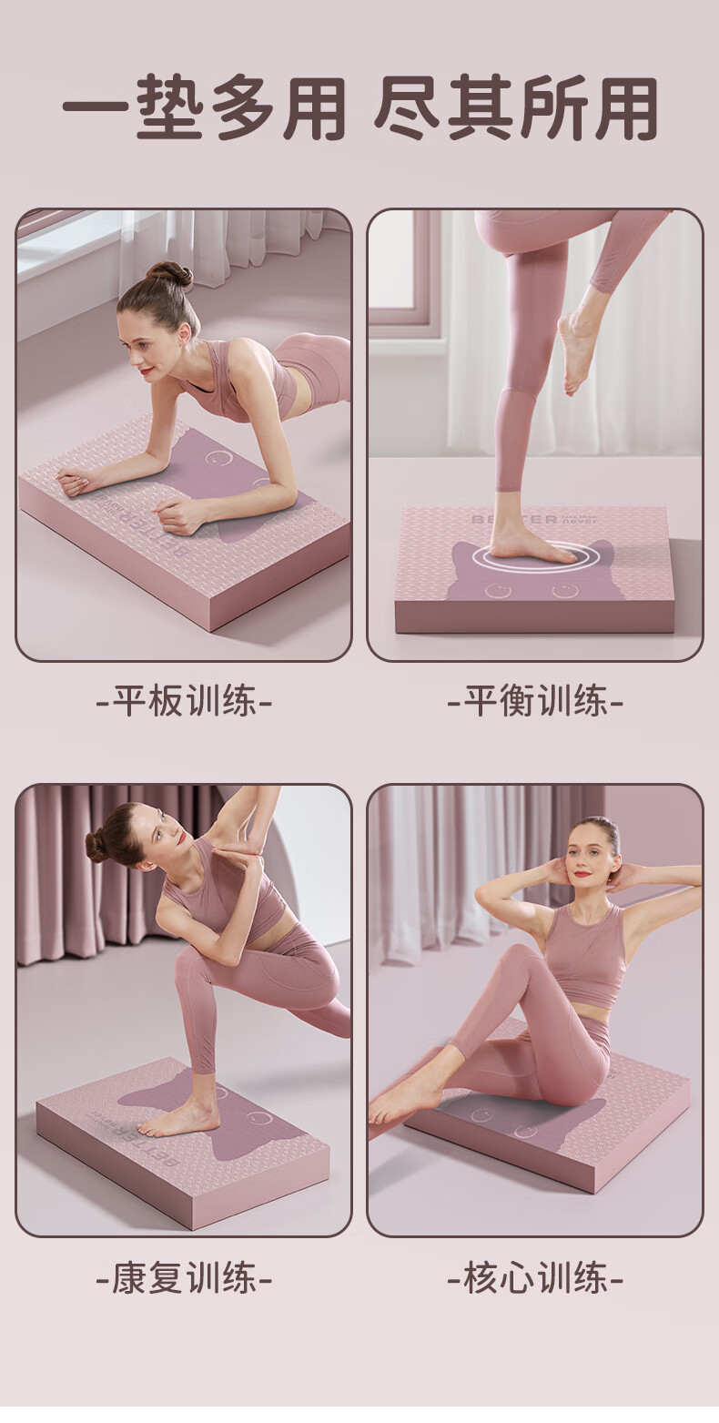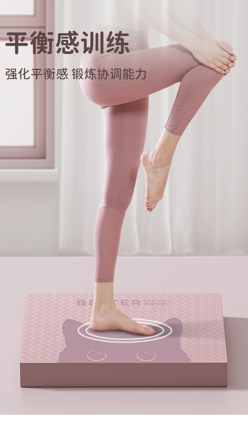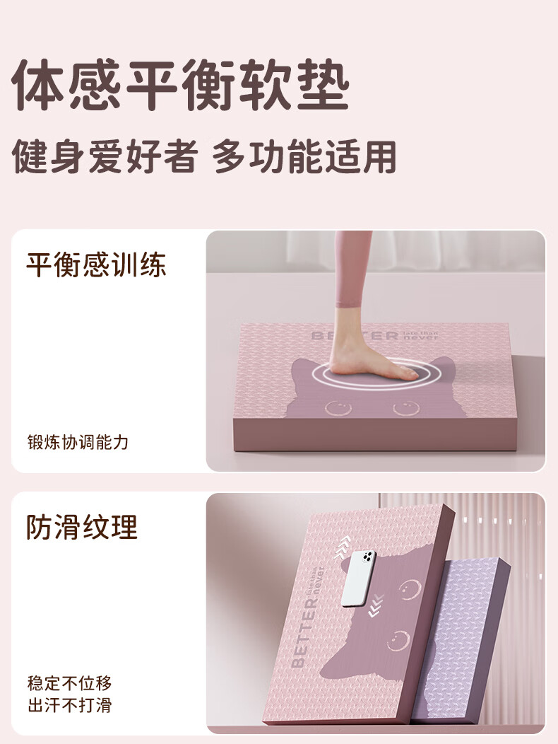 OGOGO平衡垫瑜伽垫平板支撑核心训练瑜伽健身静音防滑加厚软踏泡沫跪垫 猫咪款【40X60X6CM】粉色