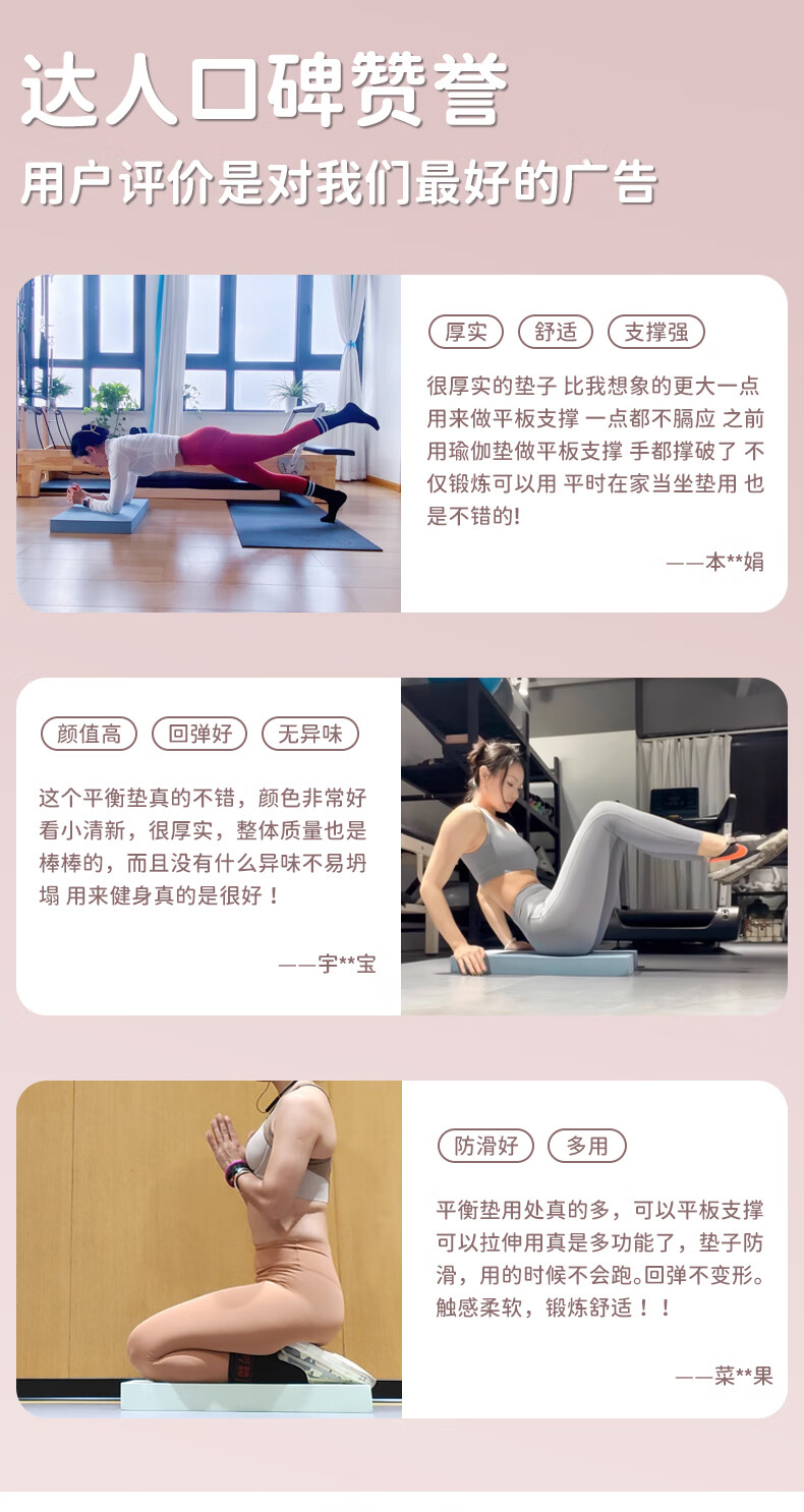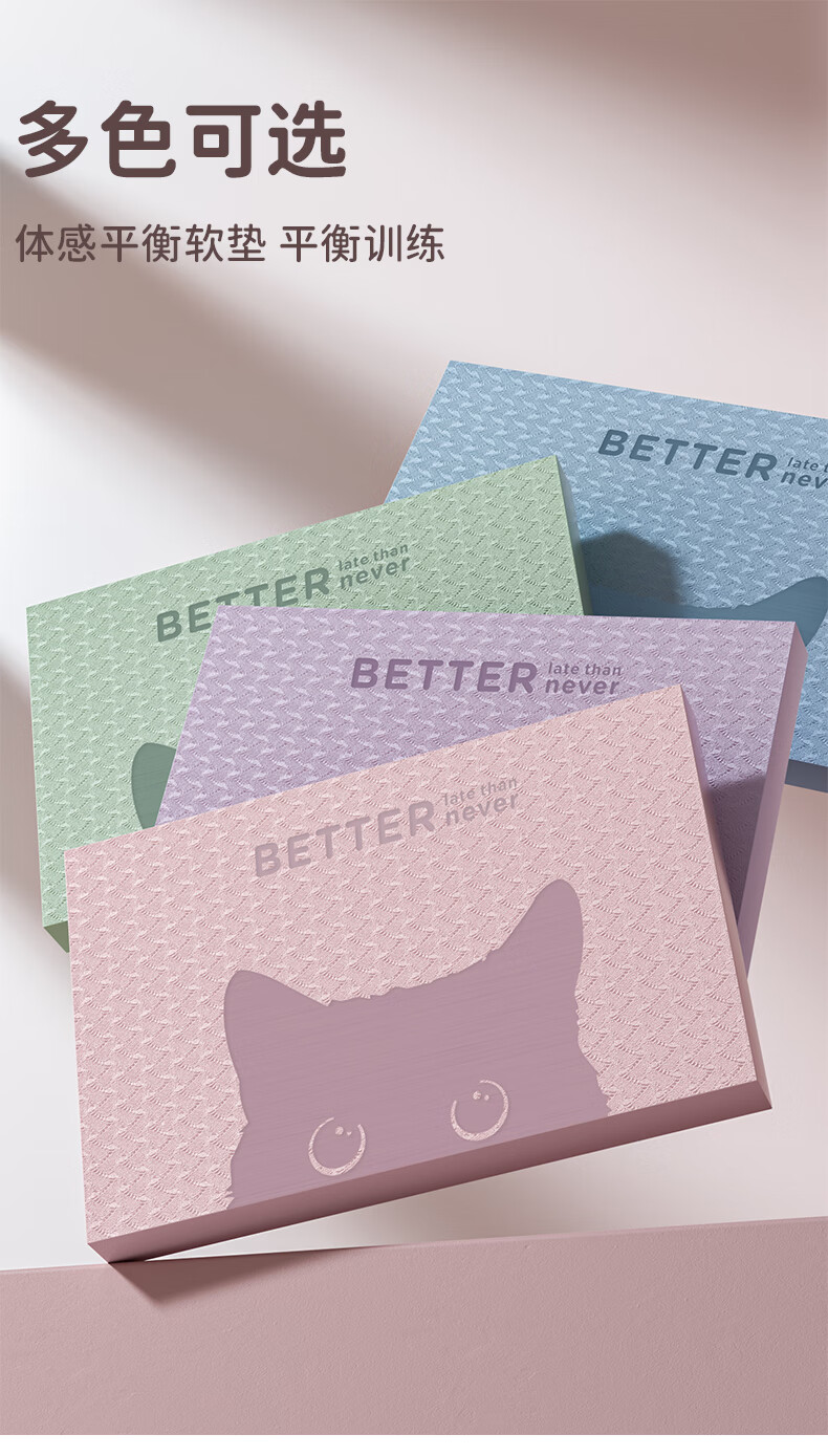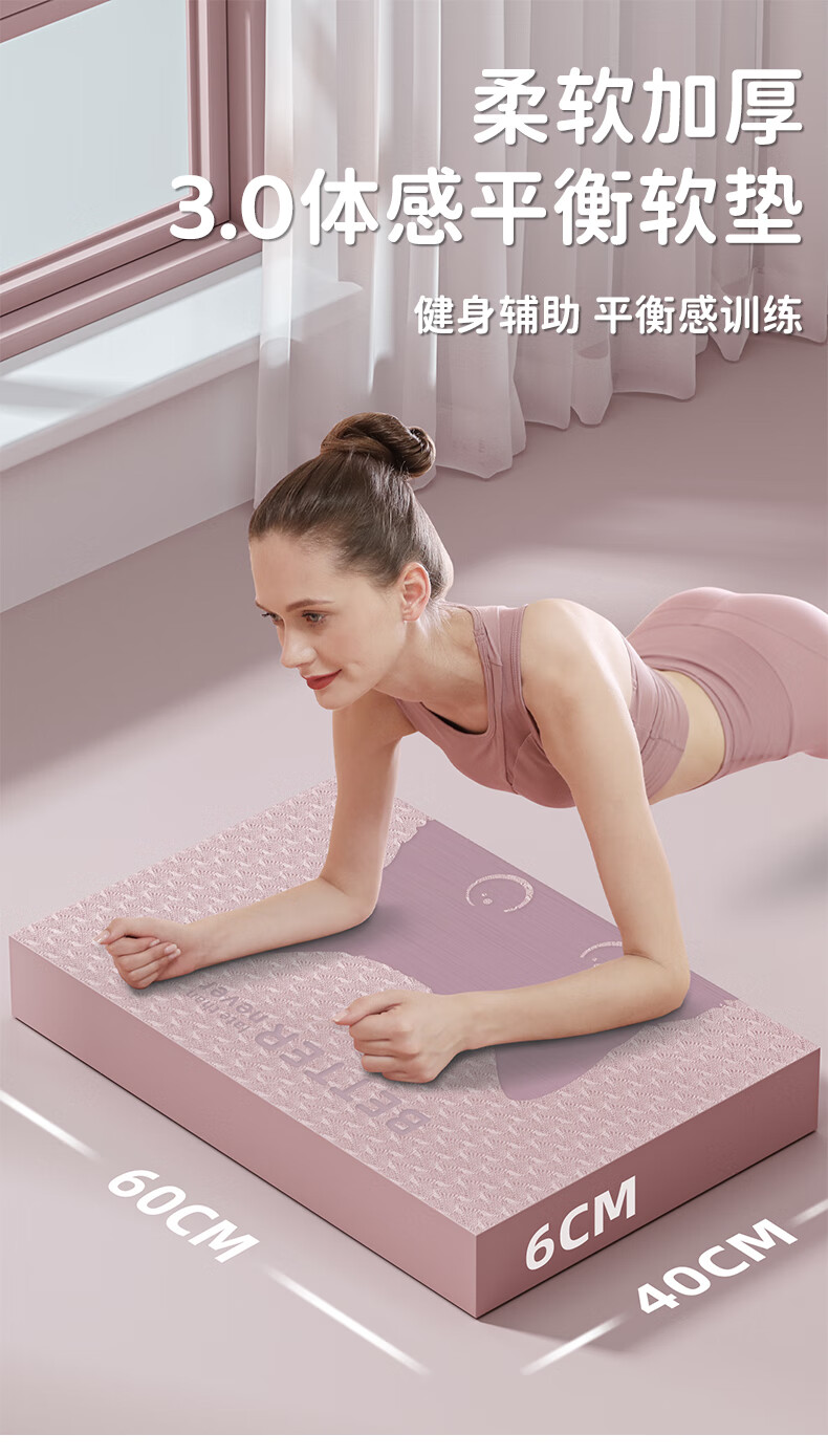 OGOGO平衡垫瑜伽垫平板支撑核心训练瑜伽健身静音防滑加厚软踏泡沫跪垫 猫咪款【40X60X6CM】粉色