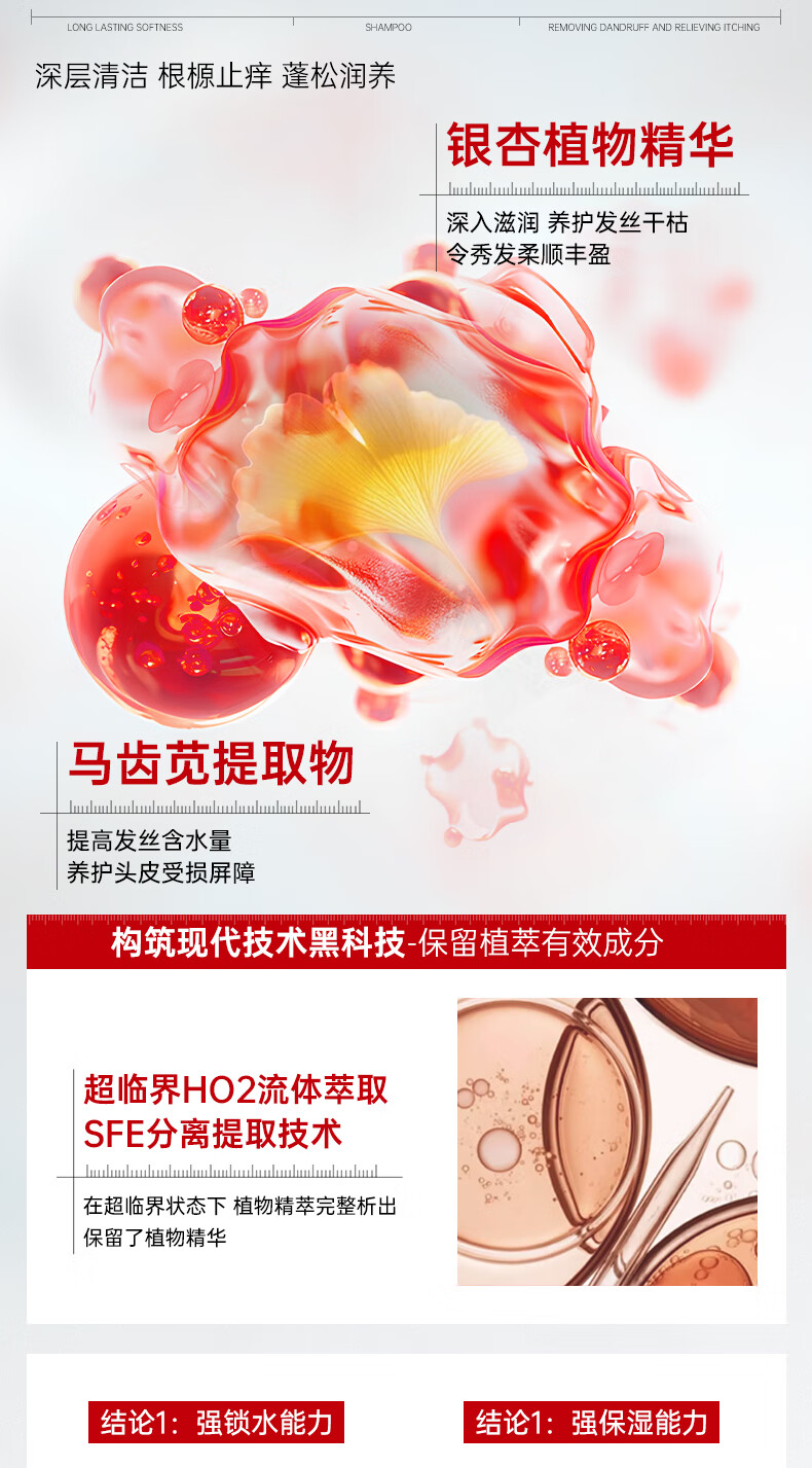 OHBT生姜防脱育发洗发水500ml固发增发密发侧柏叶洗头膏露男女金榜 红色