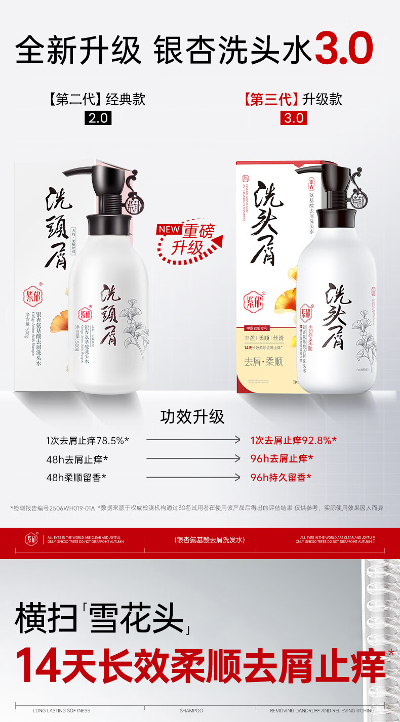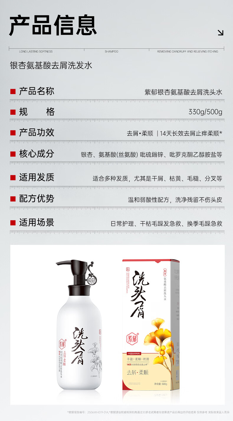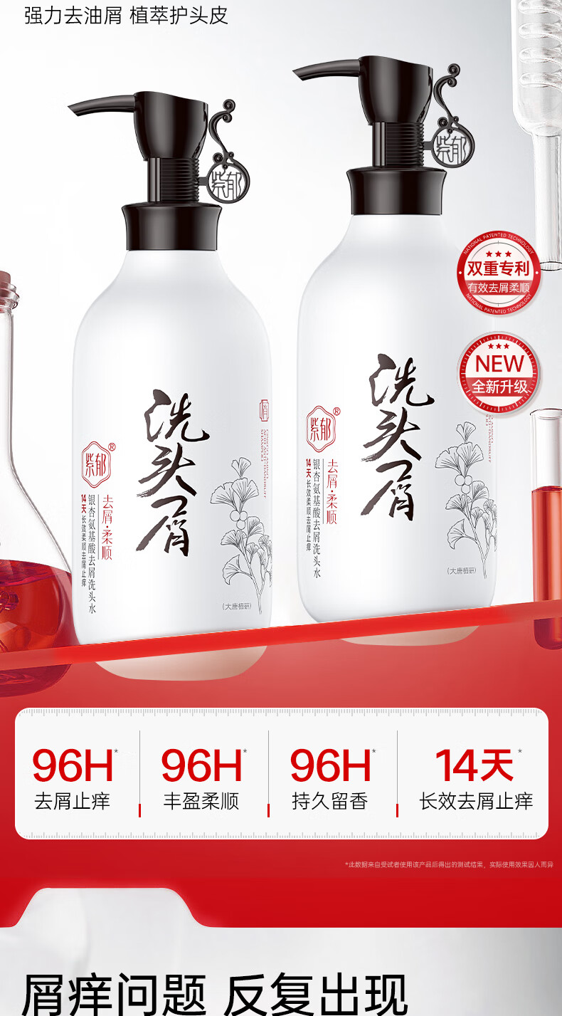 紫郁洗发水护发素沐浴露套装女去屑止痒控油清洁柔顺留香修护舒缓 银杏洗500g+护500ml+沐500g