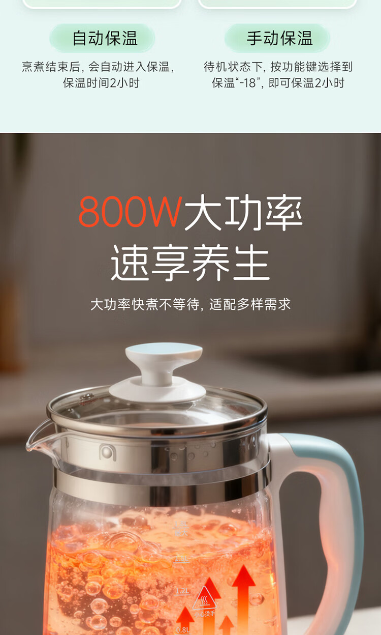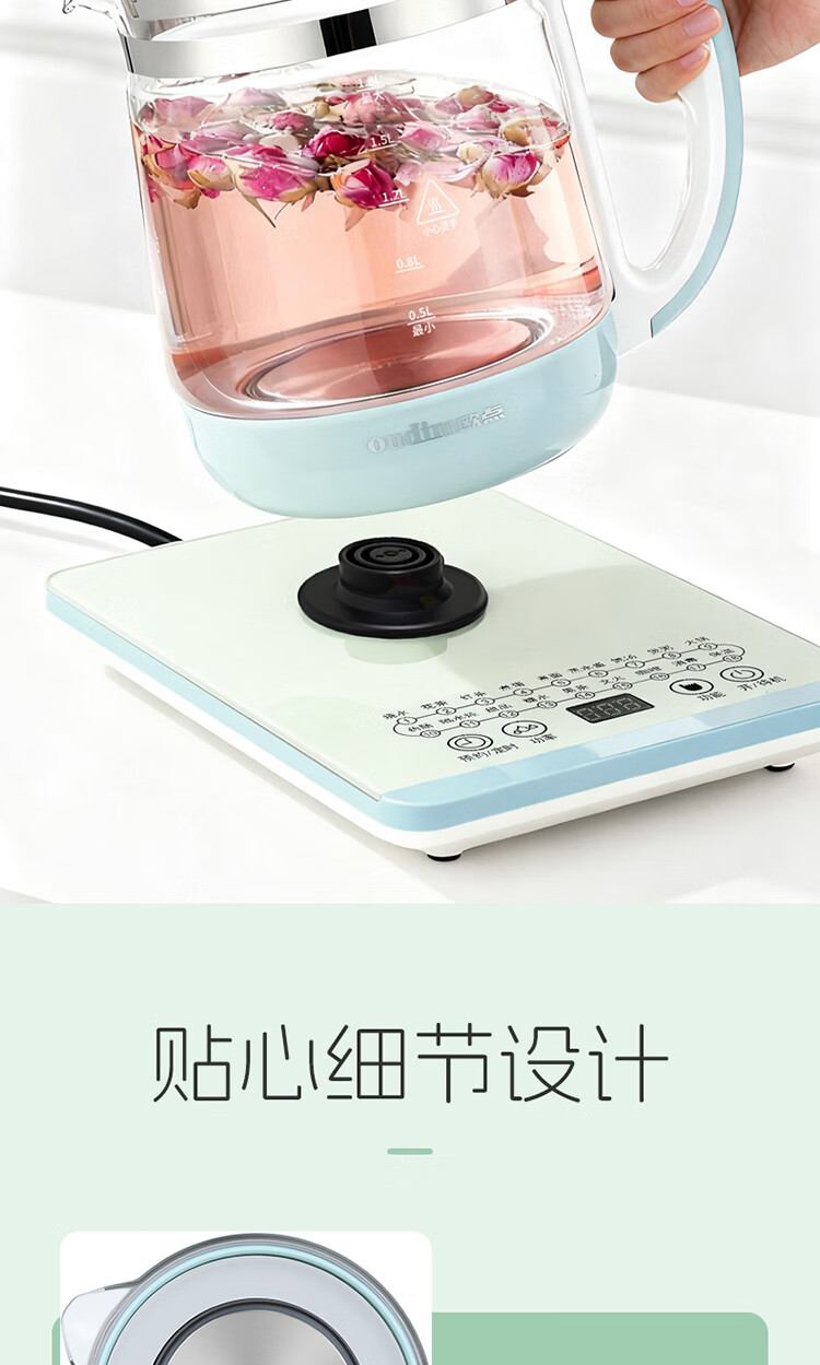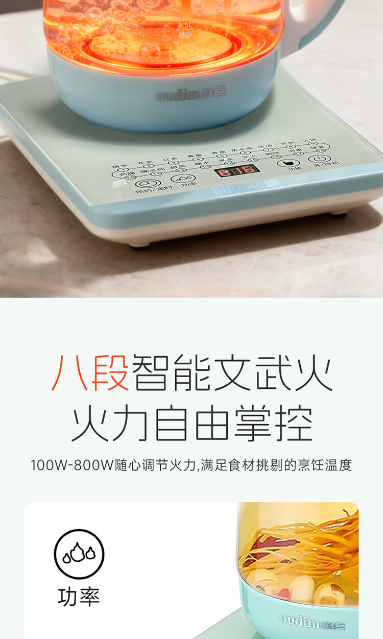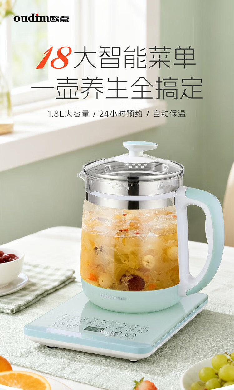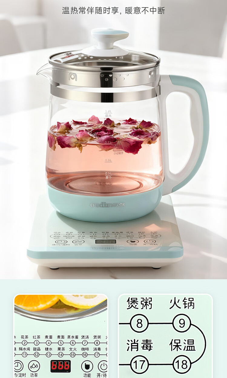 欧点 多功能养生壶玻璃煮茶器保温容量1.8升养身壶定时预约烧水壶304不锈钢煮茶壶煮茶器泡茶壶 【时控款】 1.8L