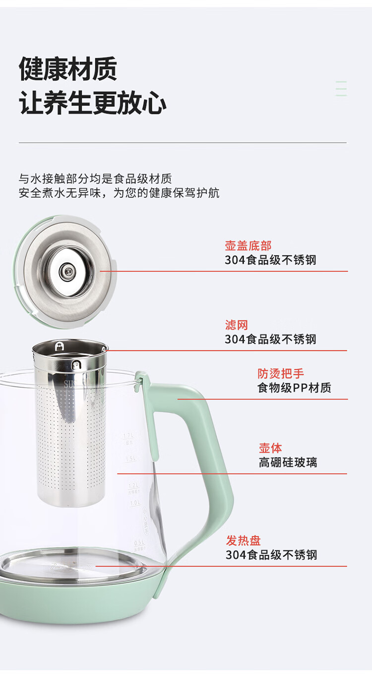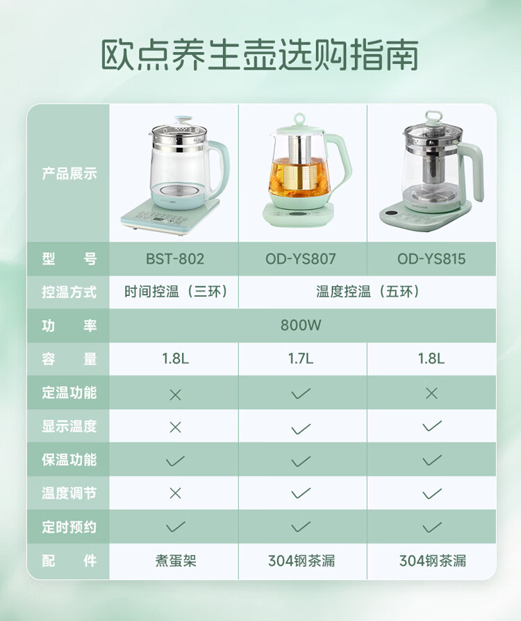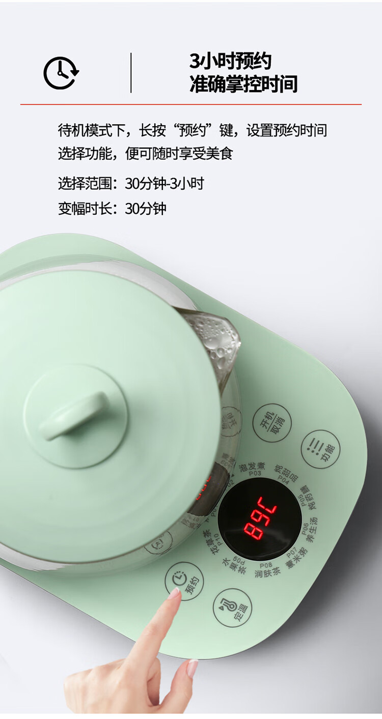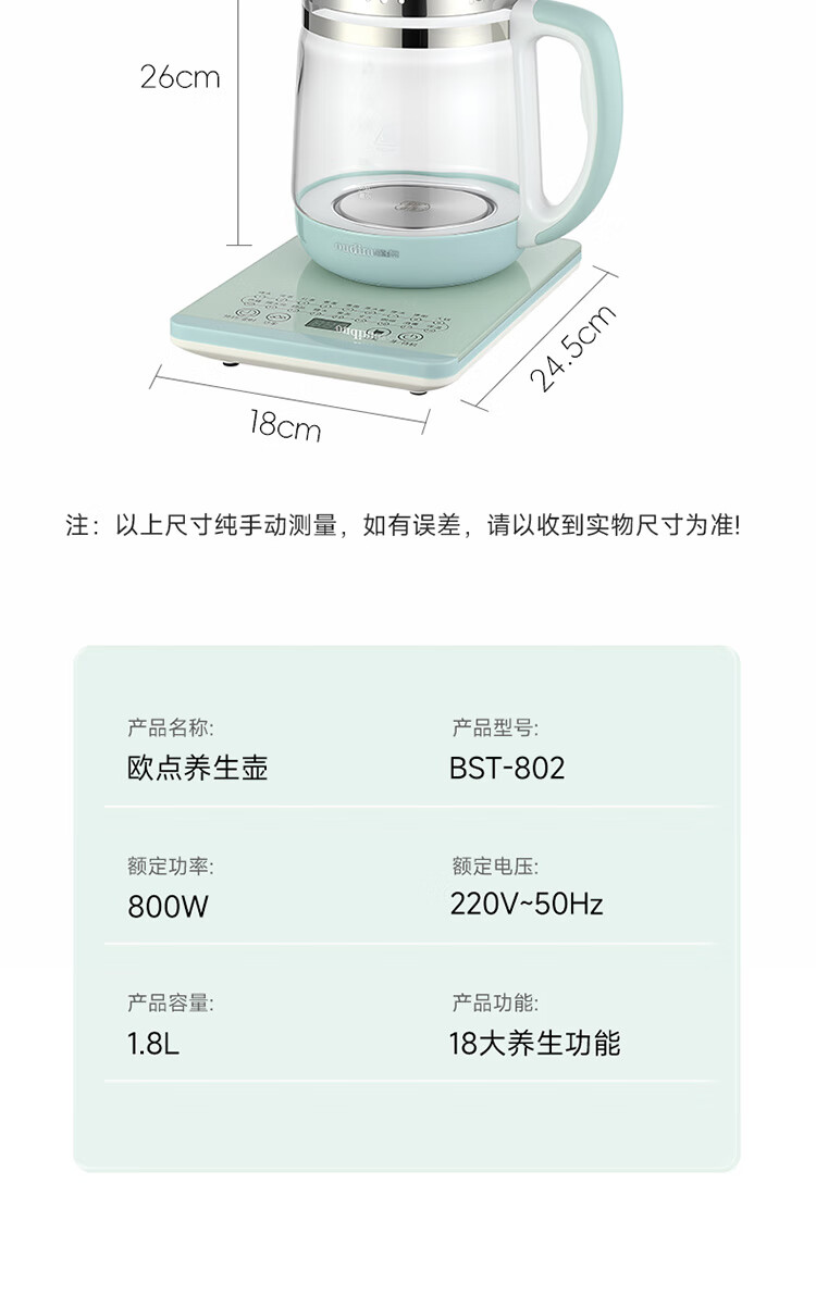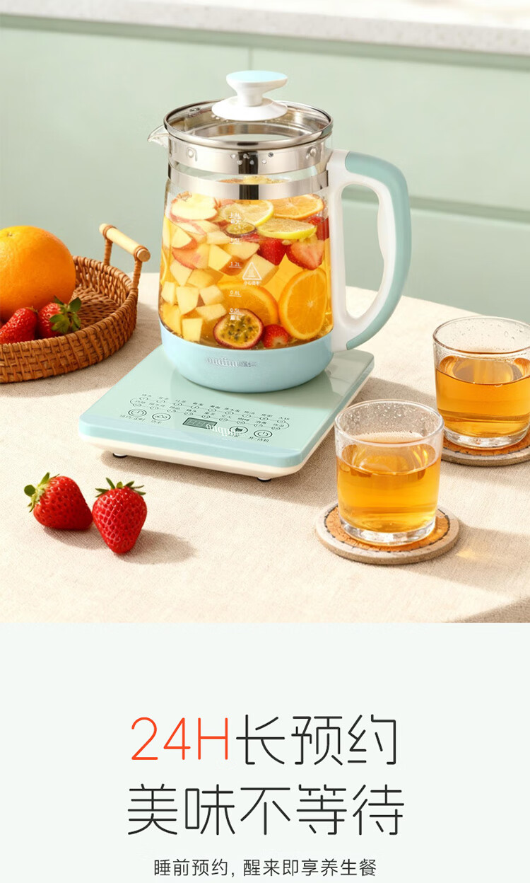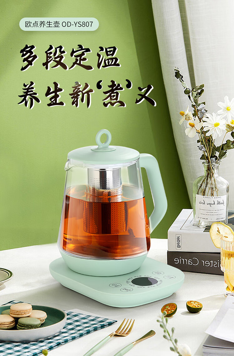 欧点 多功能养生壶玻璃煮茶器保温容量1.8升养身壶定时预约烧水壶304不锈钢煮茶壶煮茶器泡茶壶 【时控款】 1.8L