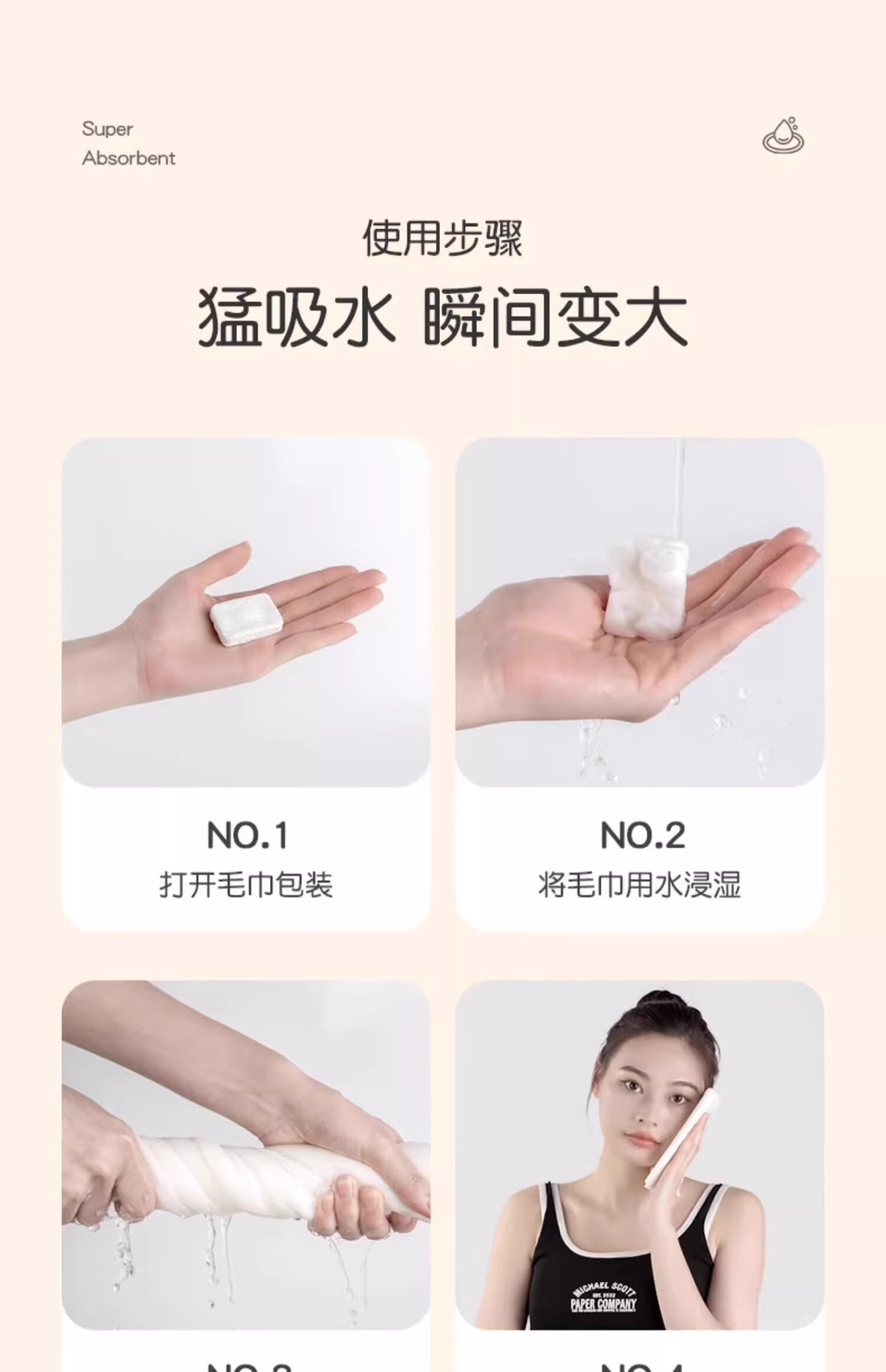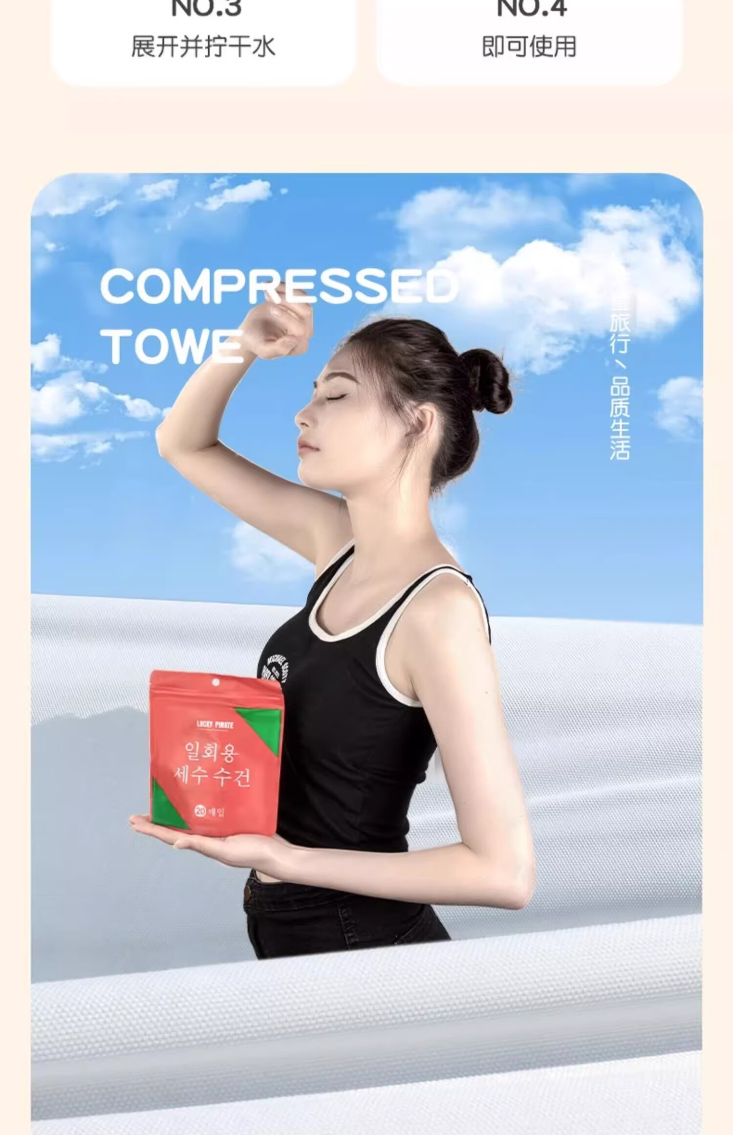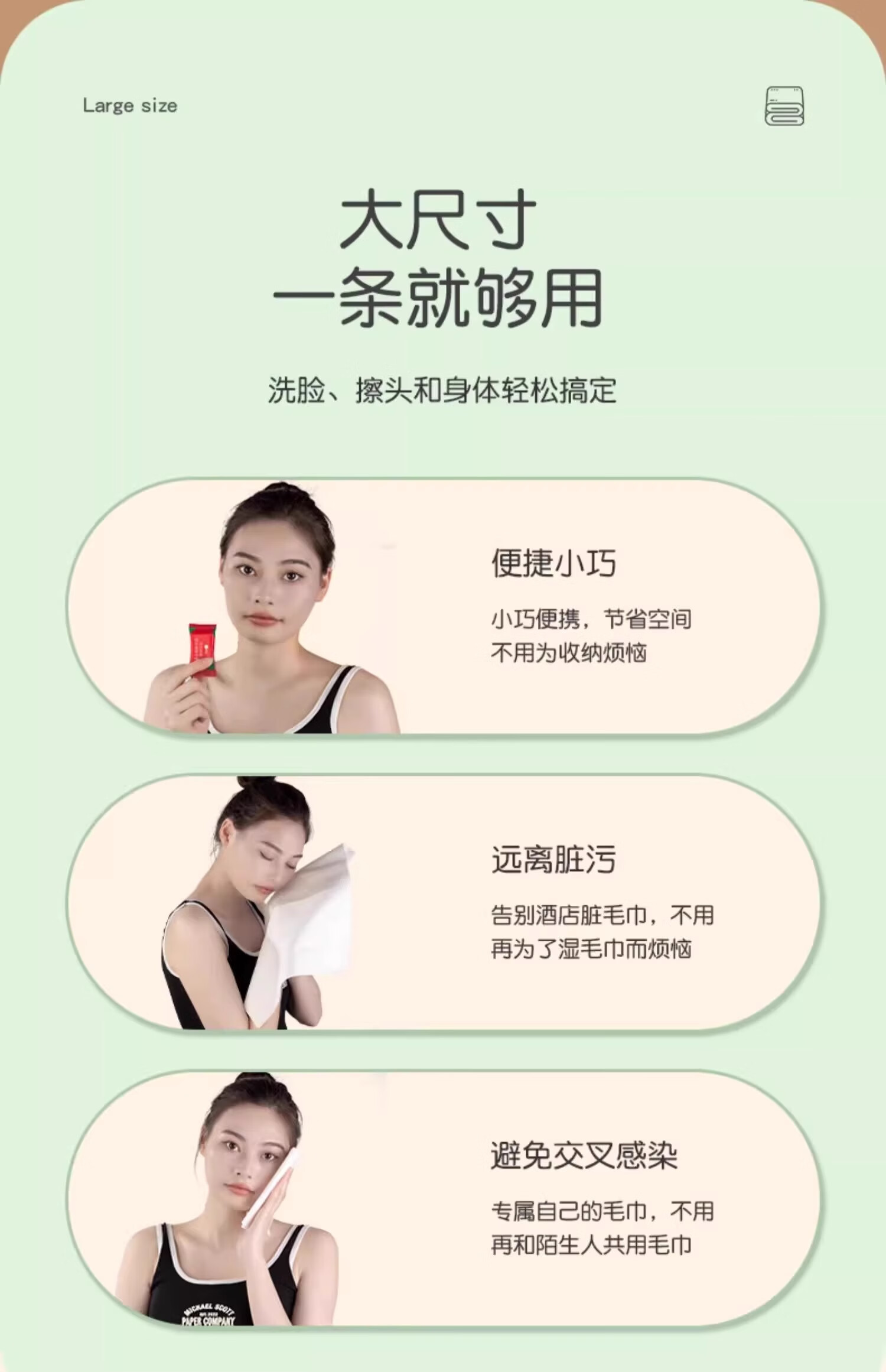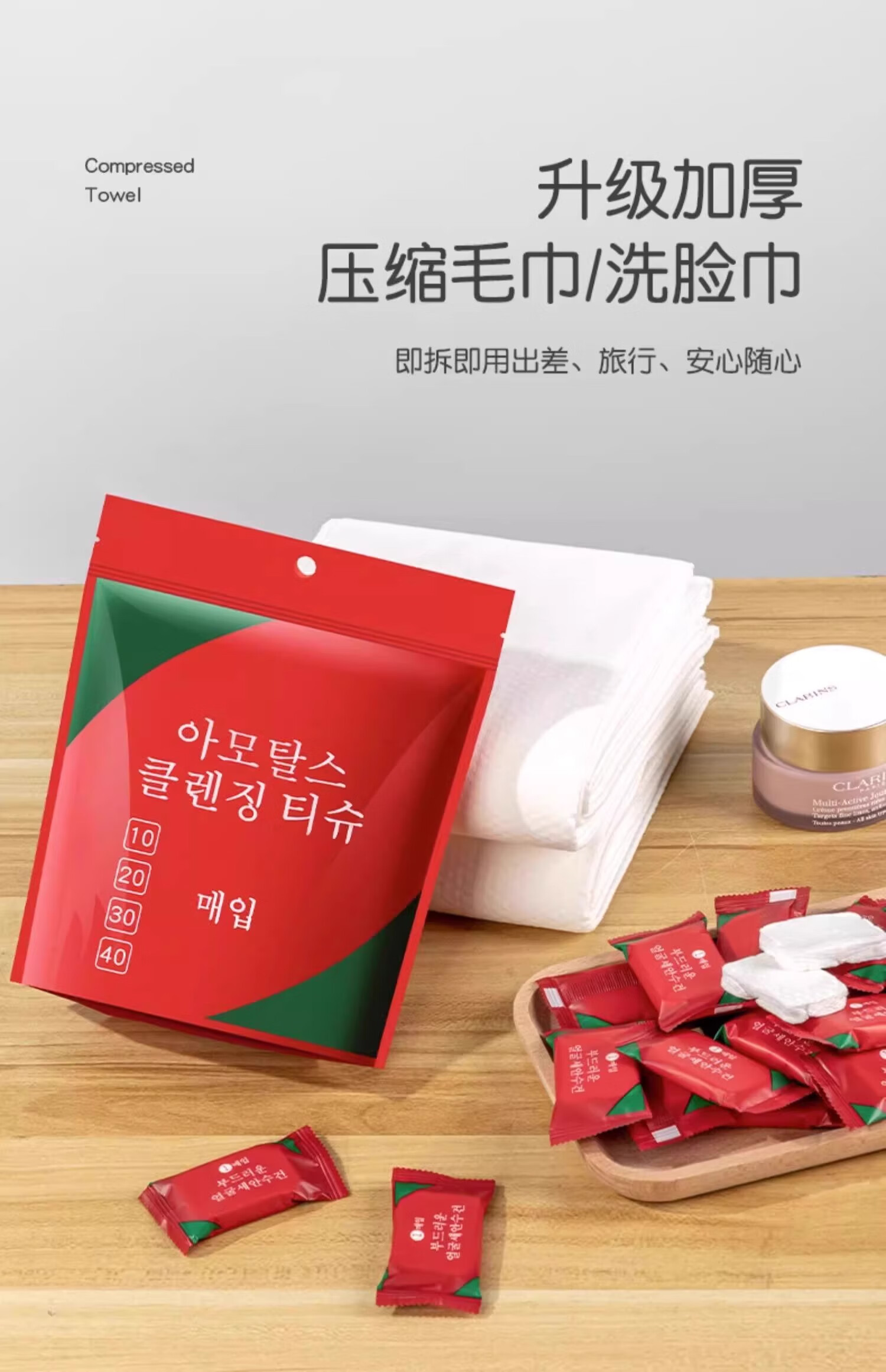 【甄选厂家】压缩毛巾浴巾加厚加大旅行装一次性洗脸巾加大号便携 巾红色款(20*20)-5包100粒