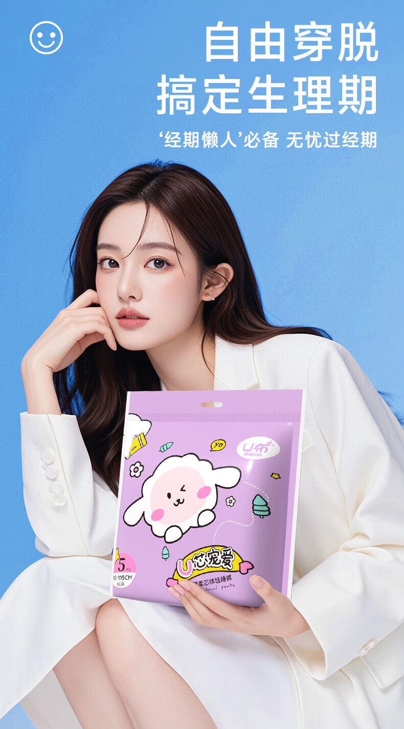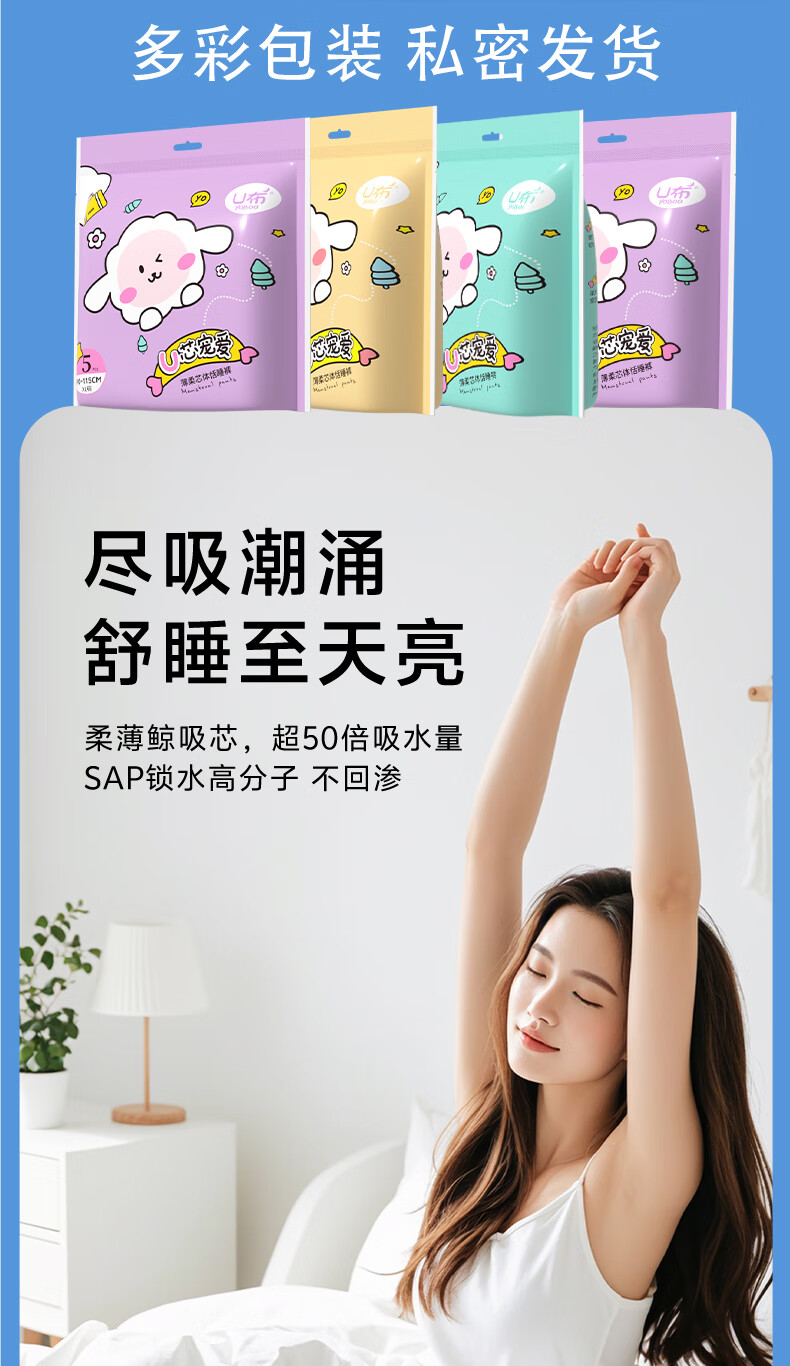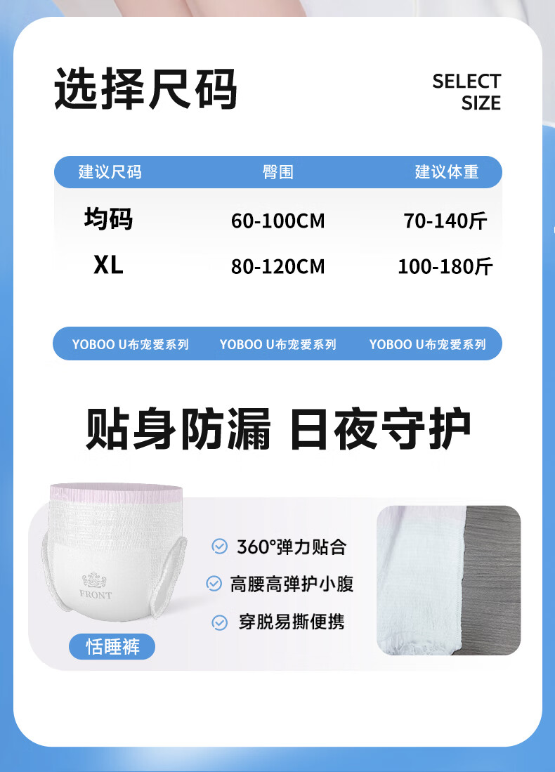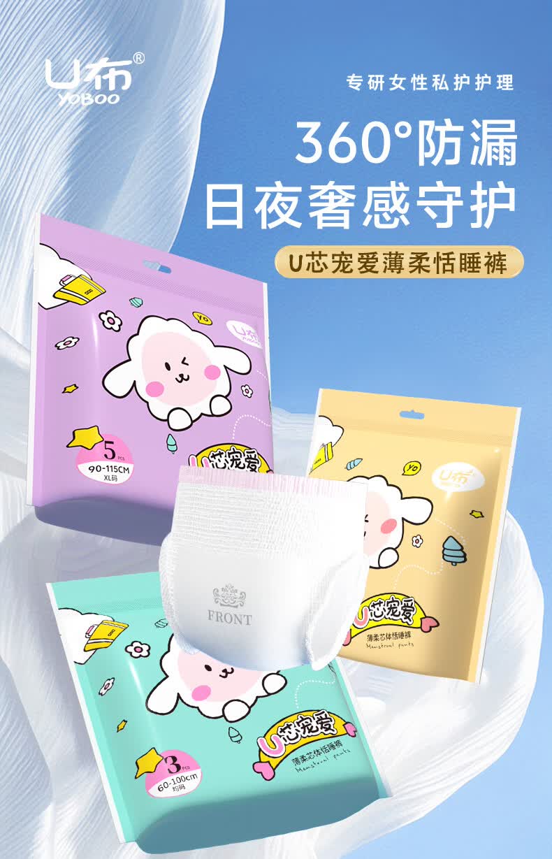 U布甜睡裤加大码180斤可穿安心裤夜用裤型卫生巾均码少女学生款防漏 XL 15条 100-180斤 安睡裤