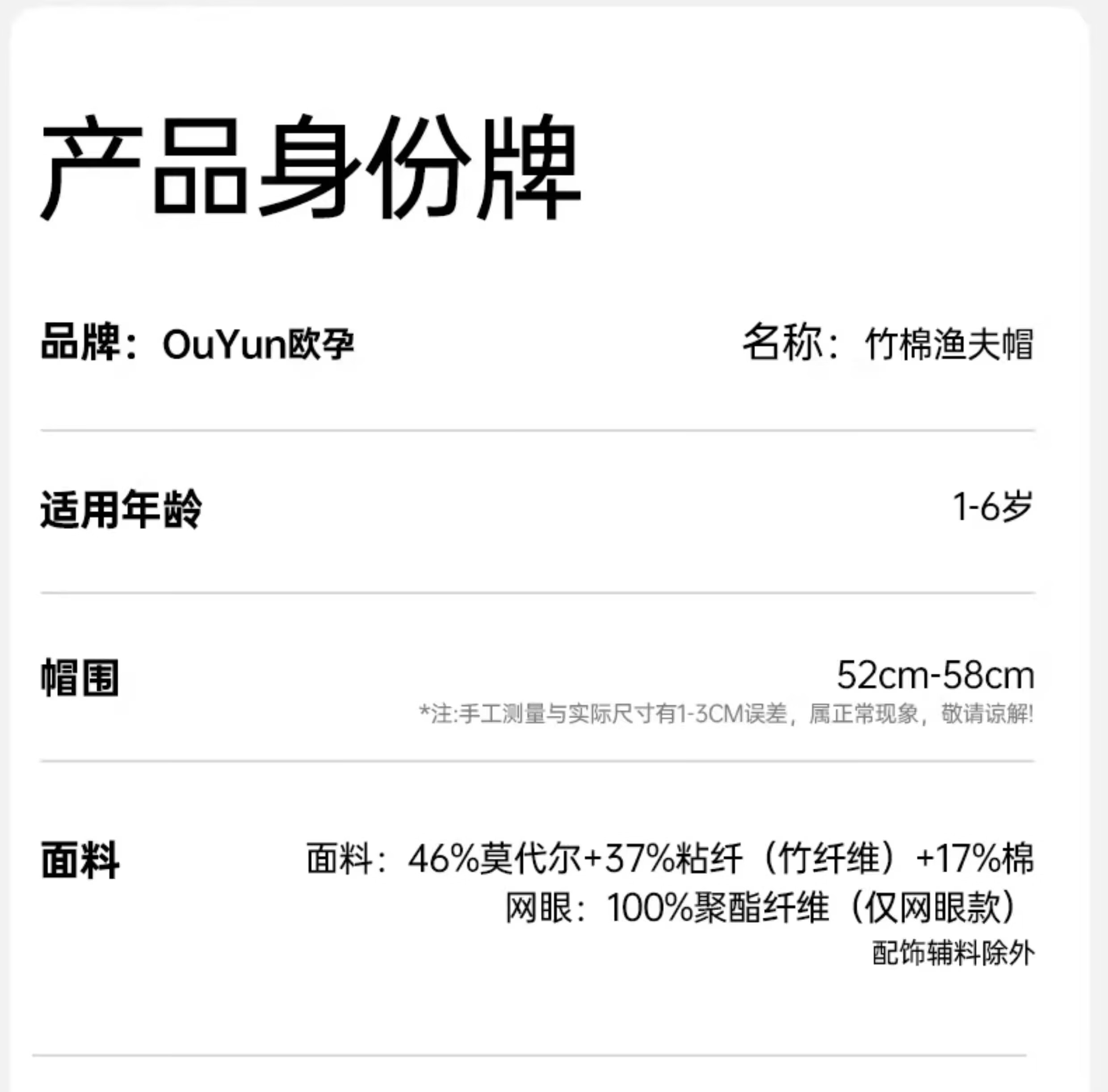 欧孕(OUYUN)儿童防晒帽婴儿帽子夏季薄款宝宝大檐渔夫帽户外遮阳防太阳帽 飞马花园 【吸湿排汗 透气网眼】 1-6岁 均码(52CM-58CM)