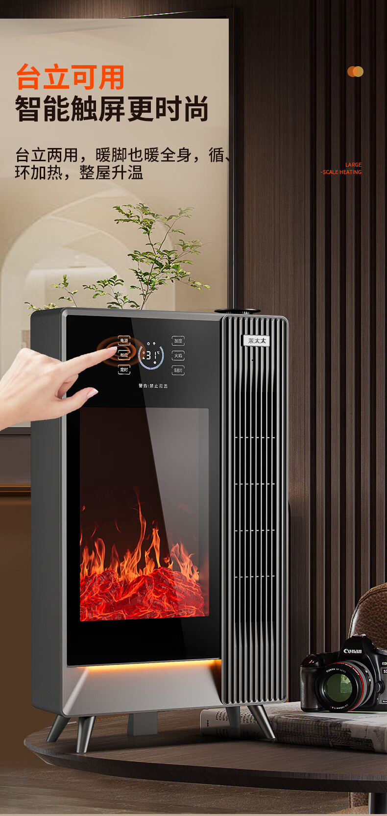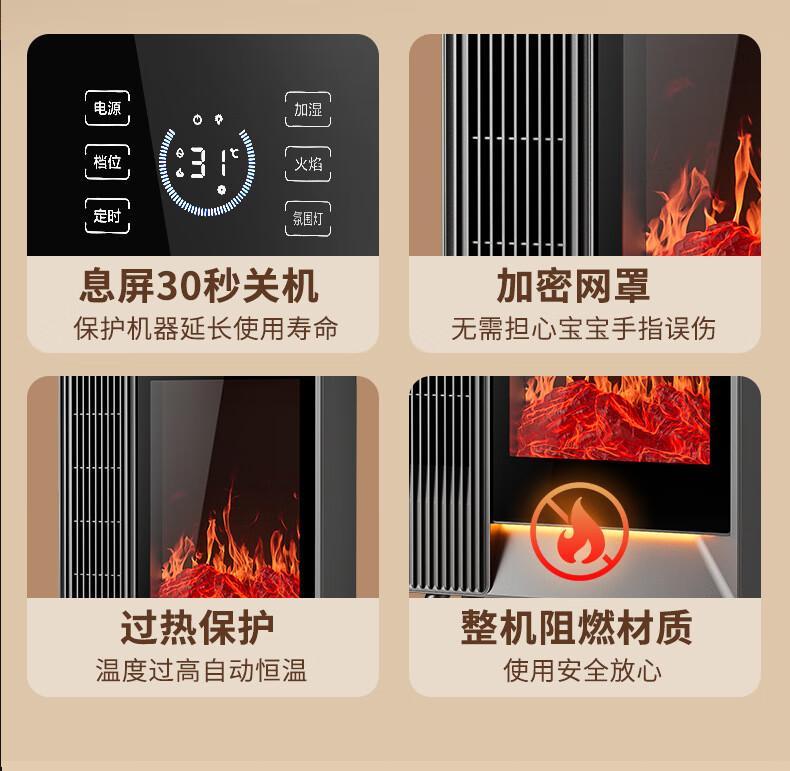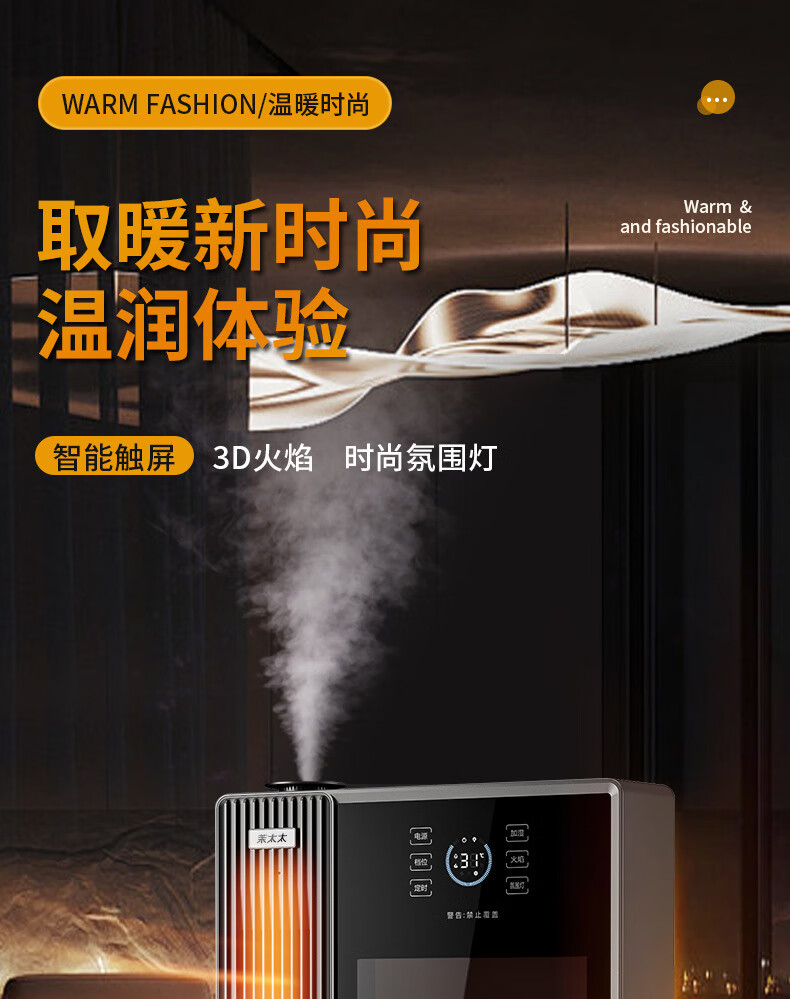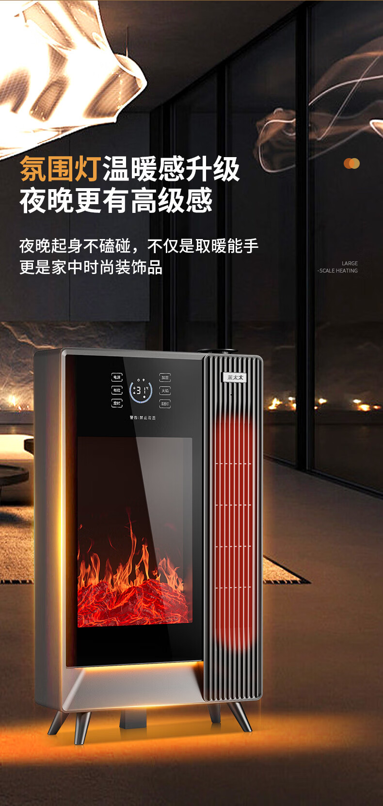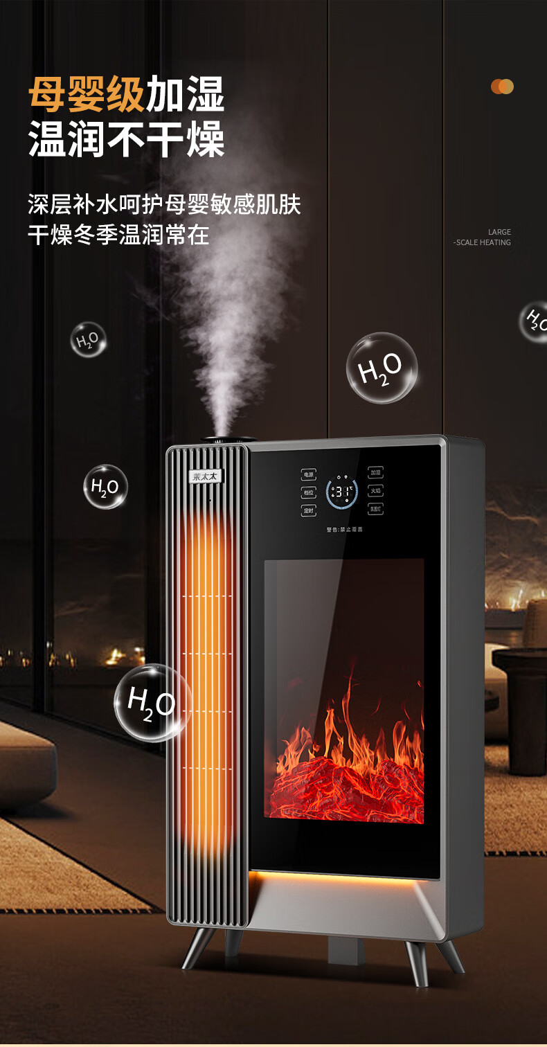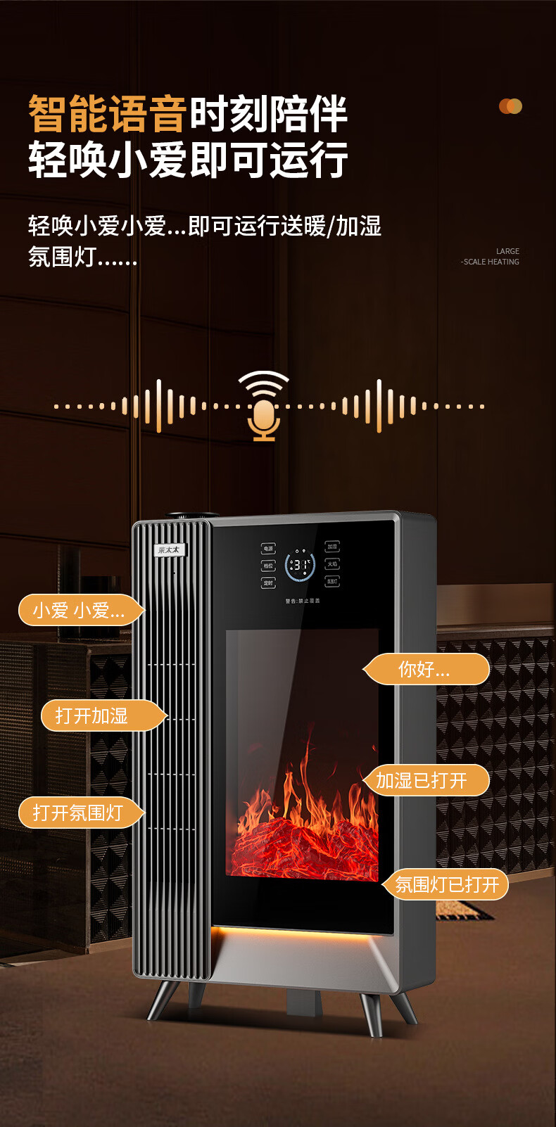 新款3D语音取暖器火焰雾化壁炉智能家用节能省电语音加湿暖风机 取暖器
