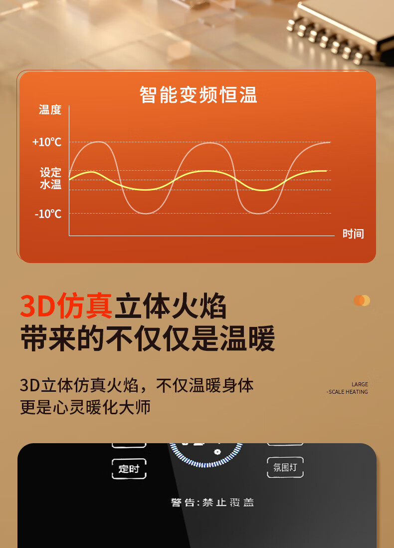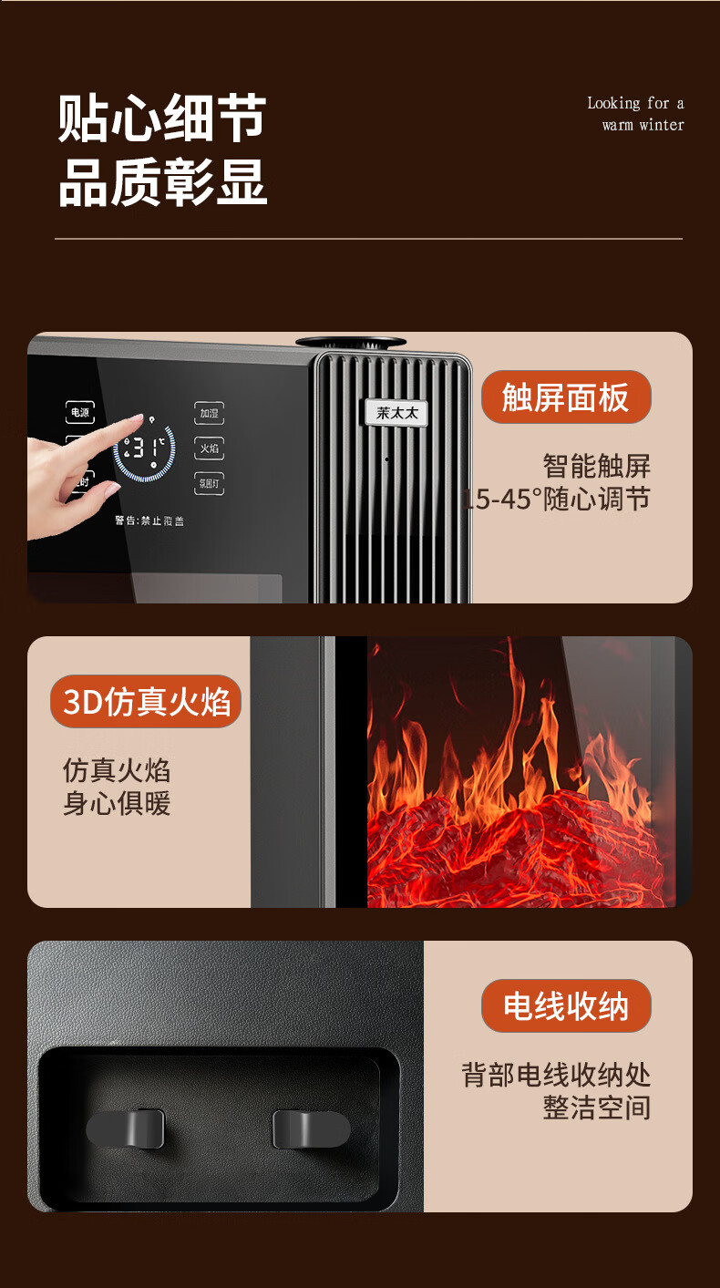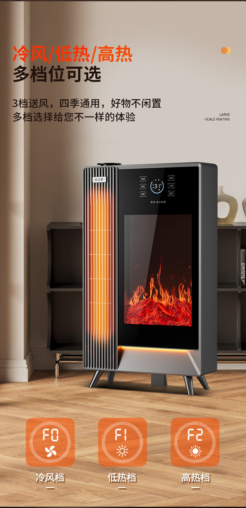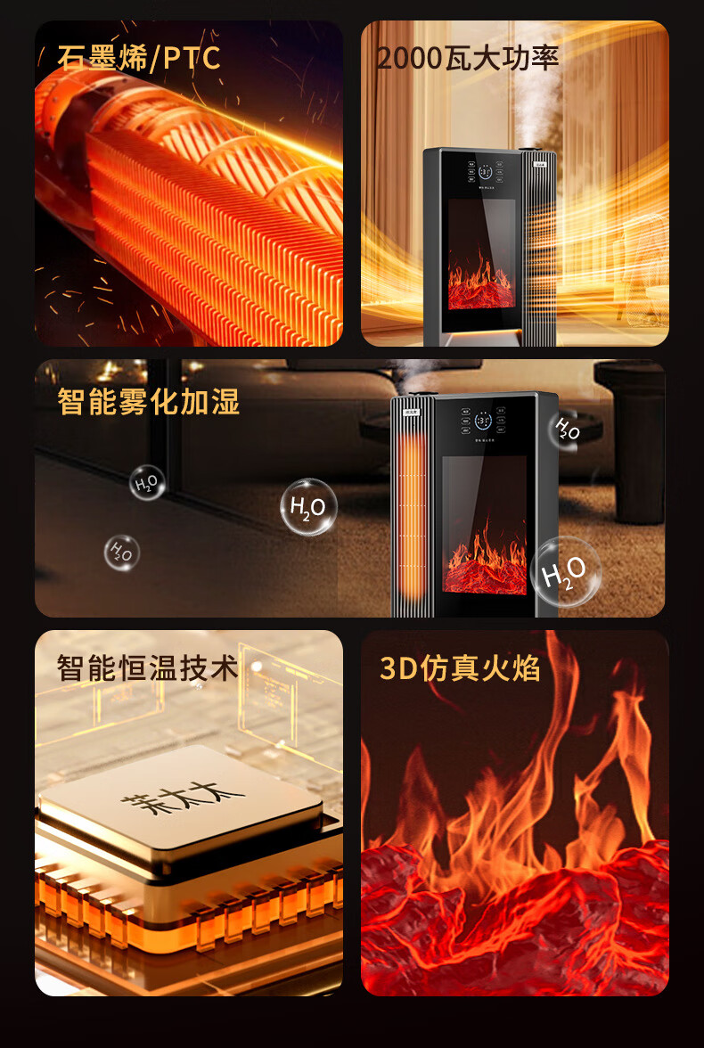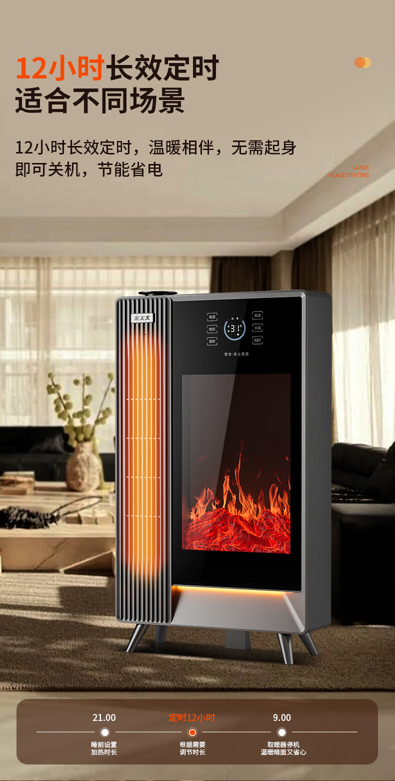 新款3D语音取暖器火焰雾化壁炉智能家用节能省电语音加湿暖风机 取暖器