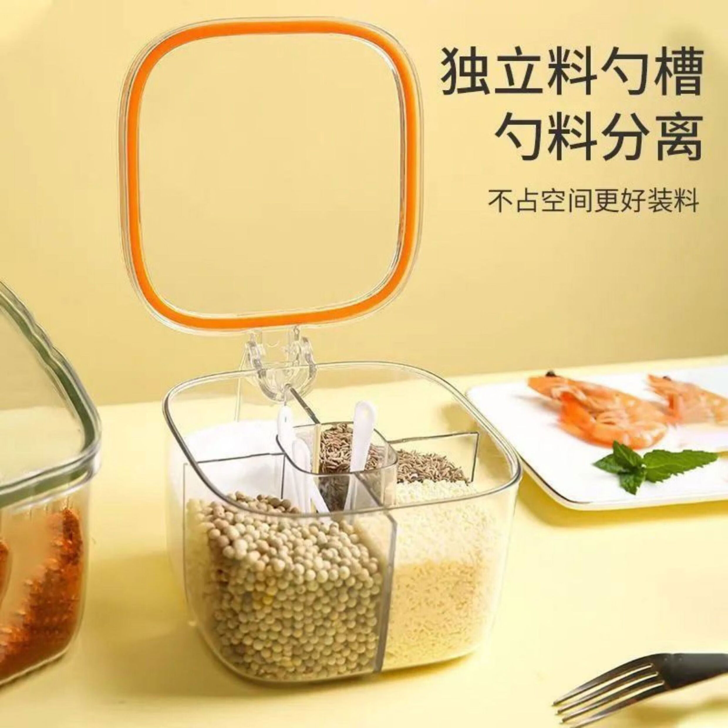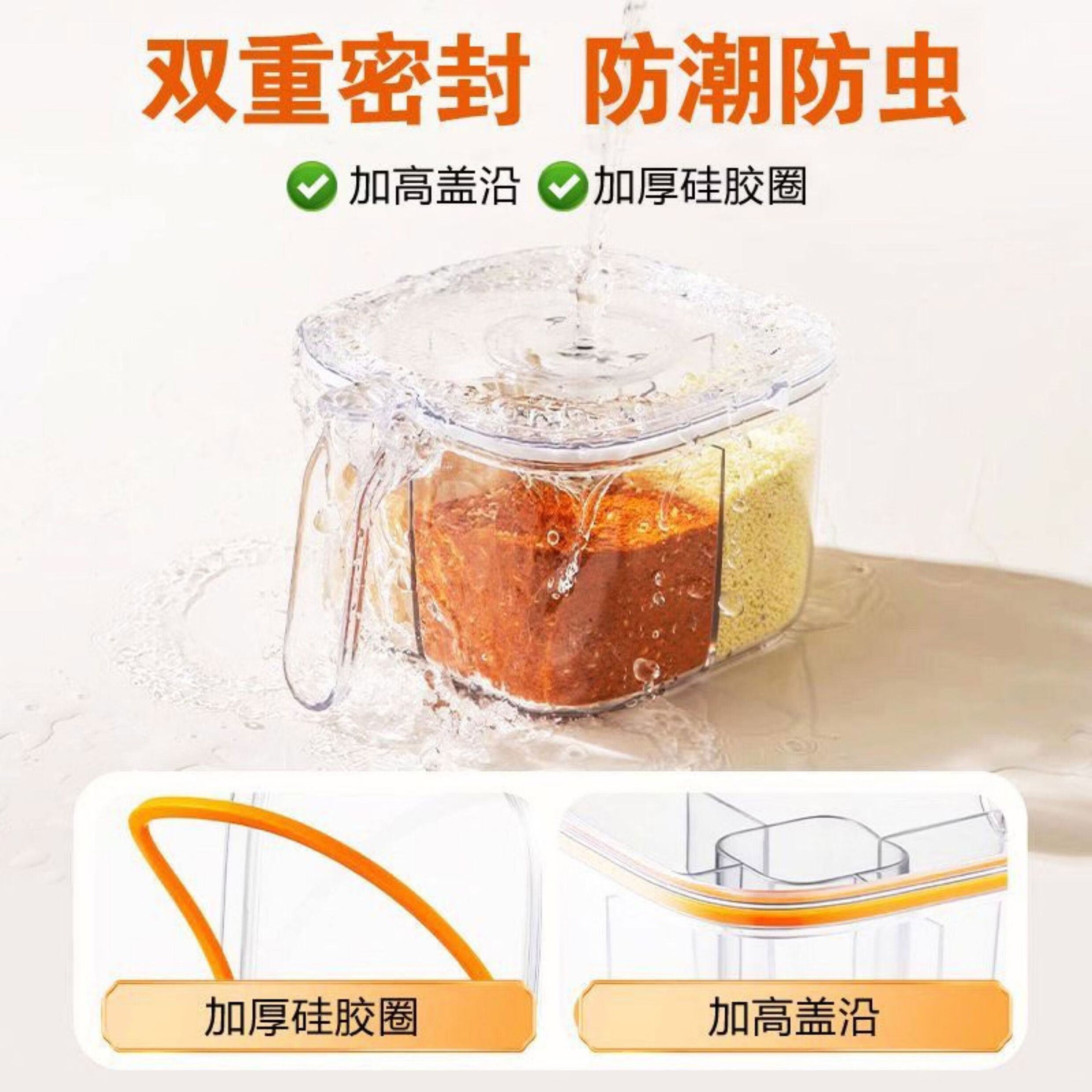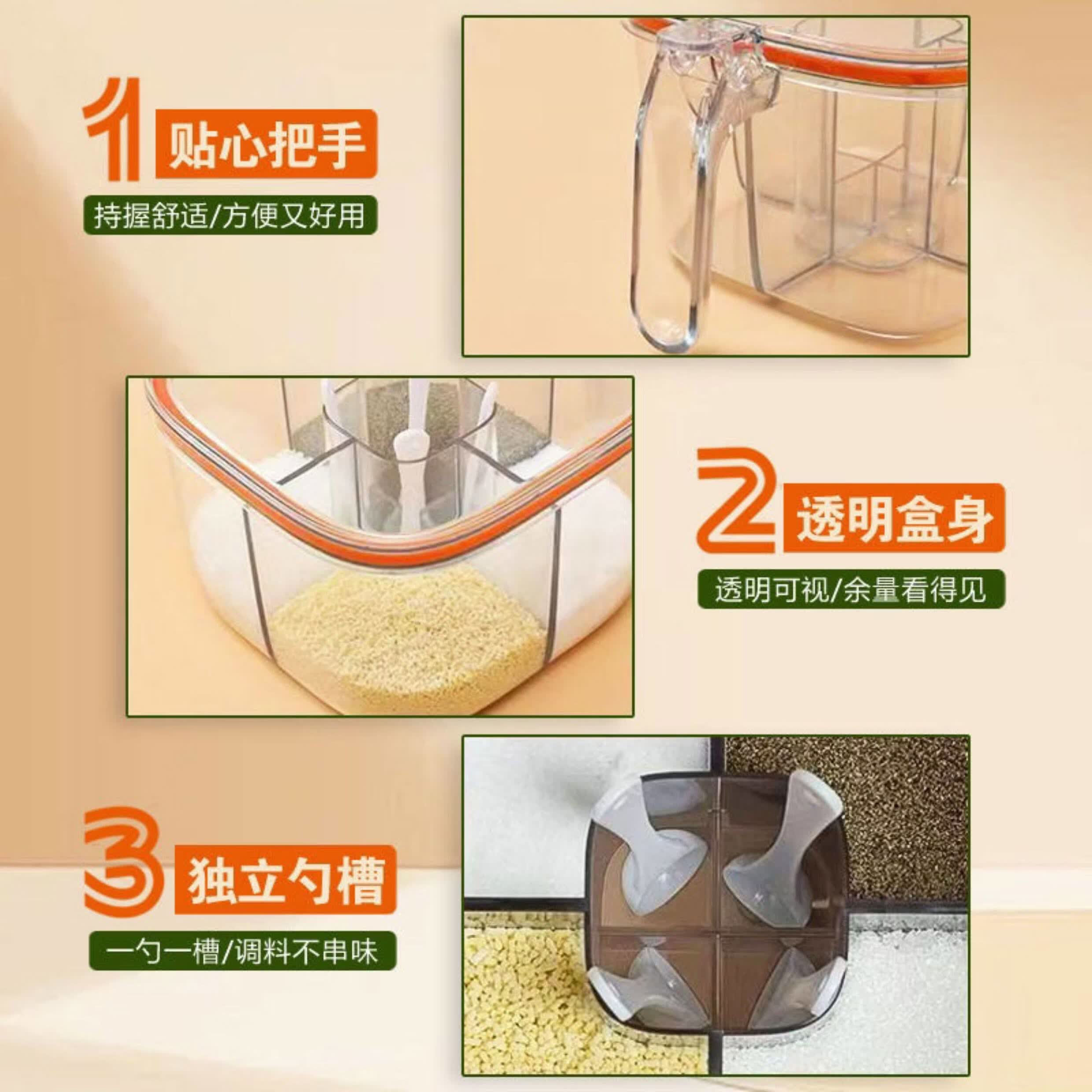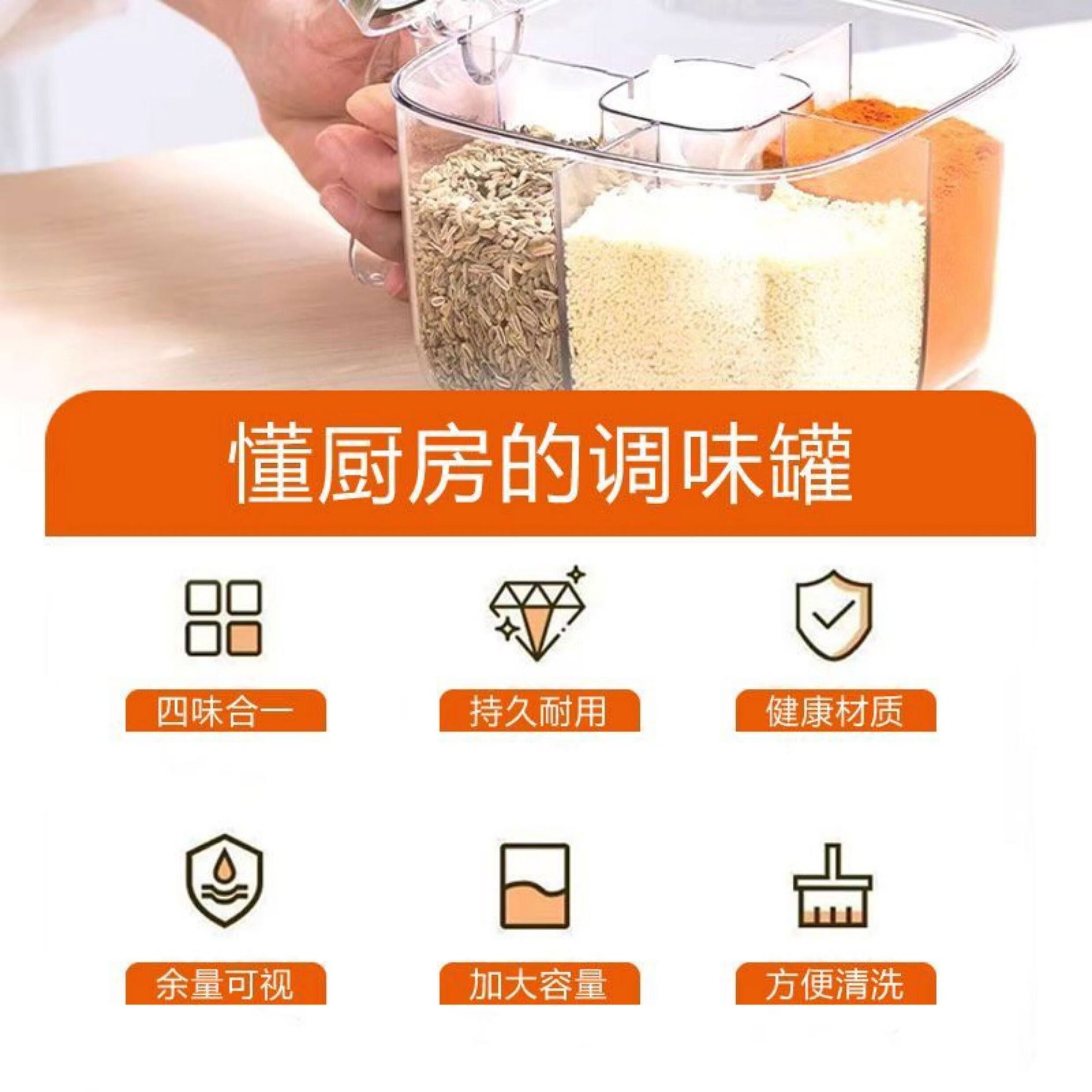 溥畔调味盒厨房调料罐组合套装一体多格盐味精胡椒收纳佐料调味瓶 四格调味罐:绿色+橘色加加厚