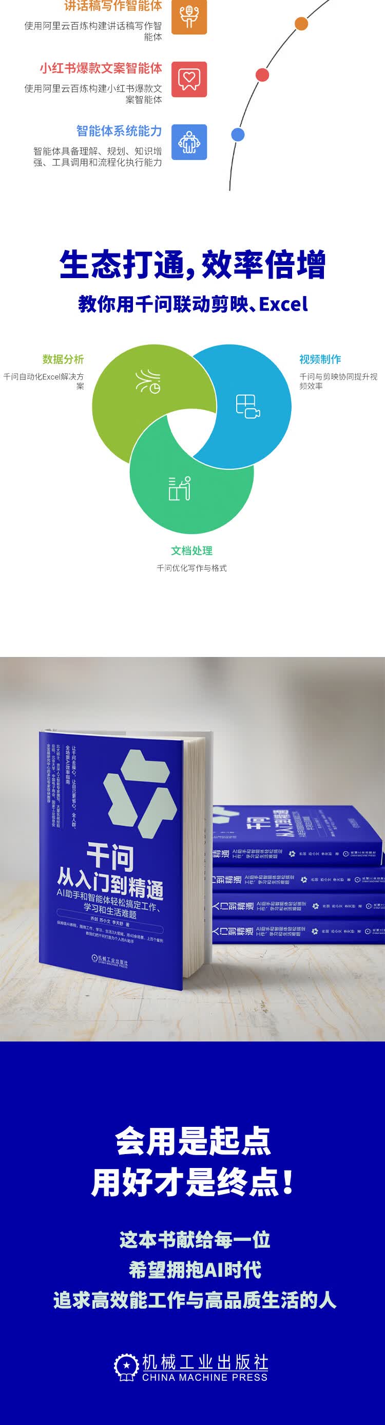 【正版包邮】千问从入门到精通 附赠知识挂图+提示词模板+千问AI课程+PPT降解等多重福利 AI助手和智能体轻松搞定工作、学习和生活难题 北京大学计算机硕士 乔剑 著 国家数据局/工信部专家实战经验