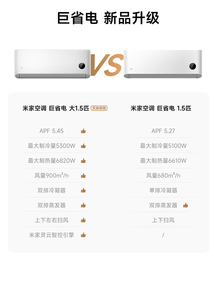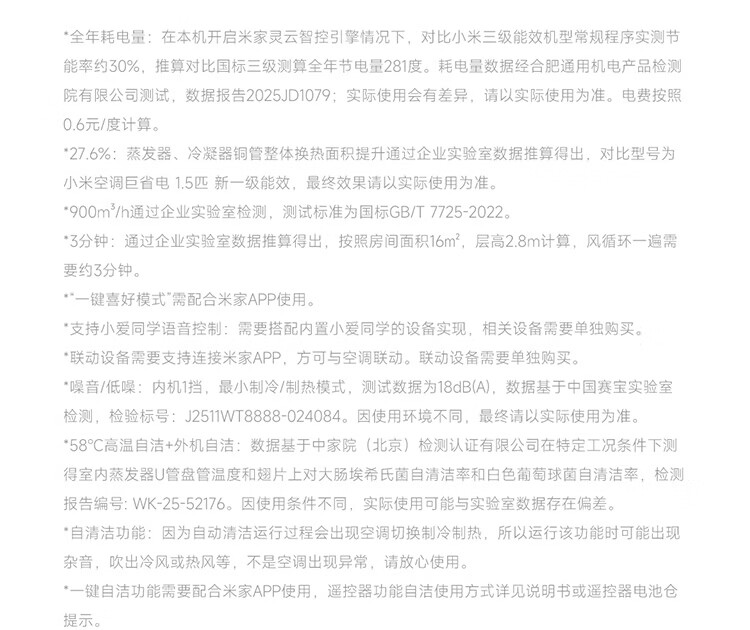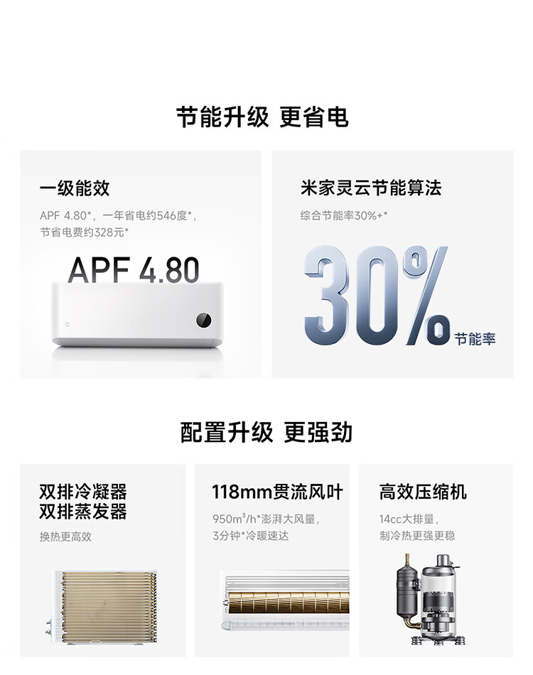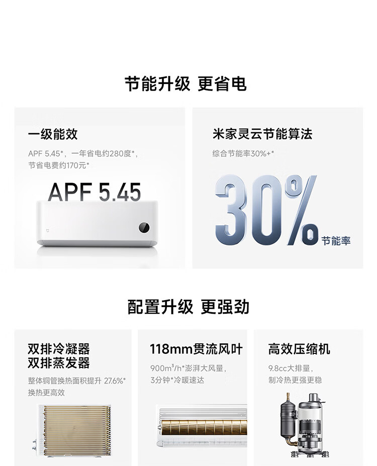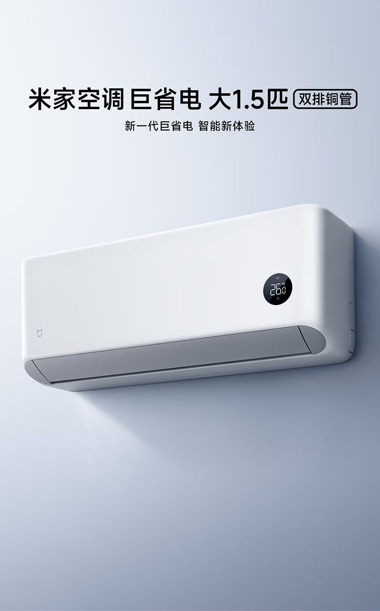 小米空调 巨省电 新一级能效变频冷暖壁挂式卧室智能空调挂机30S速冷60S速热 智慧清洁 国家补贴 巨省电 2026款 大1.5匹 双排冷凝器 APF5.45