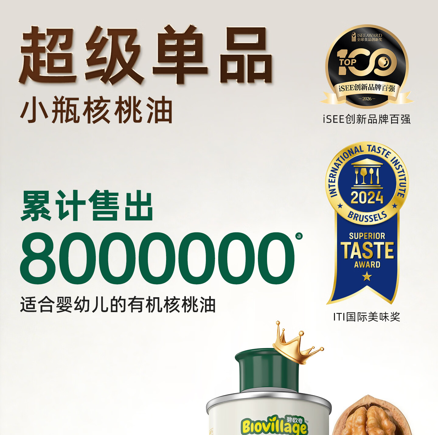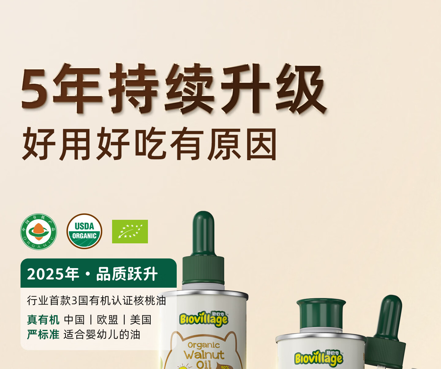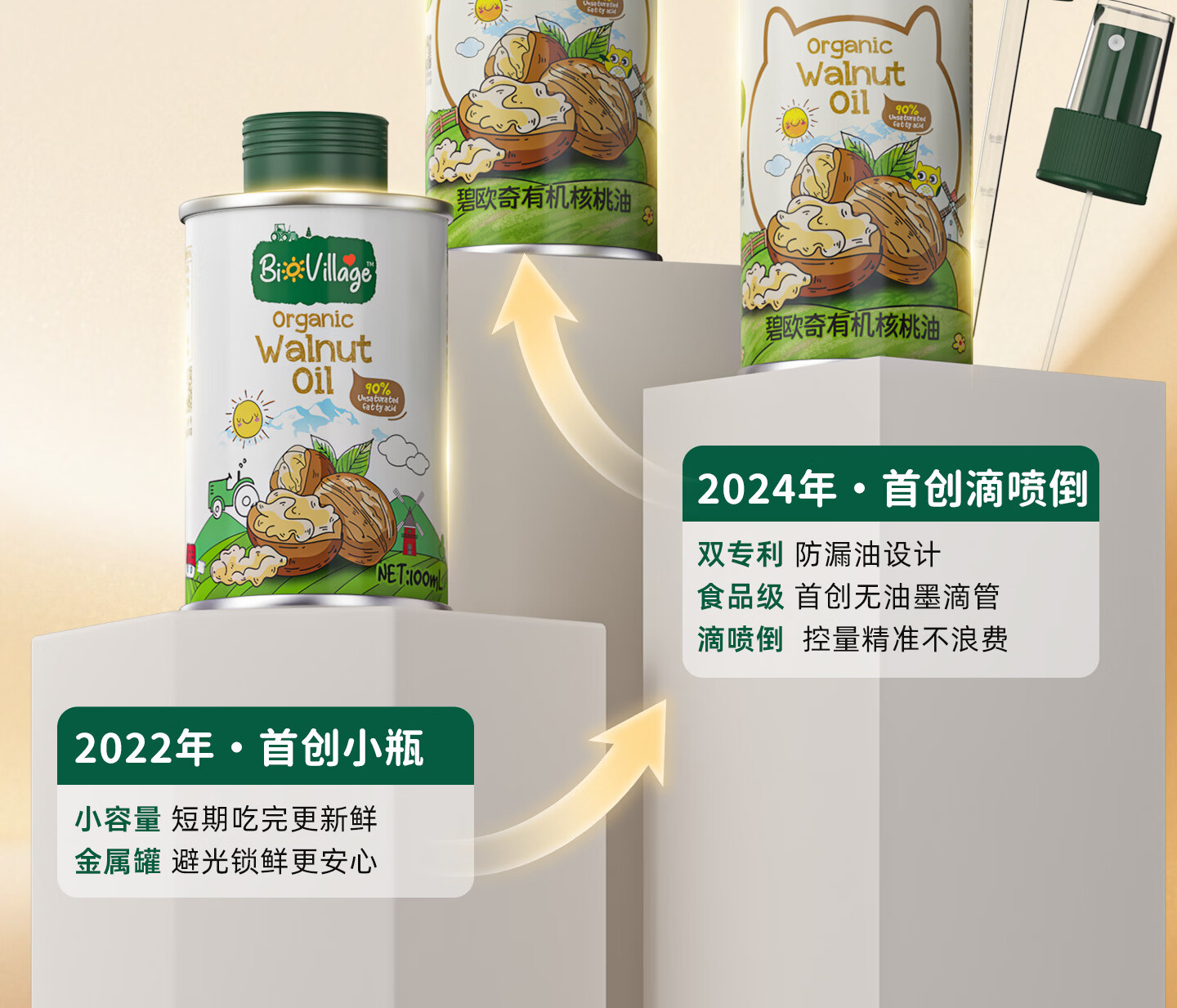 碧欧奇三国有机核桃油100ml 宝宝辅食用油凉拌热炒 6个月以上适合婴幼儿