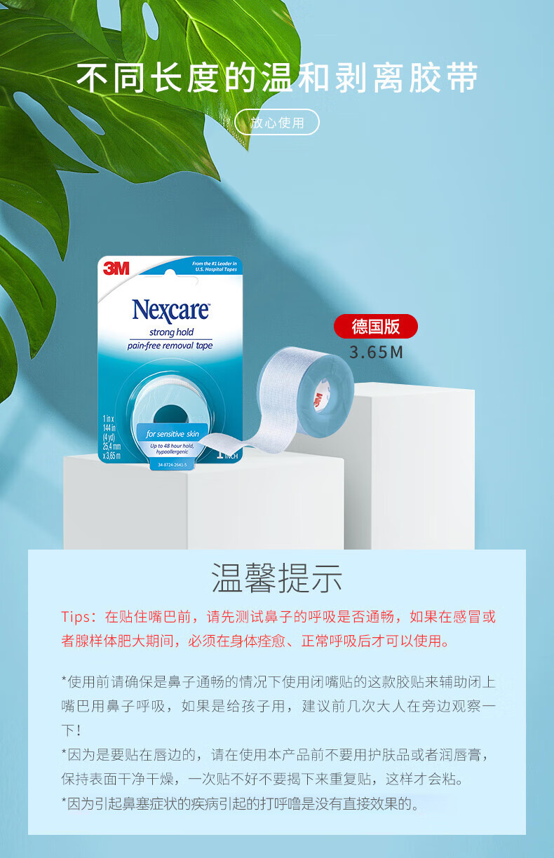 3M 闭嘴贴止鼾口呼吸贴婴儿封嘴贴儿童防张嘴睡觉医用硅胶压敏胶带