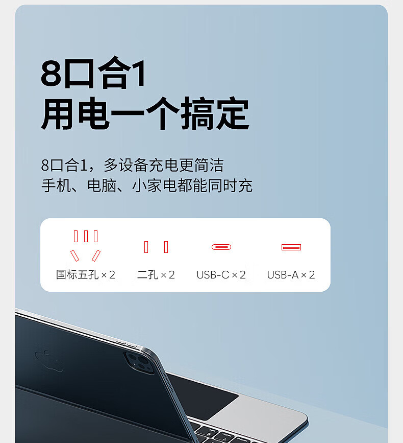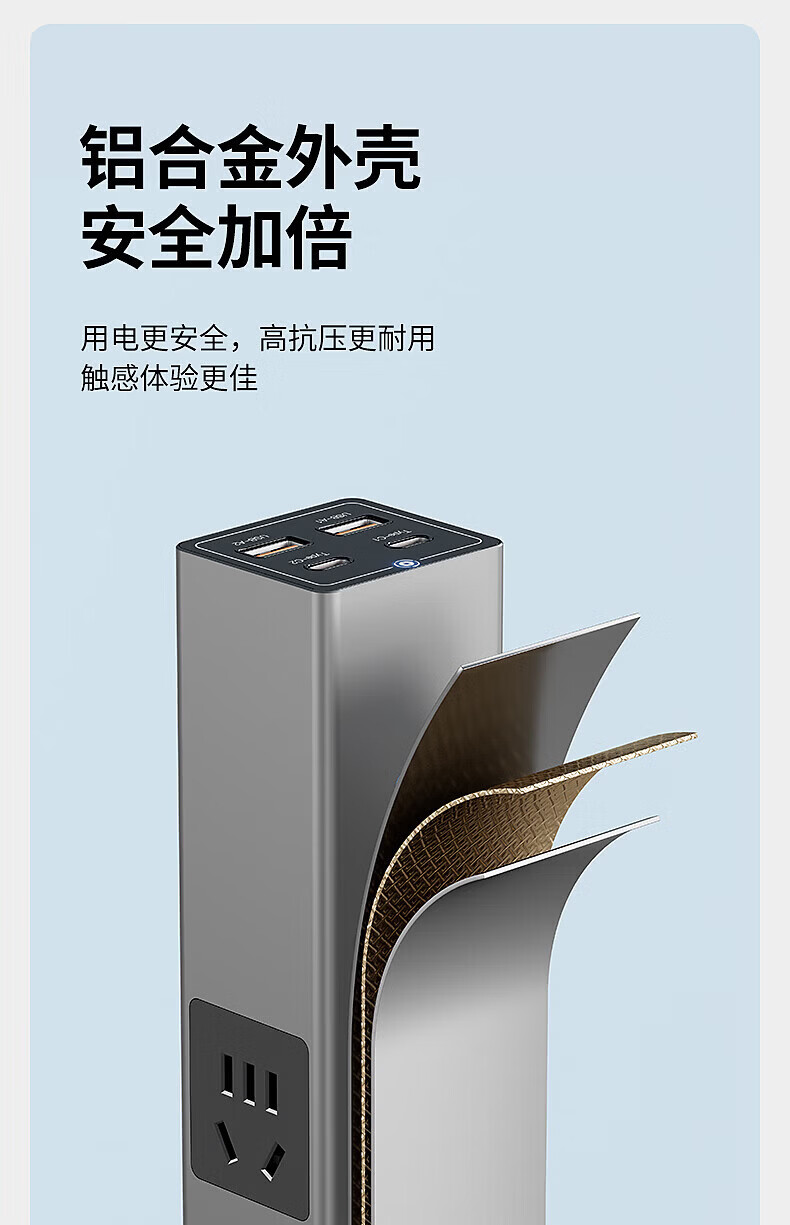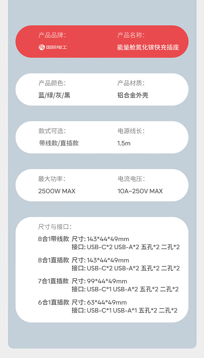 国际电工氮化镓快充插座转换器20W30W35W桌面插线板usb小电舱排插接线板 (灰色)直插款14孔插座