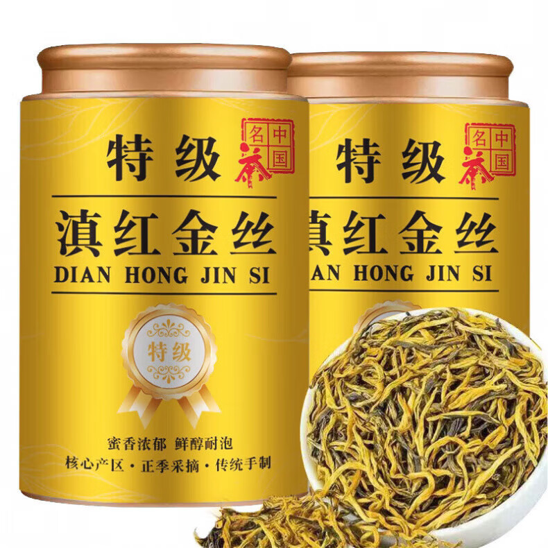正宗特级滇红金丝2025云南高山古树滇红茶浓香蜜香型嫩芽嫩叶罐装 特级滇红金丝251.3克/1罐经济(新老包装) 【正宗云南精选红茶 古树金芽】