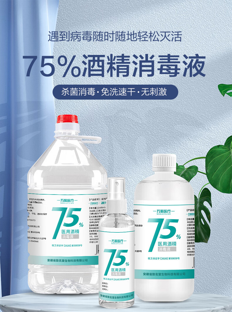 万聚医疗75%酒精喷雾医用酒精皮肤乙醇消毒液免洗手消毒免洗洗手液速干 75%酒精喷雾100ML*3瓶