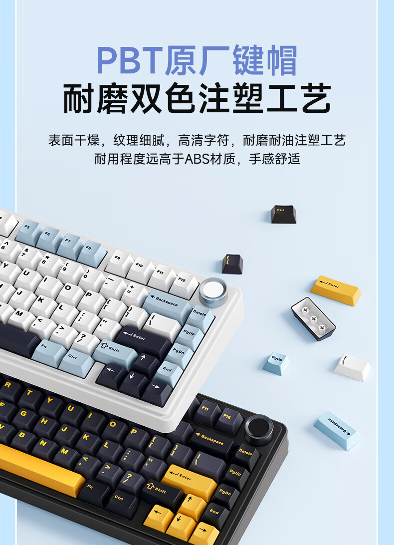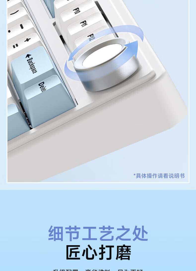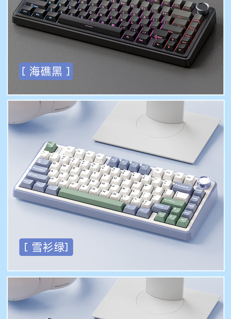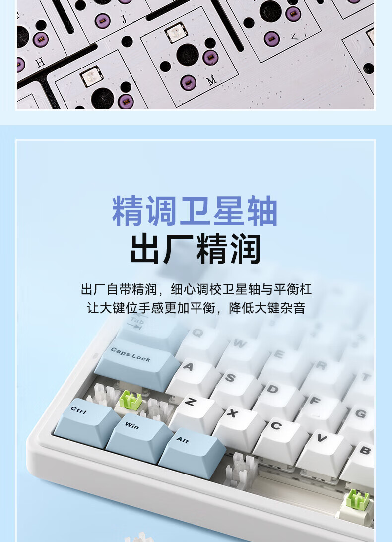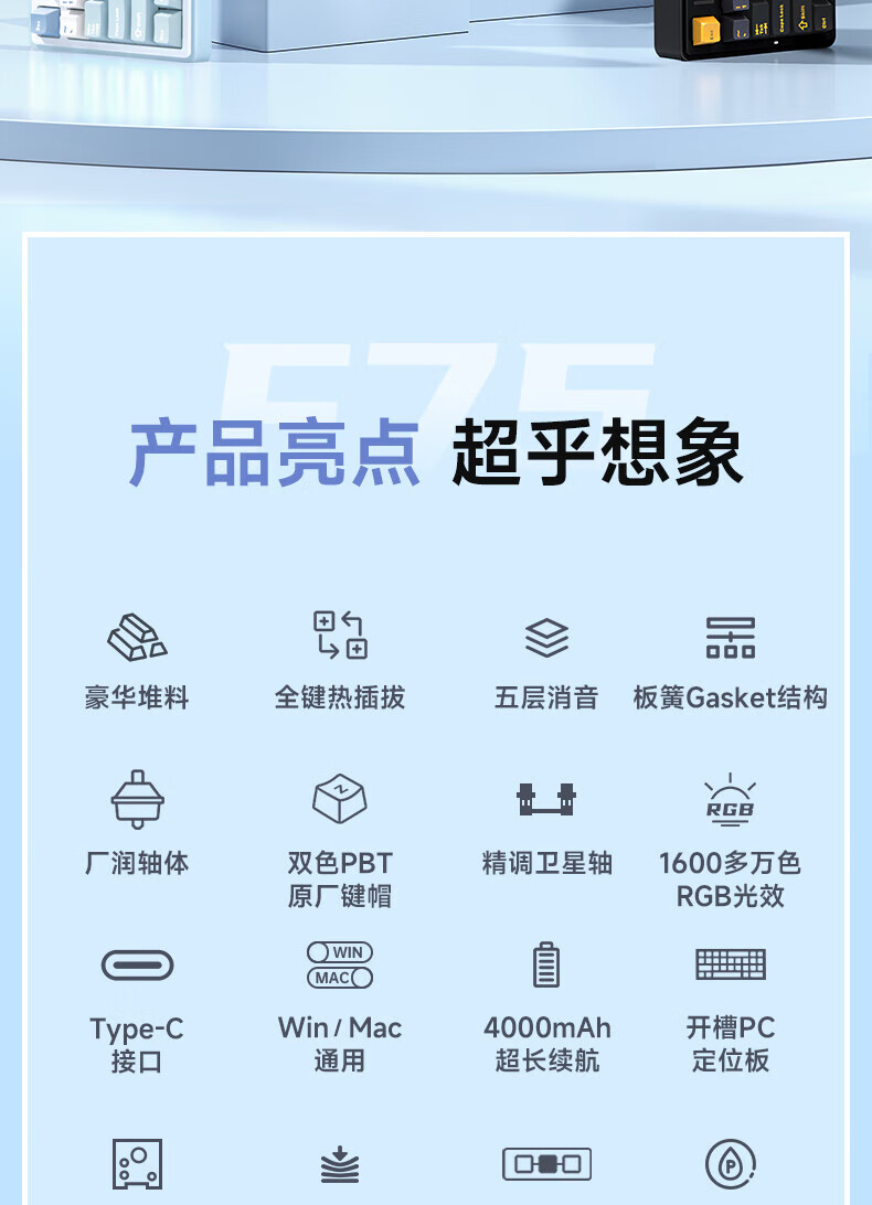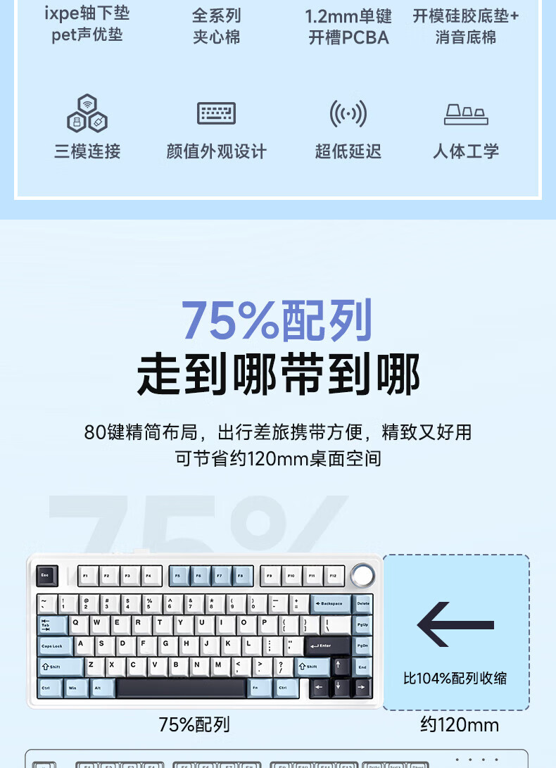狼蛛(AULA)F75无线客制化机械键盘 无线蓝牙三模有线gasket全键热插拔75配列电竞游戏办公 海盐蓝 新月轴