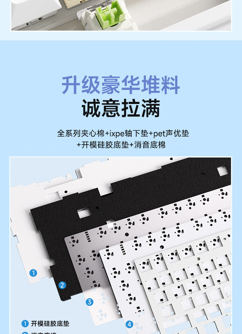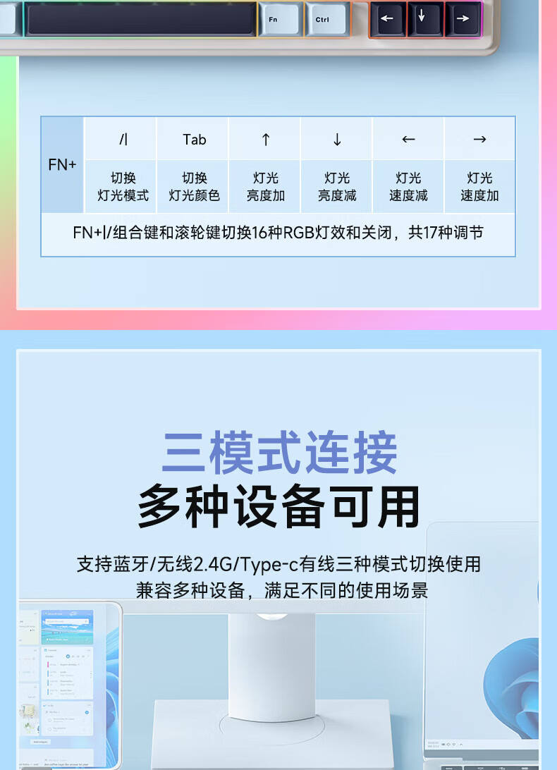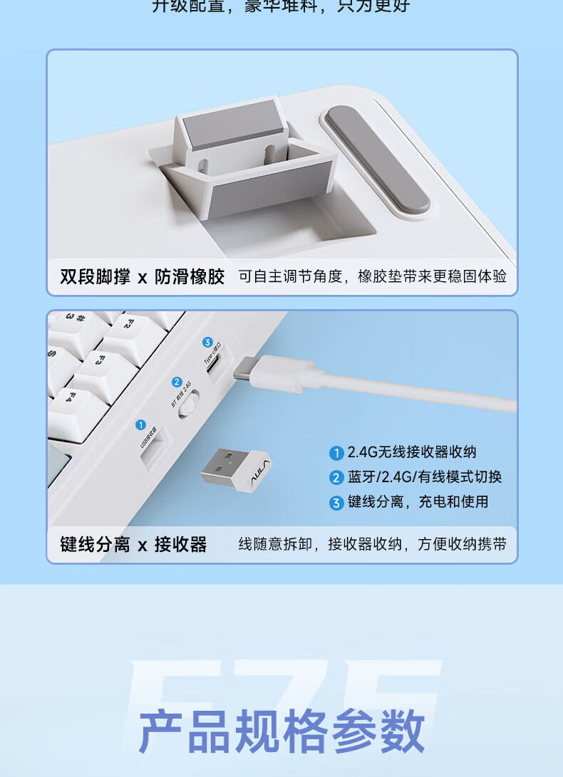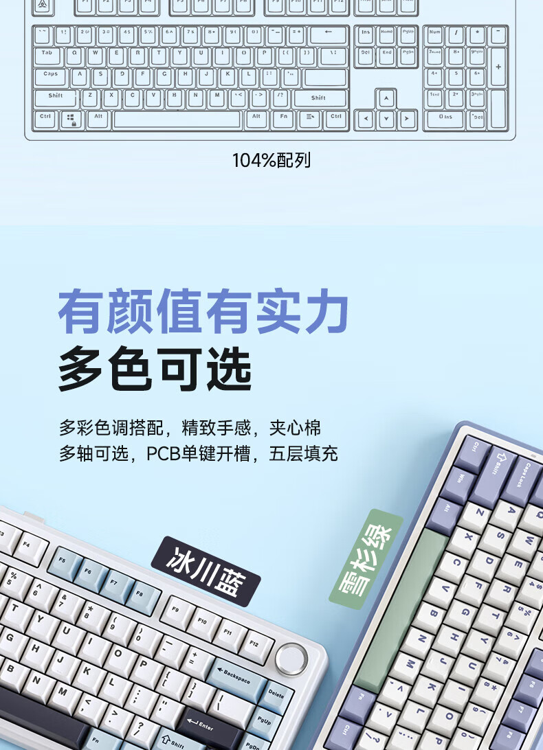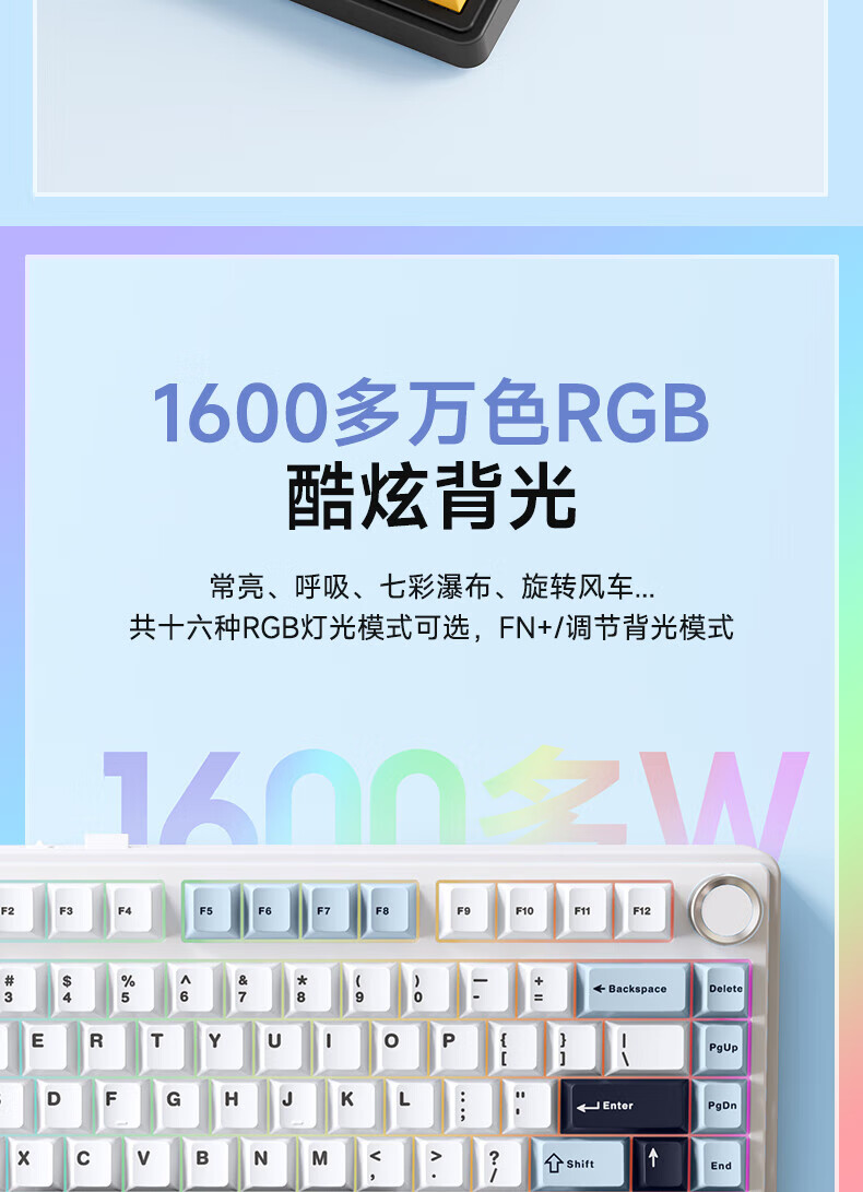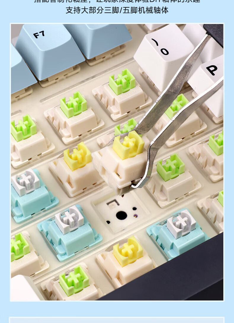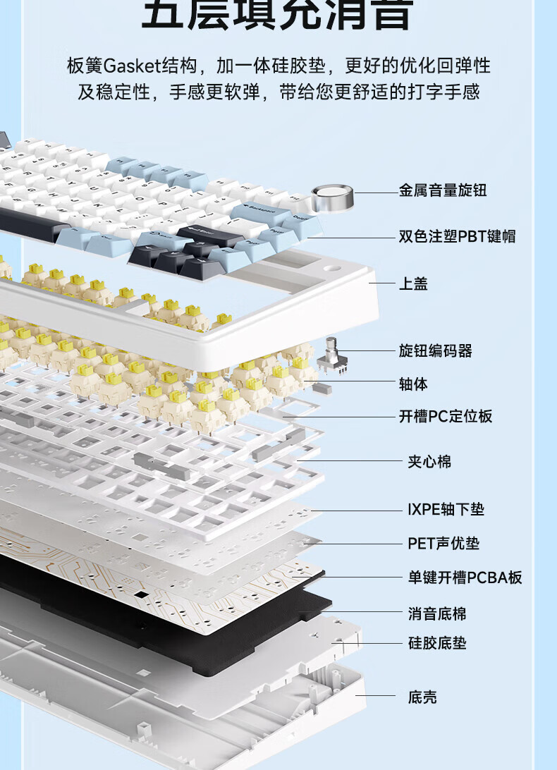 狼蛛(AULA)F75无线客制化机械键盘 无线蓝牙三模有线gasket全键热插拔75配列电竞游戏办公 海盐蓝 新月轴