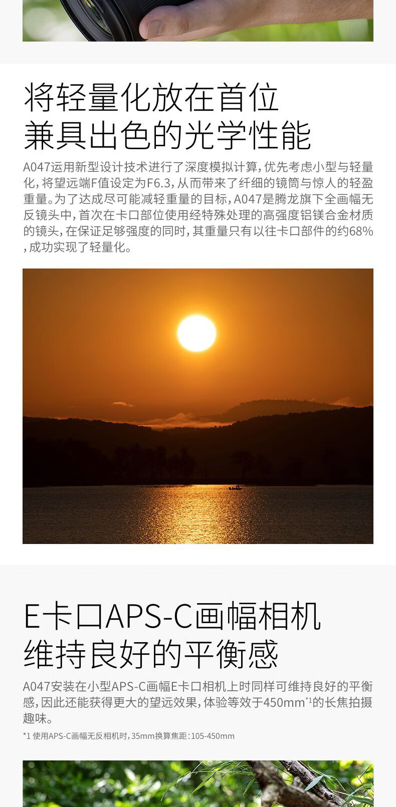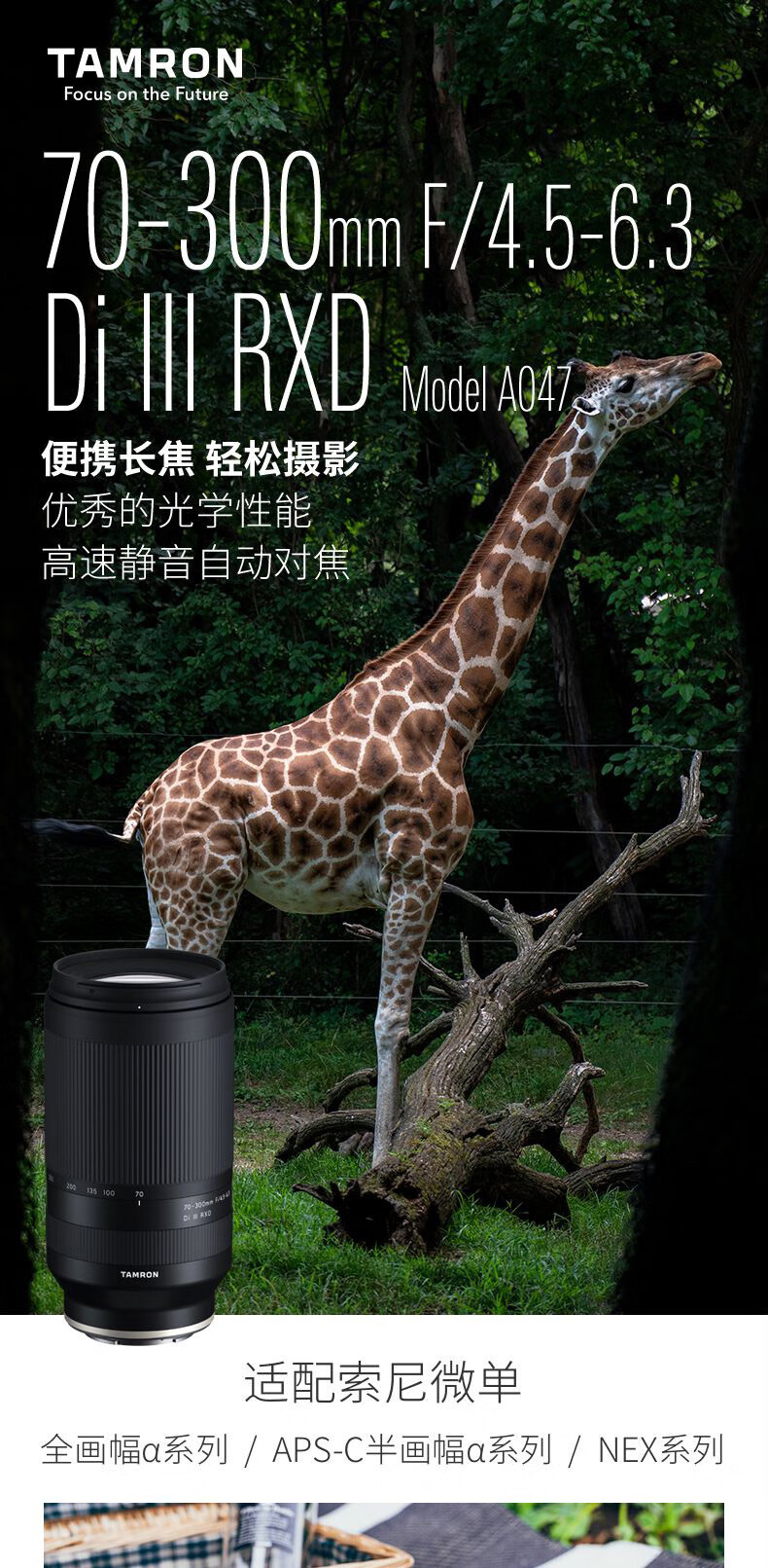 腾龙(Tamron)A047 70-300mm F/4.5-6.3远摄长焦变焦体育动物70-300全画幅E口微单镜头70300 尼康Z卡口 官方标配【送腾龙UV滤镜+摄影单肩包+清洁套装】