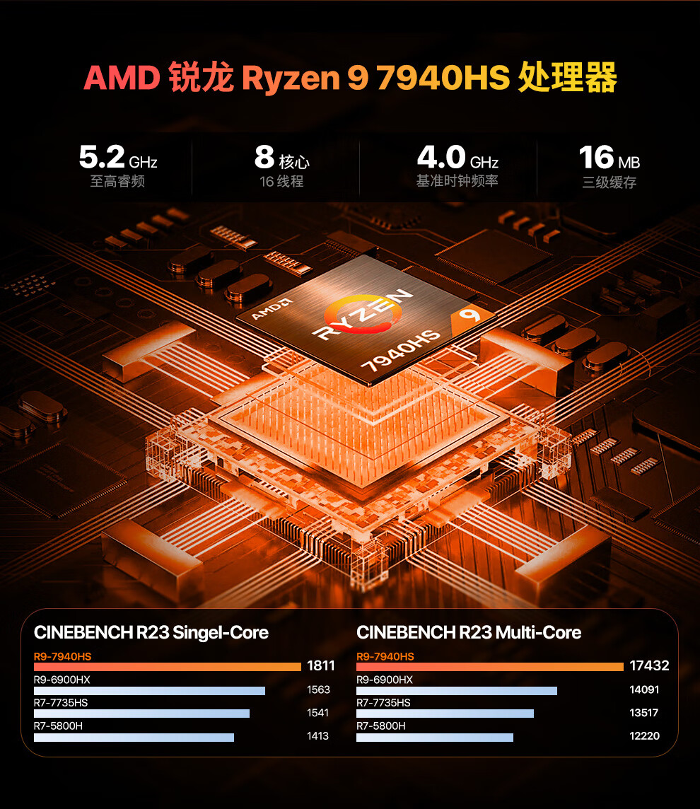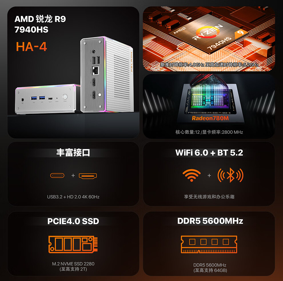 磐镭HA-4 mini主机 锐龙R9 7940HS迷你主机 RGB灯光 准系统 游戏办公设计高性能台式机电脑
