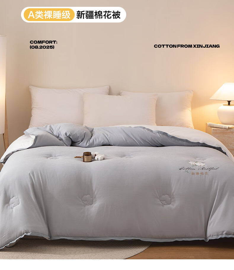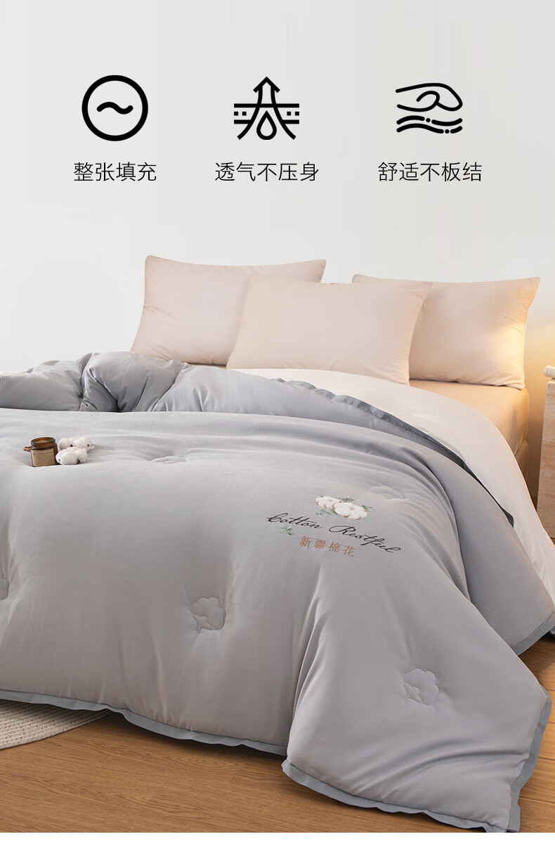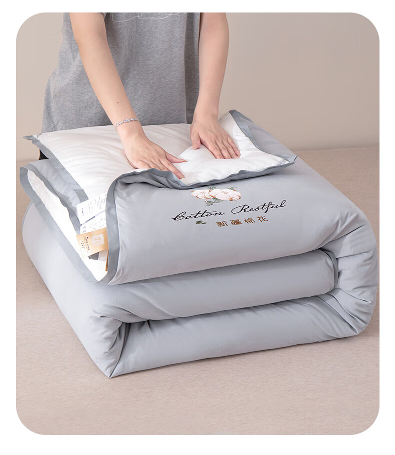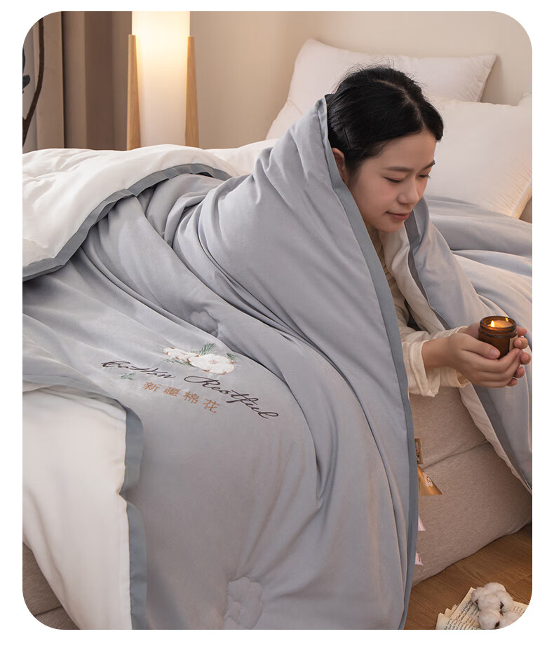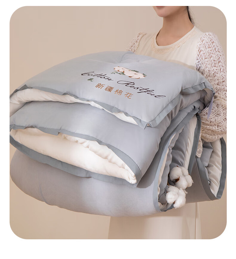 VJE新疆棉花被子冬被加厚棉被褥升级毛巾绣学生宿舍四季通用春秋被芯 绅士灰【A类母婴级抗菌面料 99%抑菌率】 150x200cm【整被约重6斤,适宜室温0-10℃】