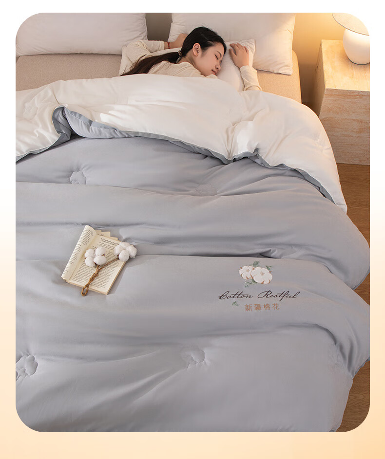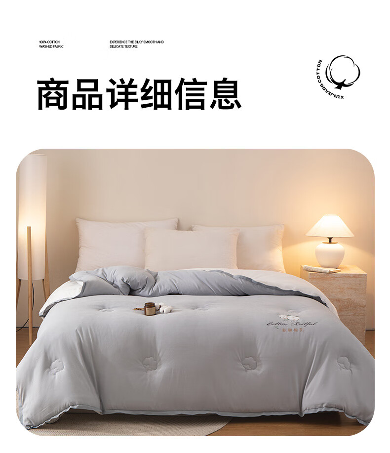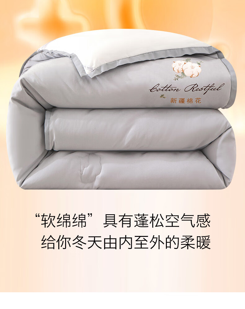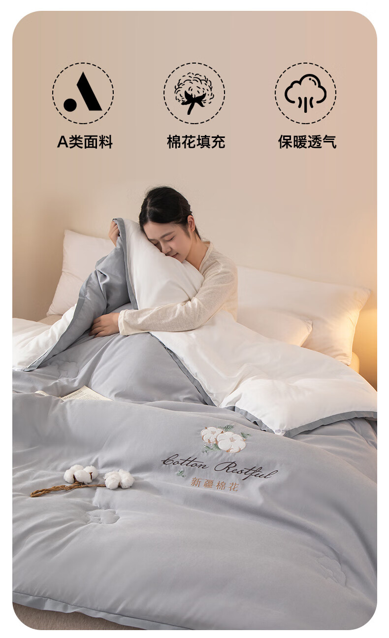 VJE新疆棉花被子冬被加厚棉被褥升级毛巾绣学生宿舍四季通用春秋被芯 绅士灰【A类母婴级抗菌面料 99%抑菌率】 150x200cm【整被约重6斤,适宜室温0-10℃】