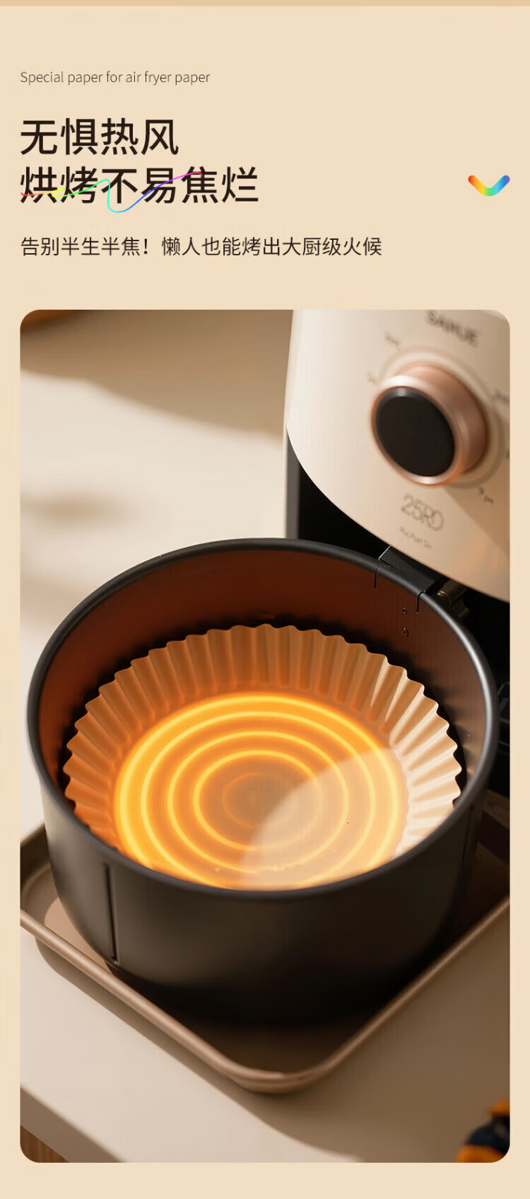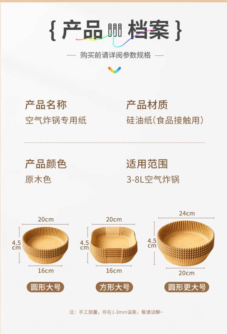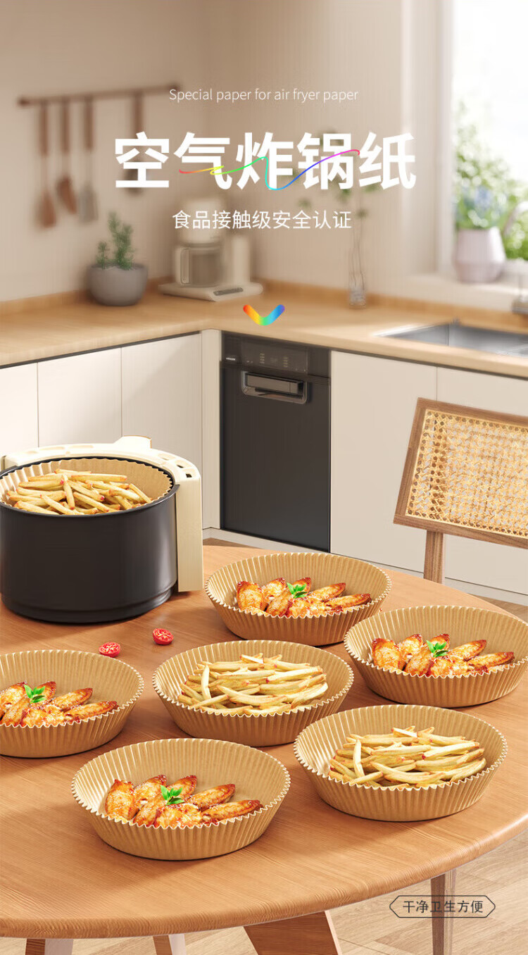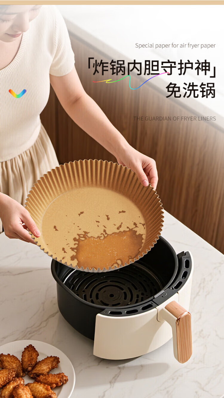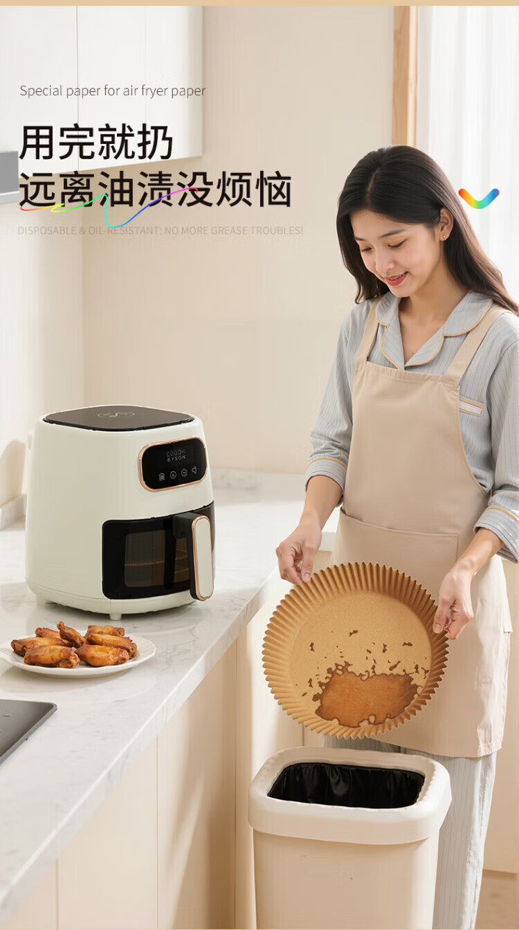 CKULH德国空气炸锅专用纸家用加厚吸油纸食物烤箱烘焙硅油纸垫锡纸碗 大号特厚-100张+pet防尘盒(3-6L通用)