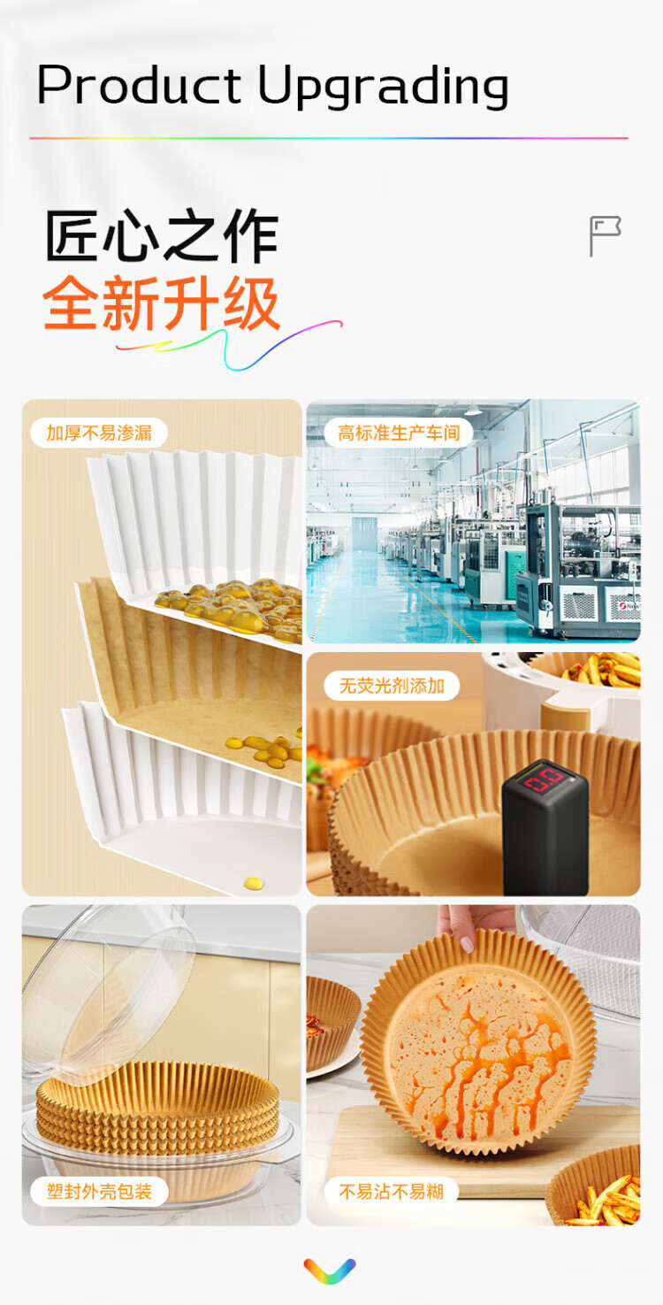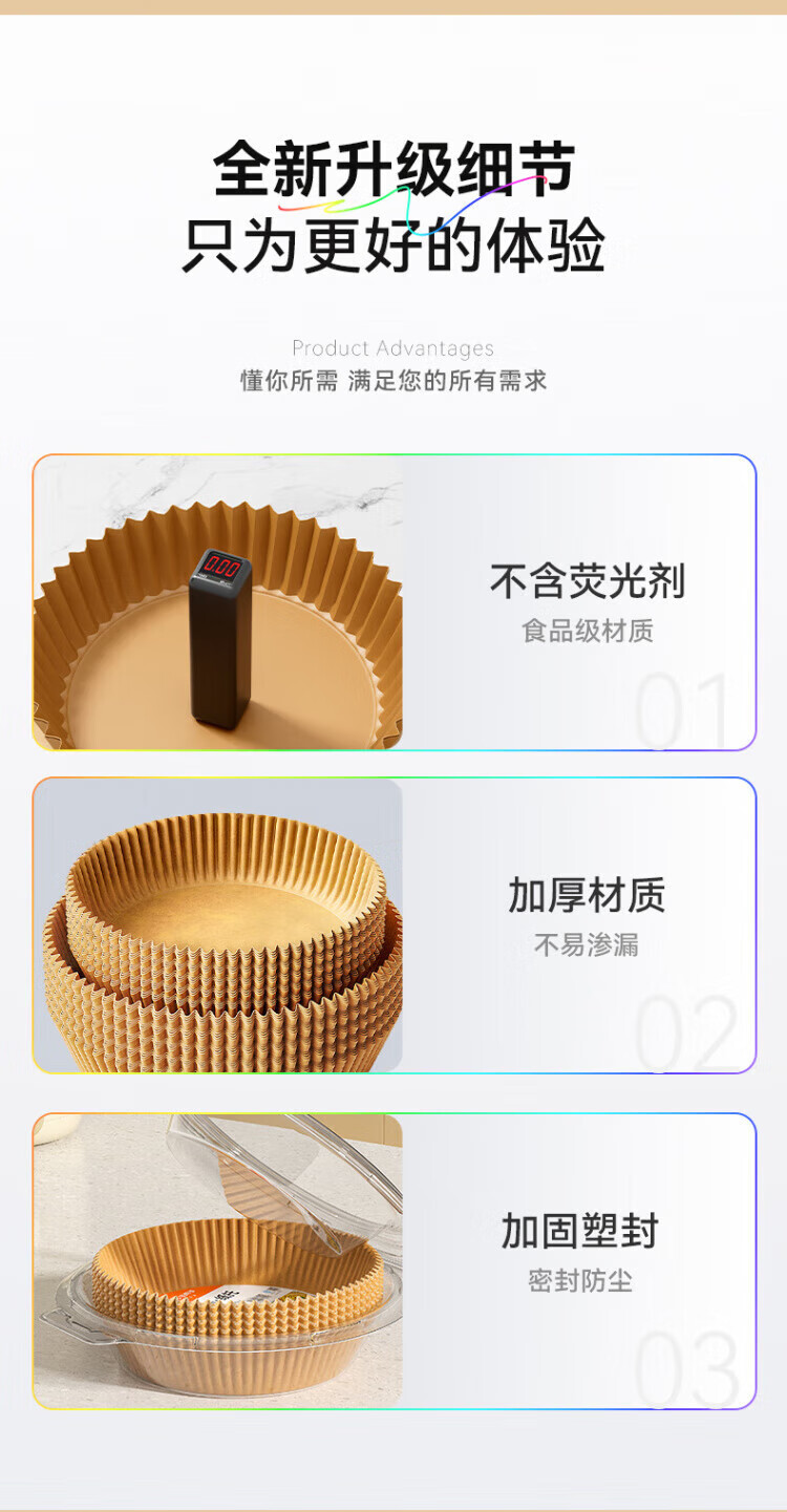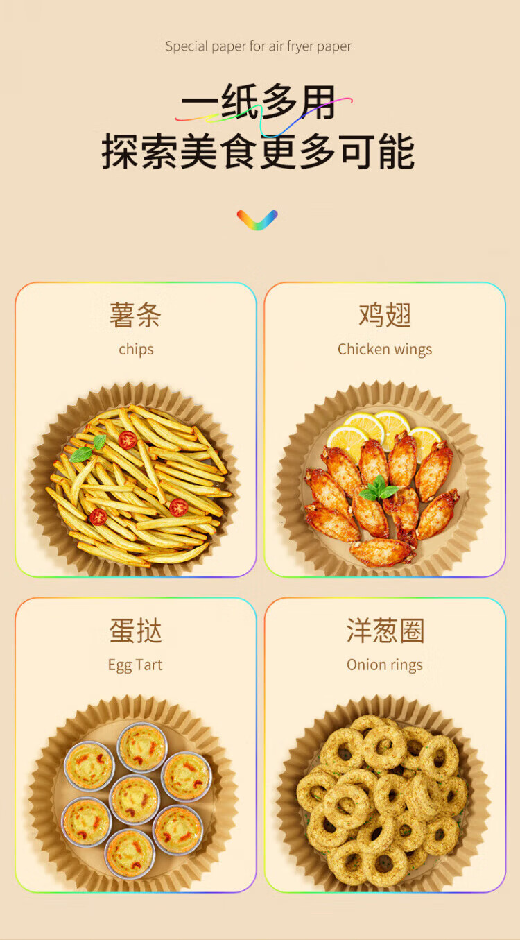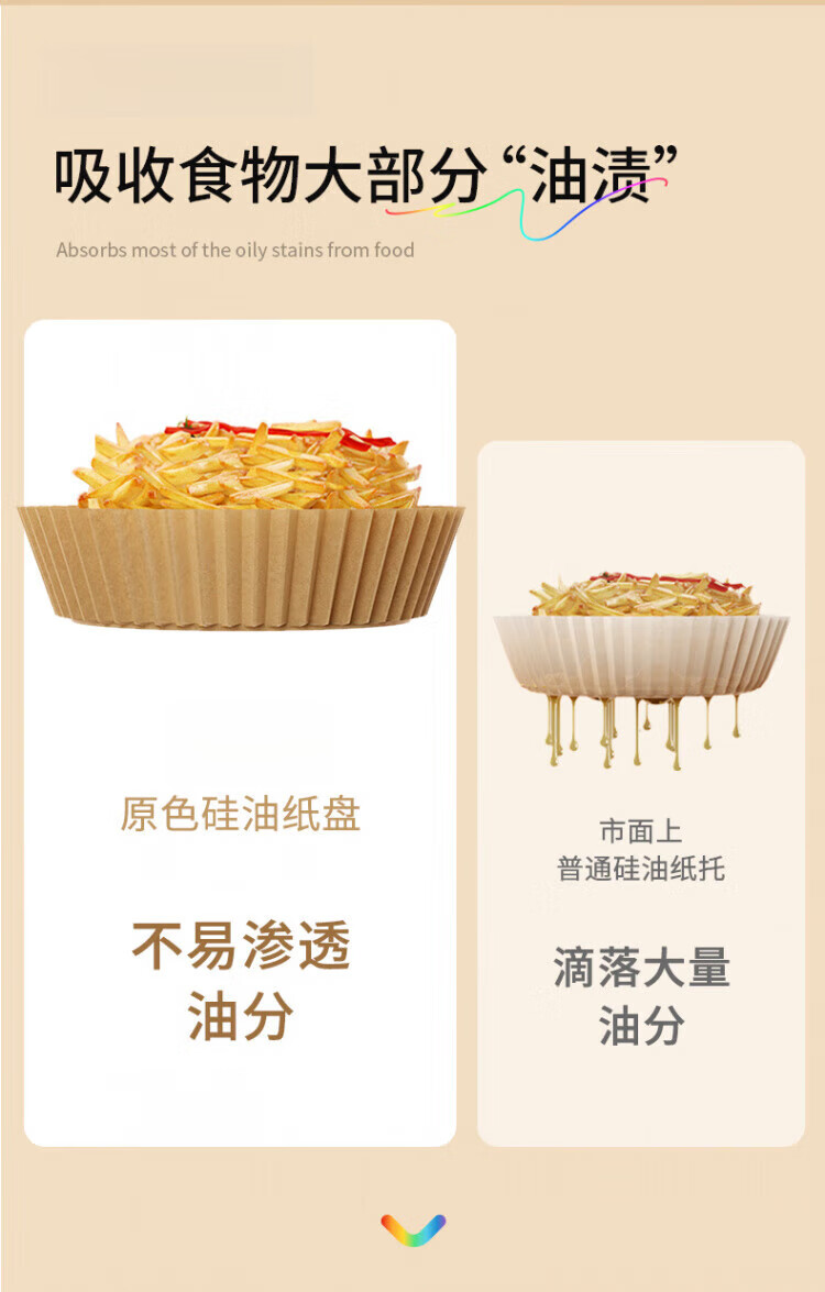 CKULH德国空气炸锅专用纸家用加厚吸油纸食物烤箱烘焙硅油纸垫锡纸碗 大号特厚-100张+pet防尘盒(3-6L通用)