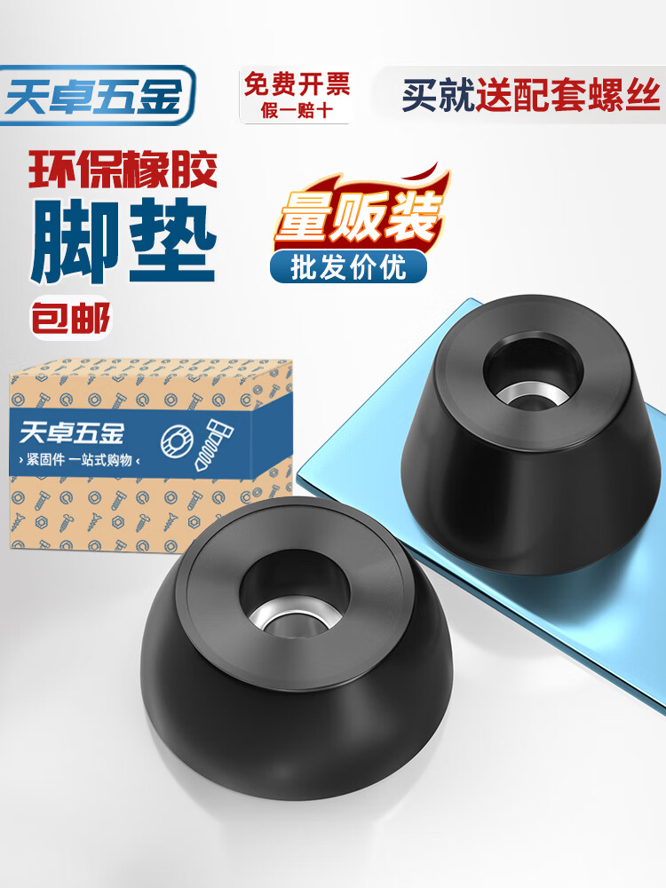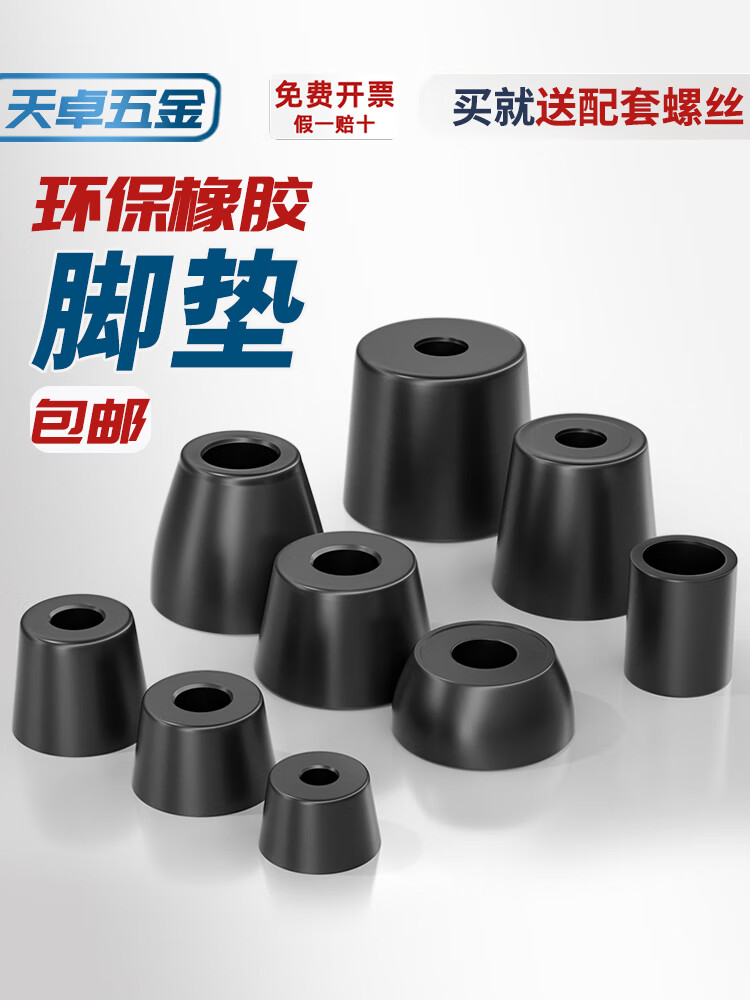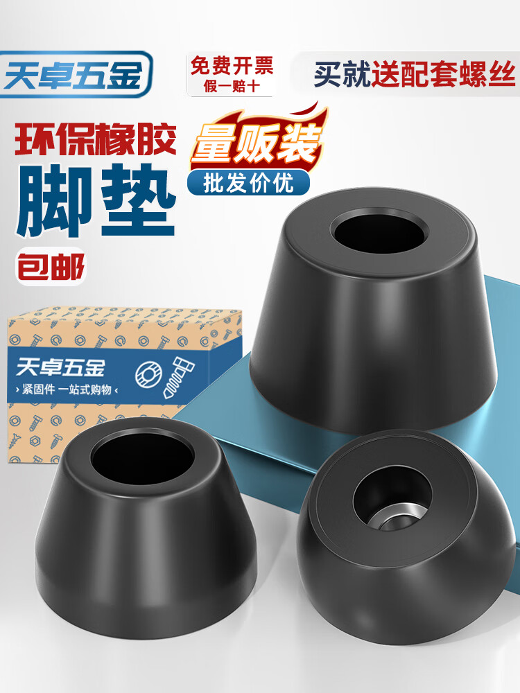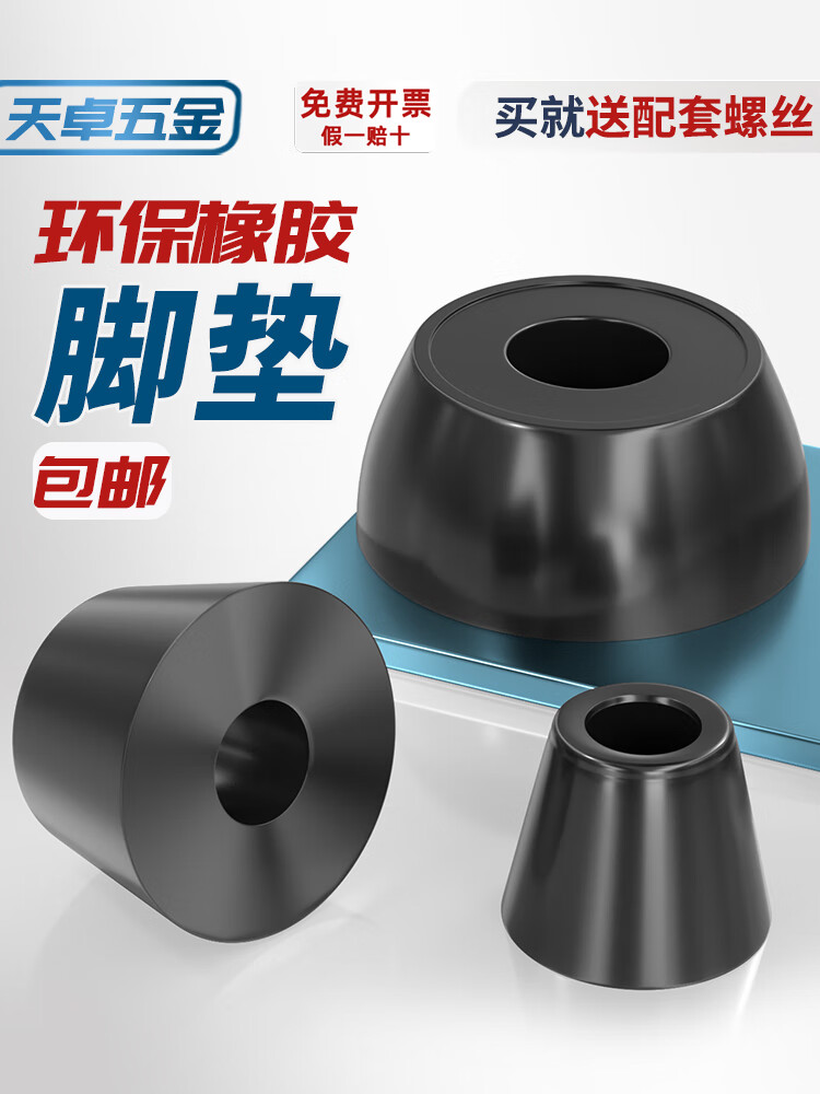 天卓五金环保橡胶脚垫减震垫高圆型垫块塑料地脚橡皮锥形垫脚桌椅音箱脚钉 大径40*小径30*高度22 (8个) 送自攻