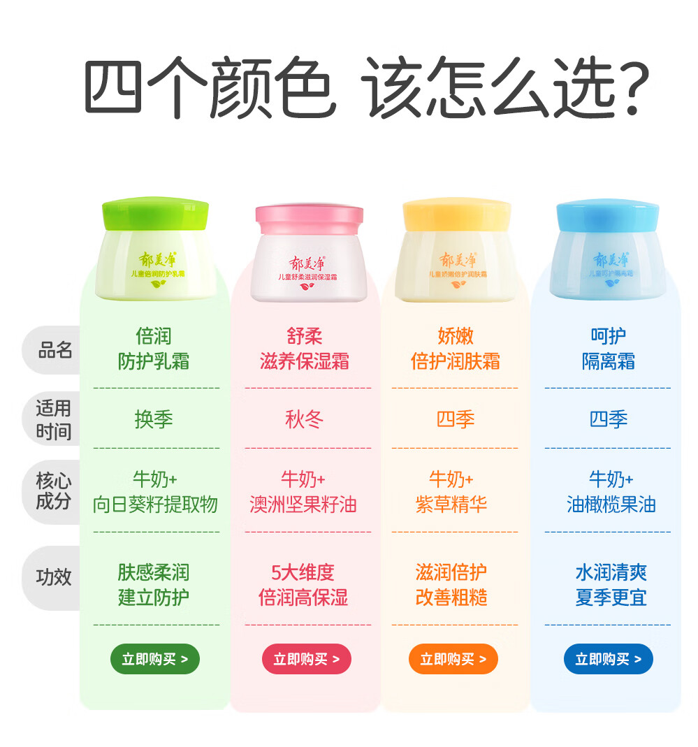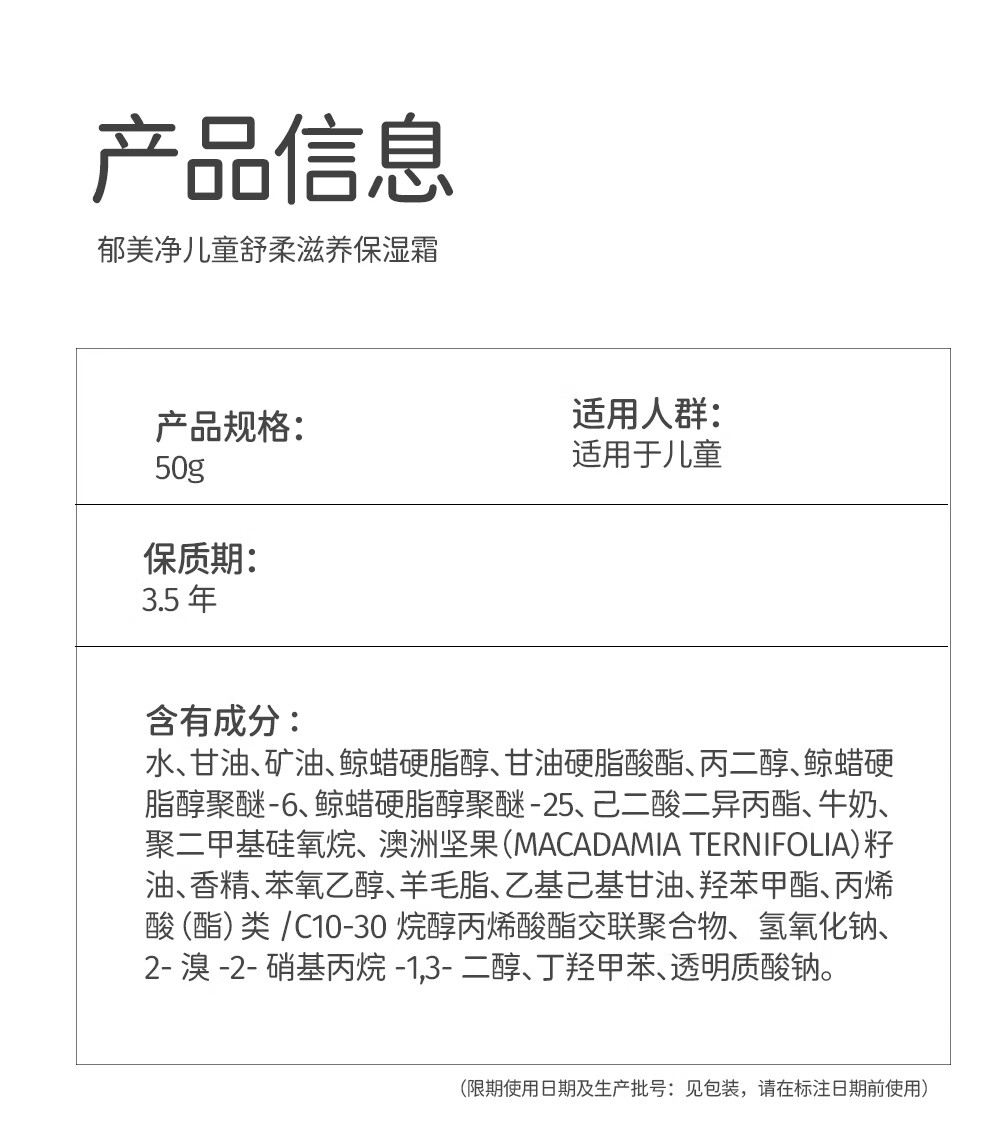 郁美净儿童面霜鲜奶舒柔滋润补水宝宝冬季面霜3-6-12岁补水鲜奶霜50g*2
