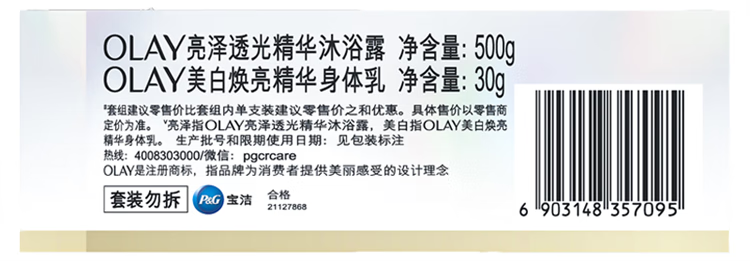 玉兰油(OLAY)亮泽透光精华沐浴露500g+美白焕亮精华身体乳30g套装【临期清仓】