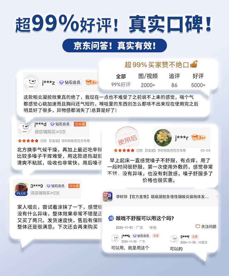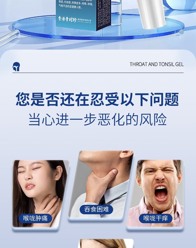 李时珍【官方直售】咽扁凝胶急慢性咽喉炎扁桃体发炎医用口干咳嗽痒正品 【3盒疗程装】93%客户所选
