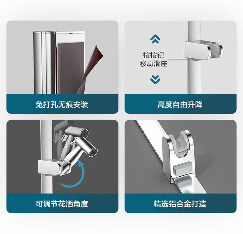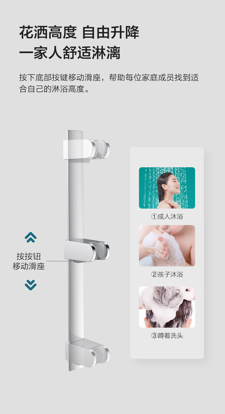 九牧(JOMOO)淋浴花洒升降杆花洒支架免钉铝合金自由升降杆 【免钉铝合金升降杆】T6503