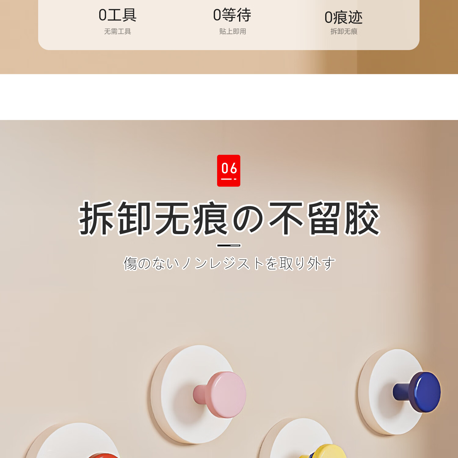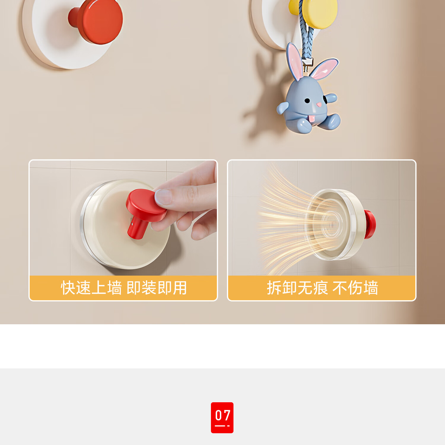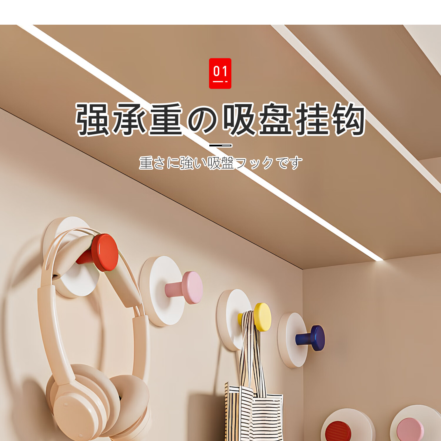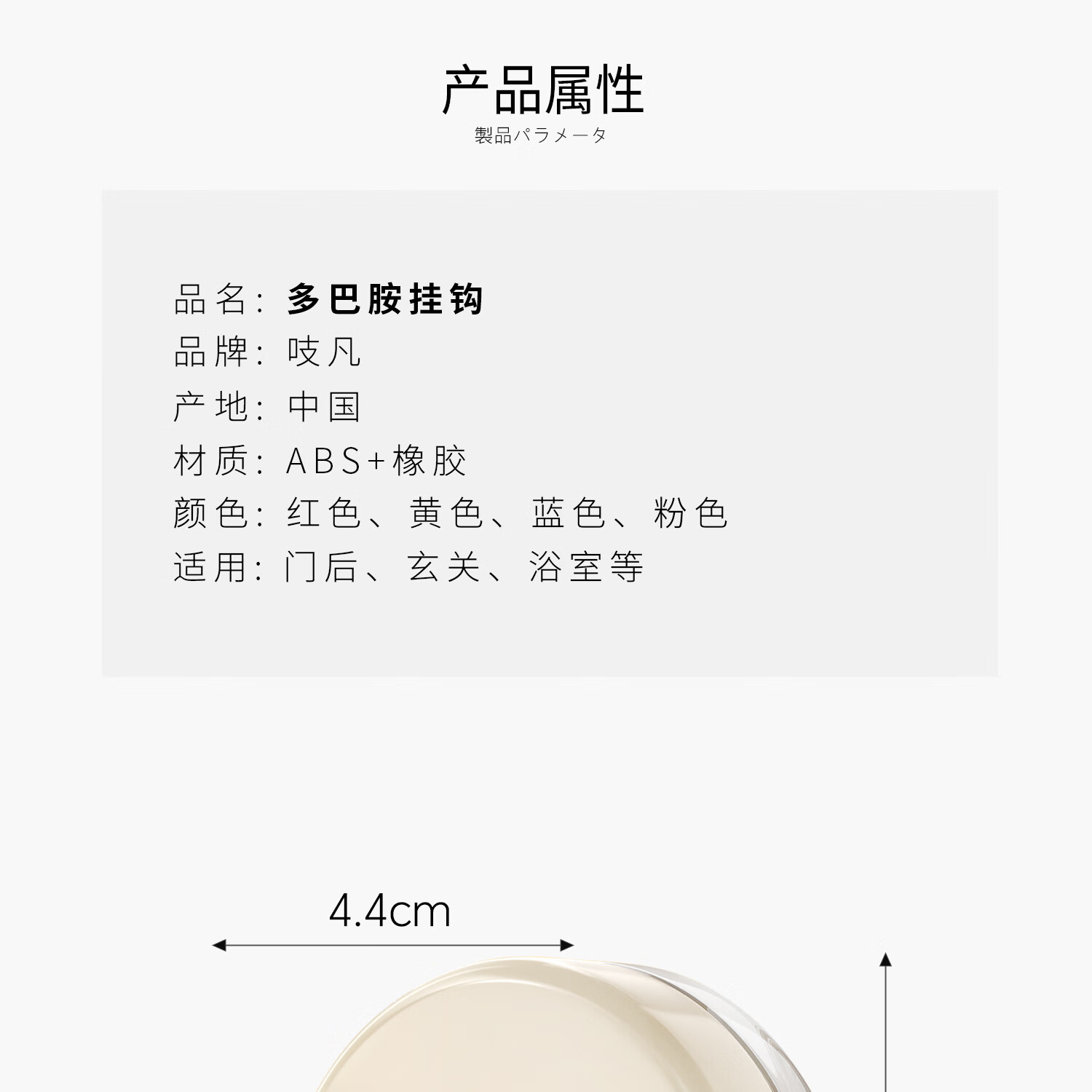 吱凡日本多巴胺吸盘挂钩门后粘钩强力承重粘胶免打孔玄关放钥匙帽子架 组合装【红色*1+黄色*1+蓝色*1=3】
