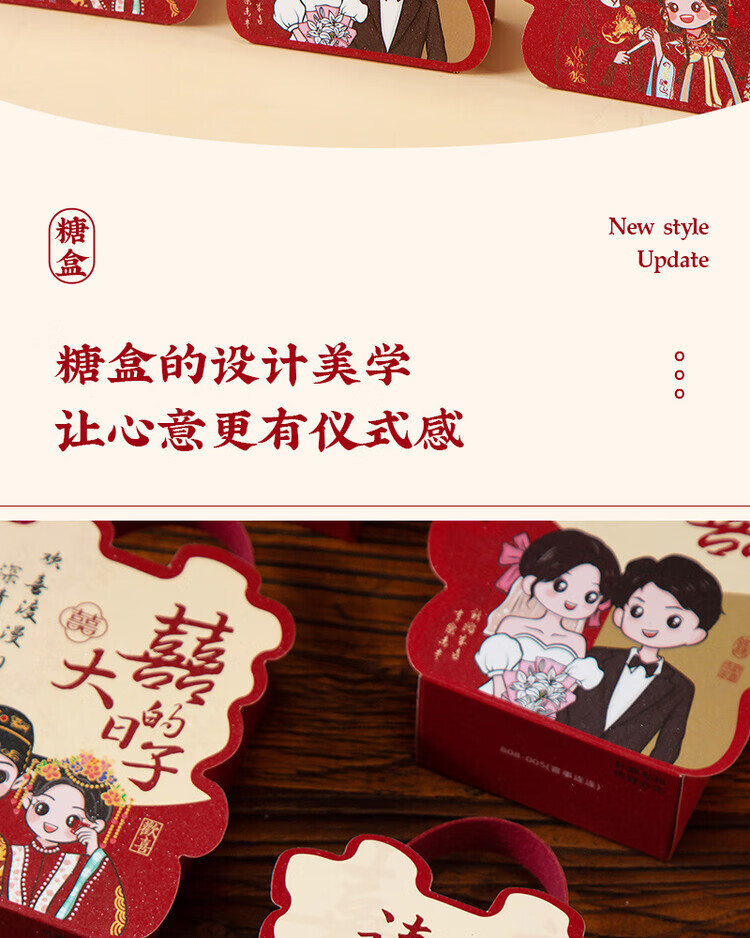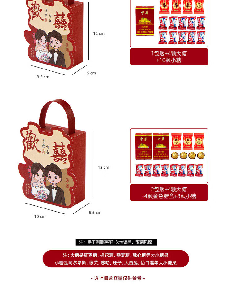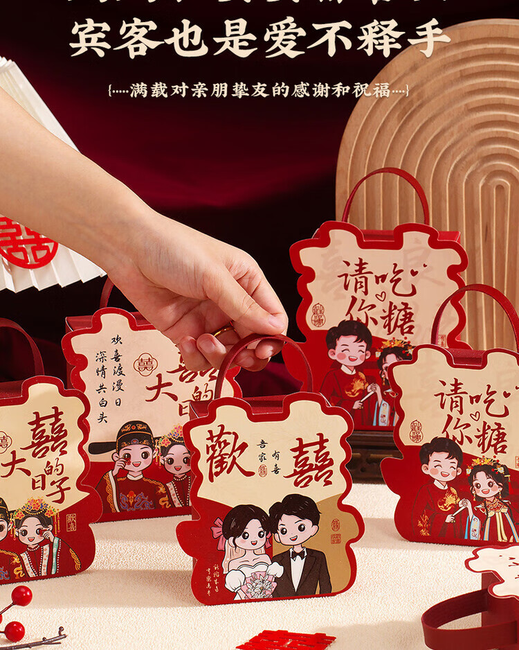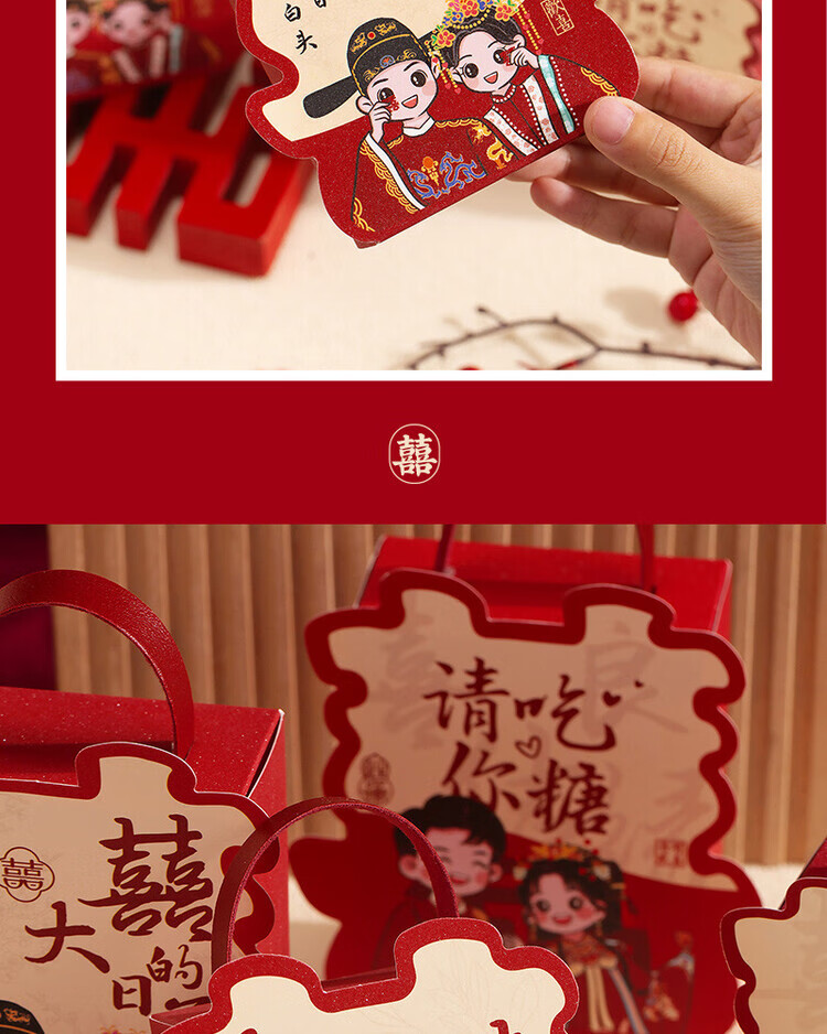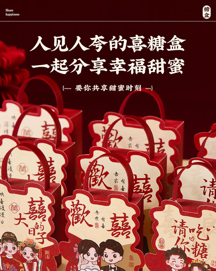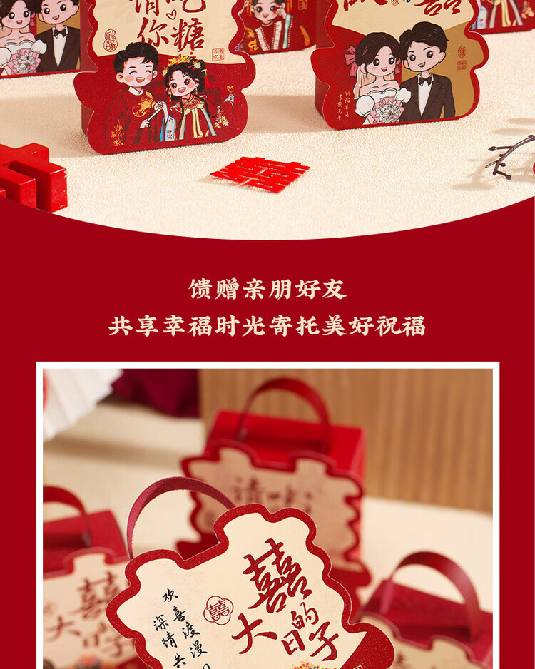 OYKTN喜糖盒结婚喜糖盒子婚礼专用新中式糖果礼盒糖果包装袋子空盒礼盒 喜字盒-大喜的日子 小号10个