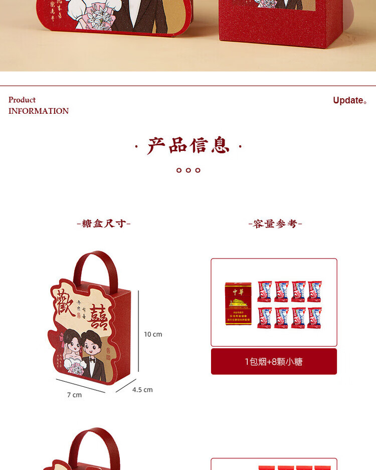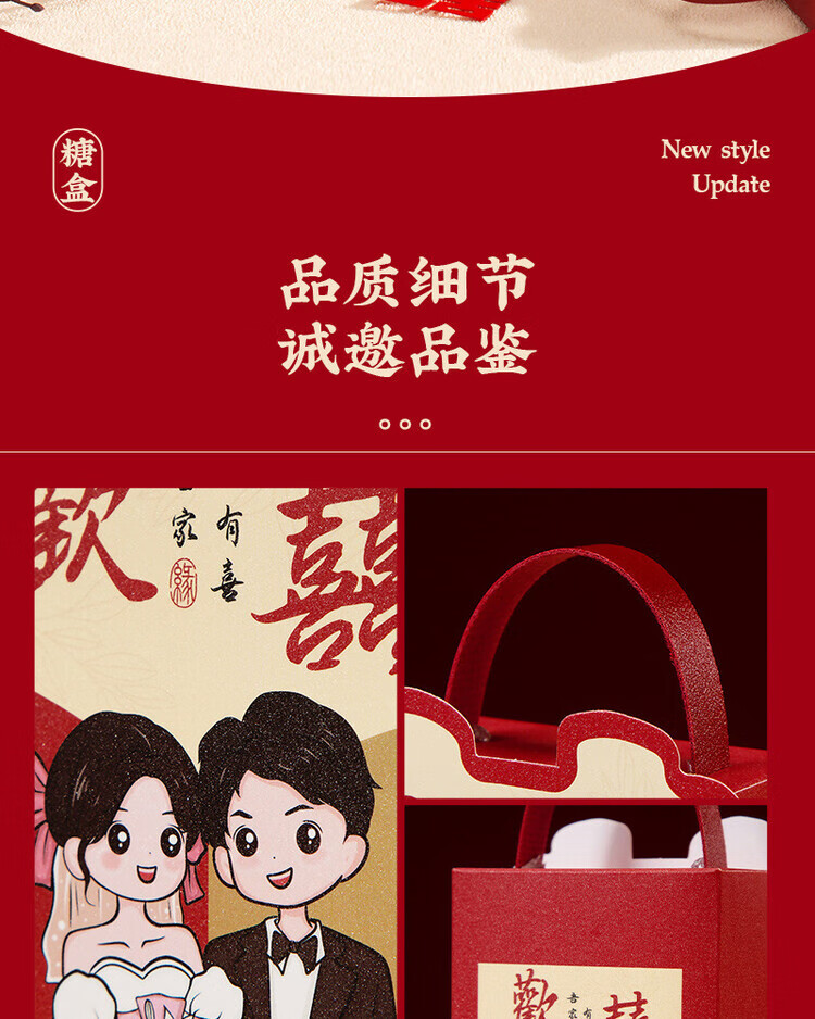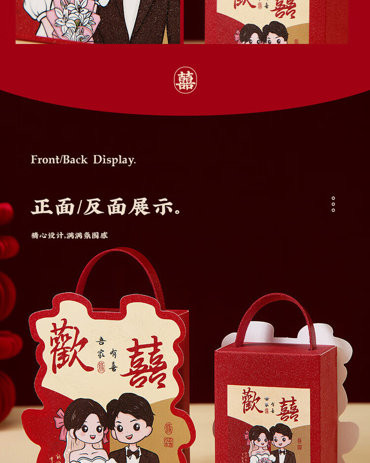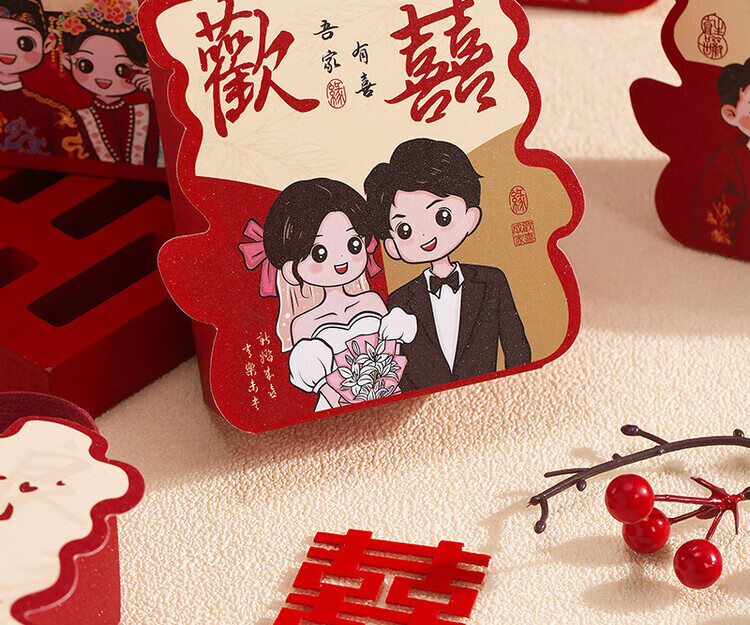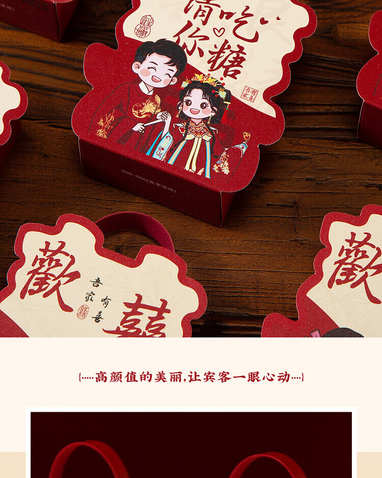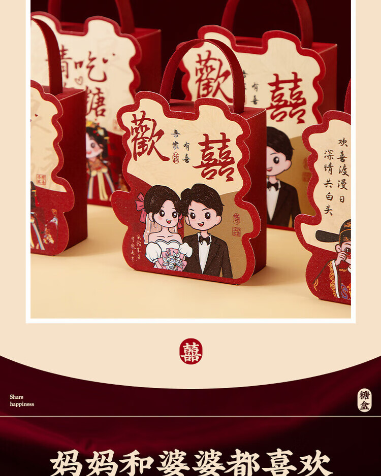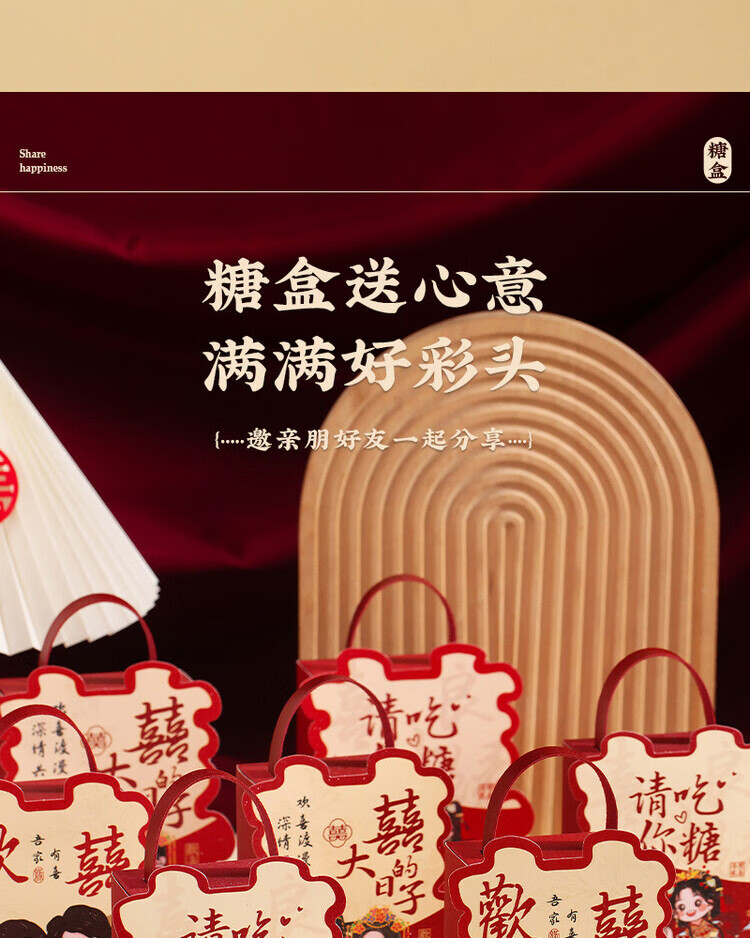 OYKTN喜糖盒结婚喜糖盒子婚礼专用新中式糖果礼盒糖果包装袋子空盒礼盒 喜字盒-大喜的日子 小号10个
