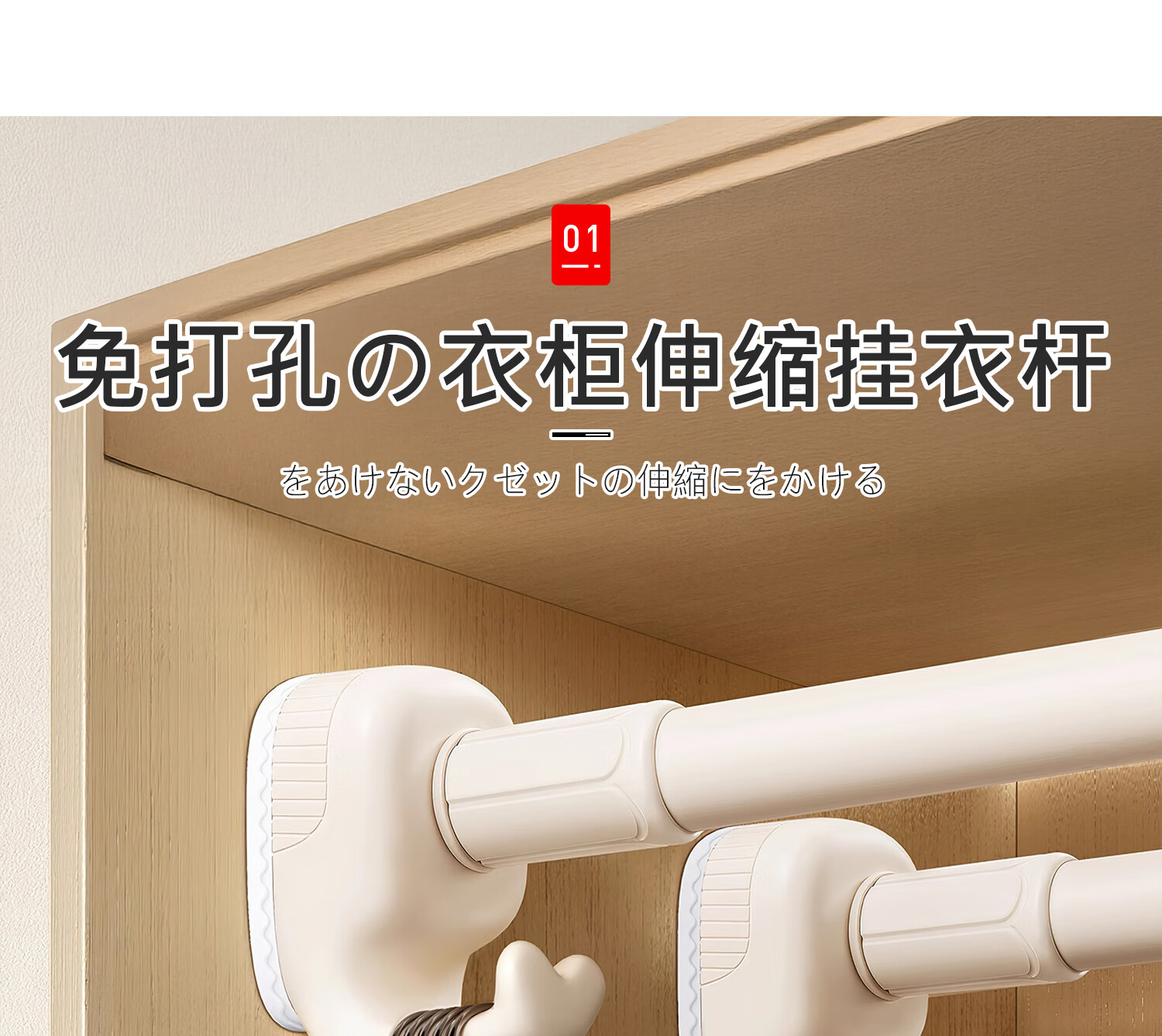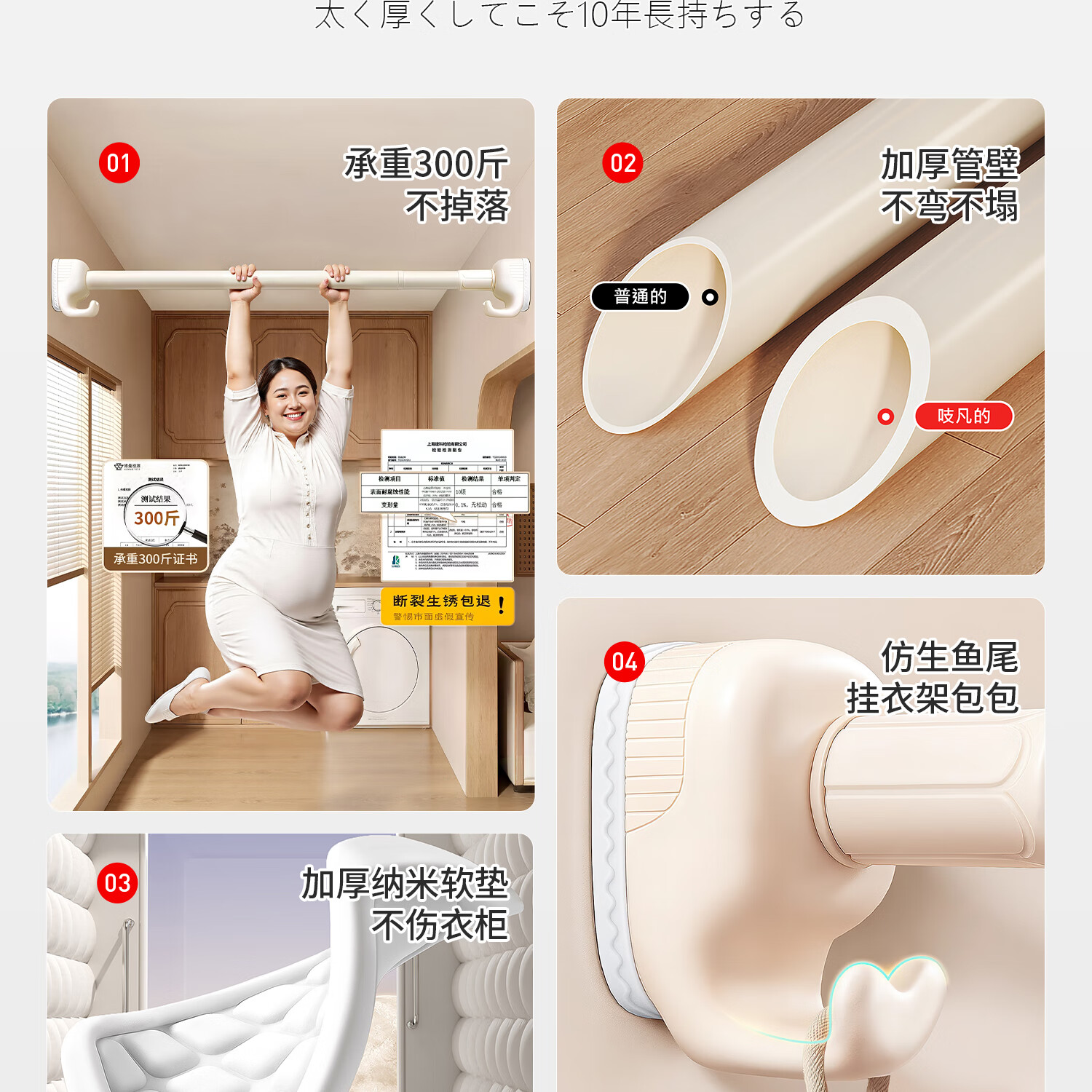 吱凡日本衣柜收纳挂衣杆免打孔伸缩晾衣杆浴室窗帘撑杆横杆卫生间阳台 【1~1.7米】 陨铁灰 可伸缩【免打孔丨掉落包赔】