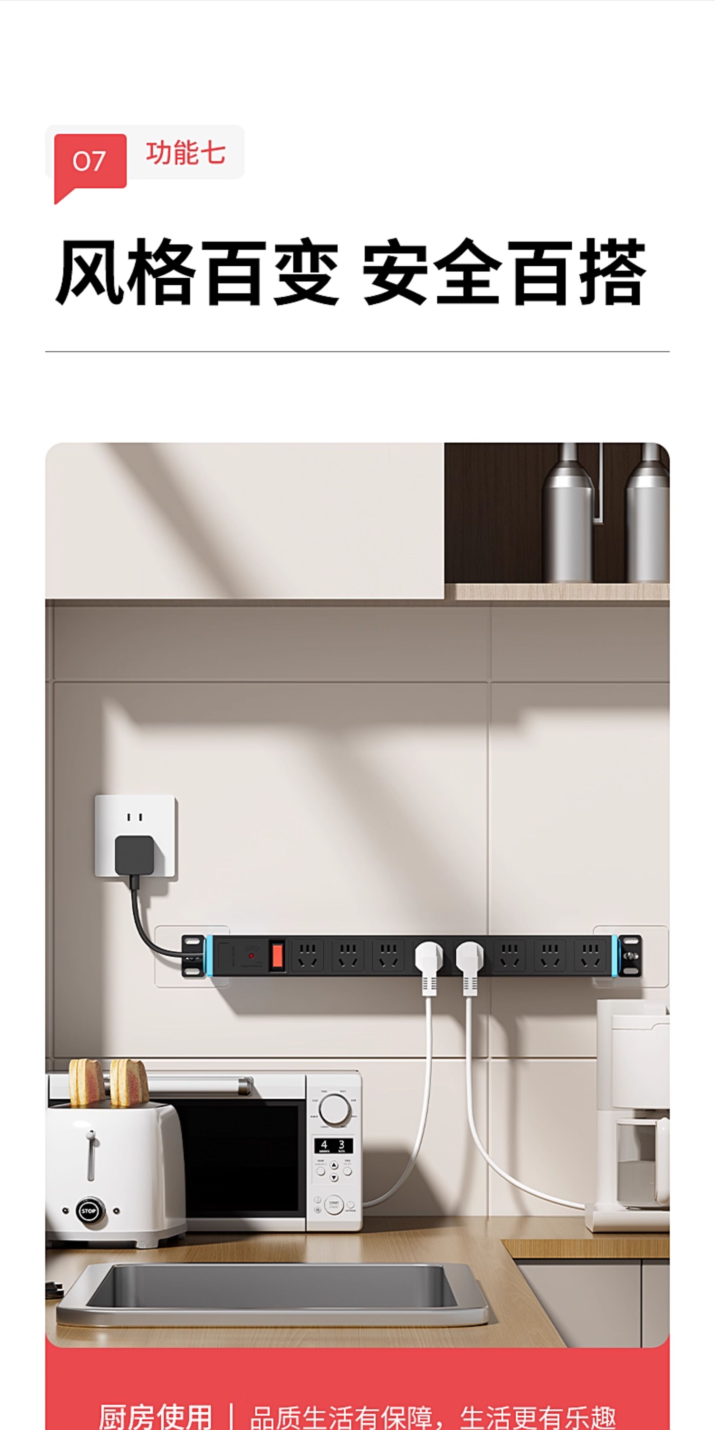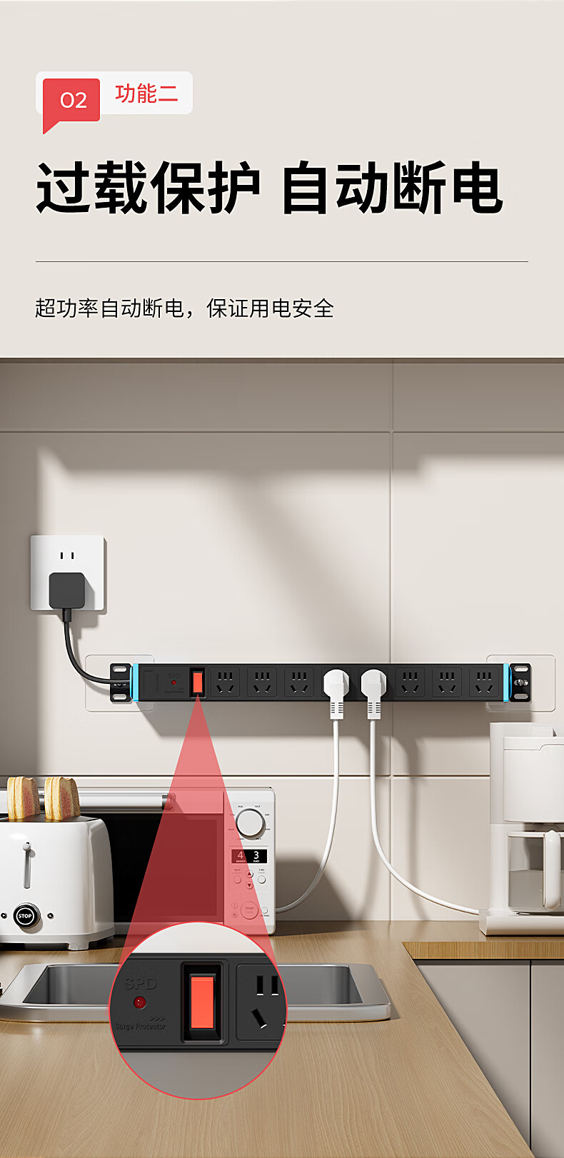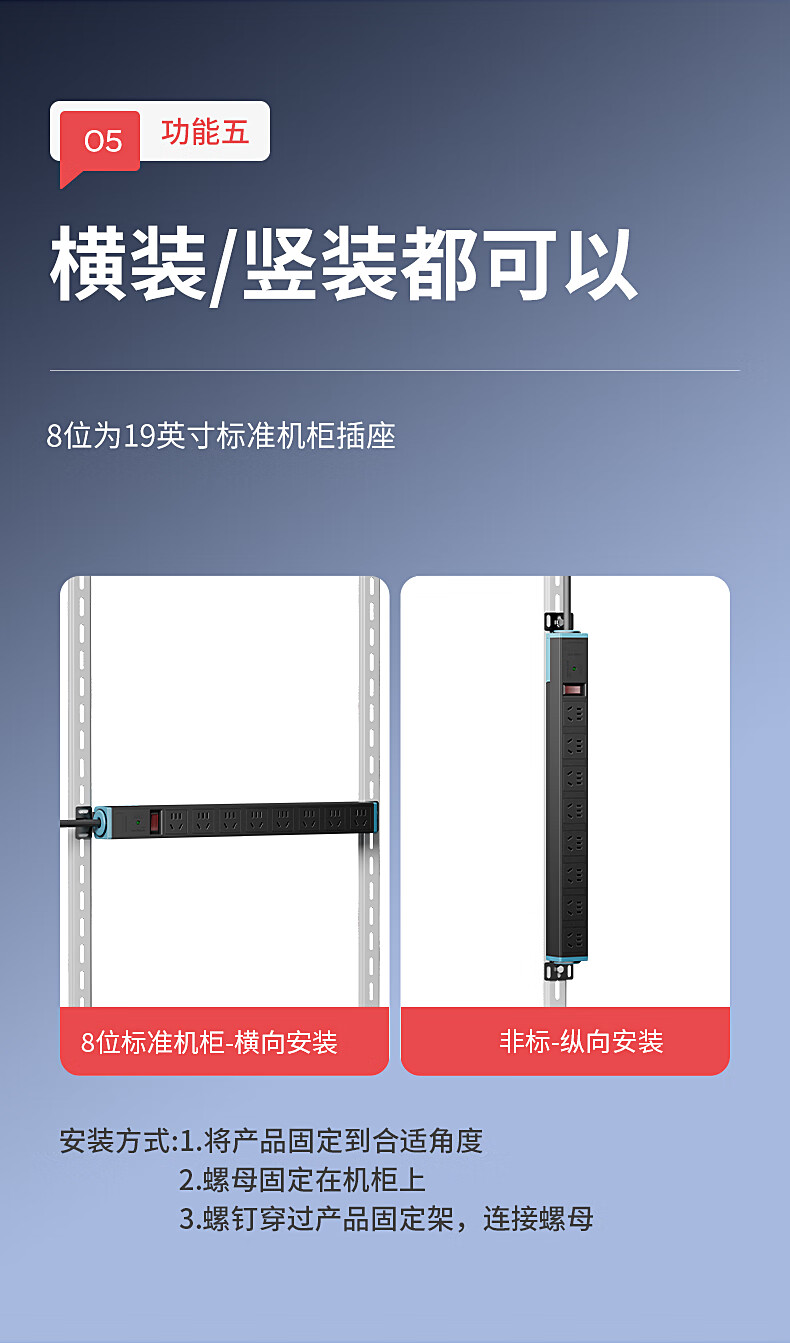 国际电工多孔扩展插座转换器短线PDU排插厨房墙壁拓展超薄固定插线板防过载防雷电竞插排 【黑色】八位无线(过载保护)