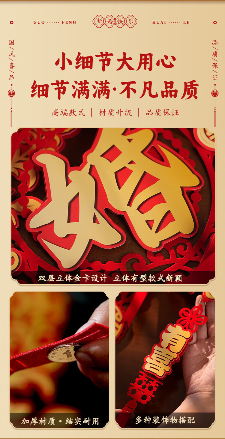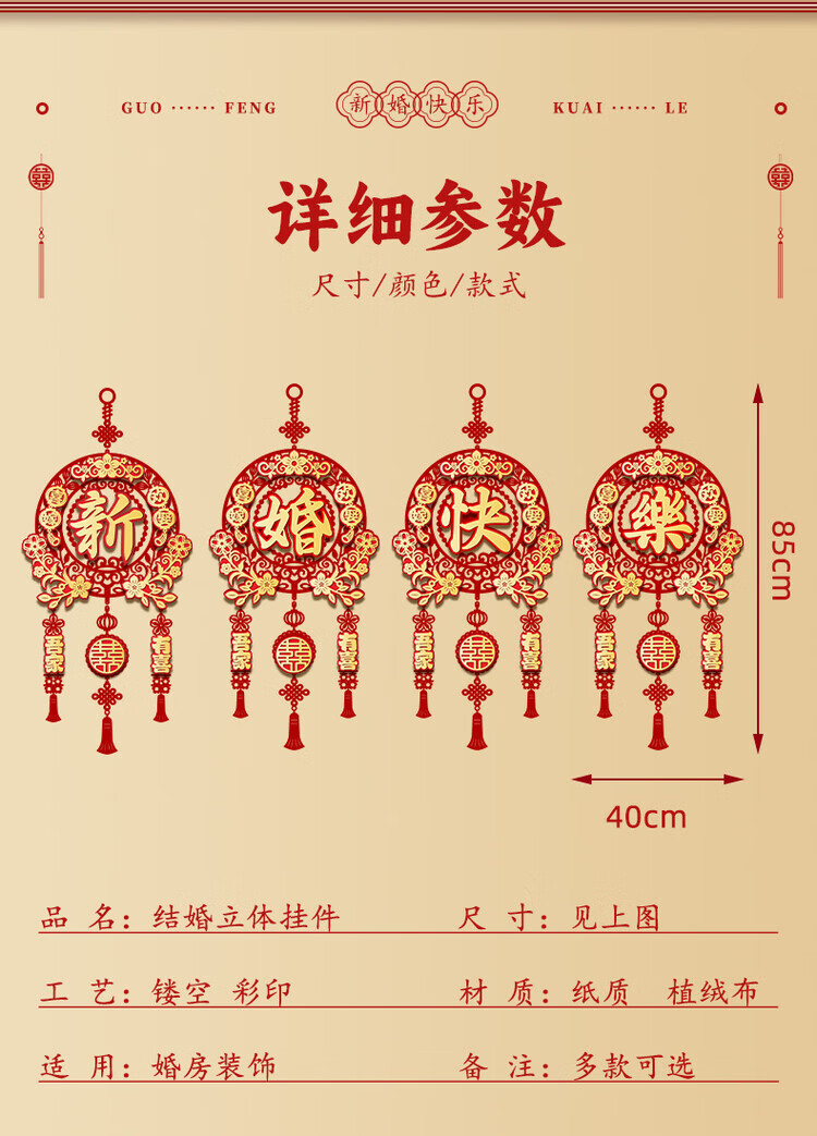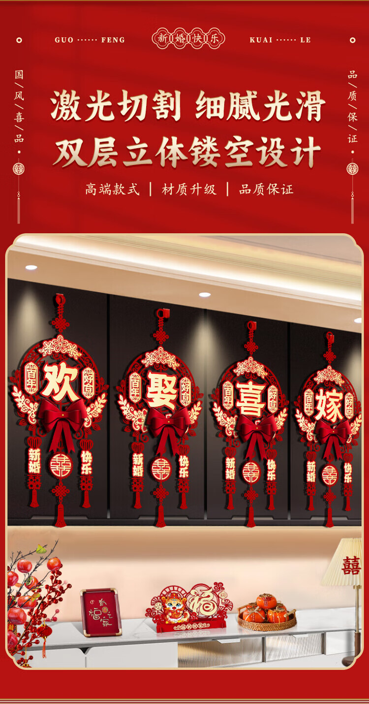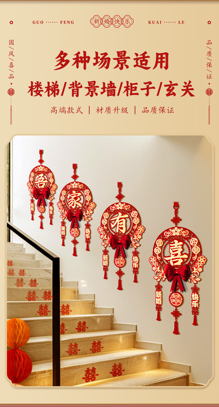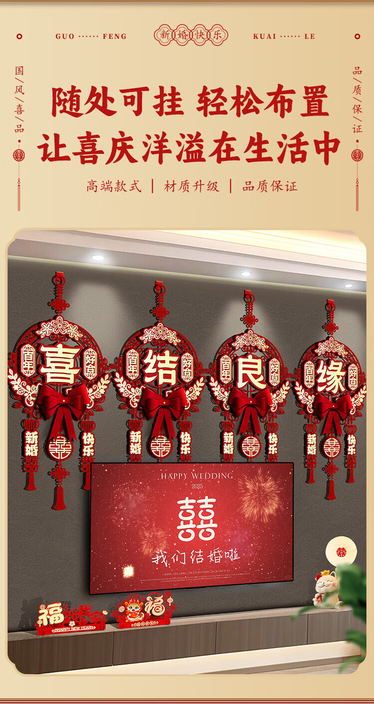 OYKTN结婚布置喜字挂件男女方新房卧室客厅挂饰电视背景墙婚房装饰套装 【新婚快乐】结婚挂件1套