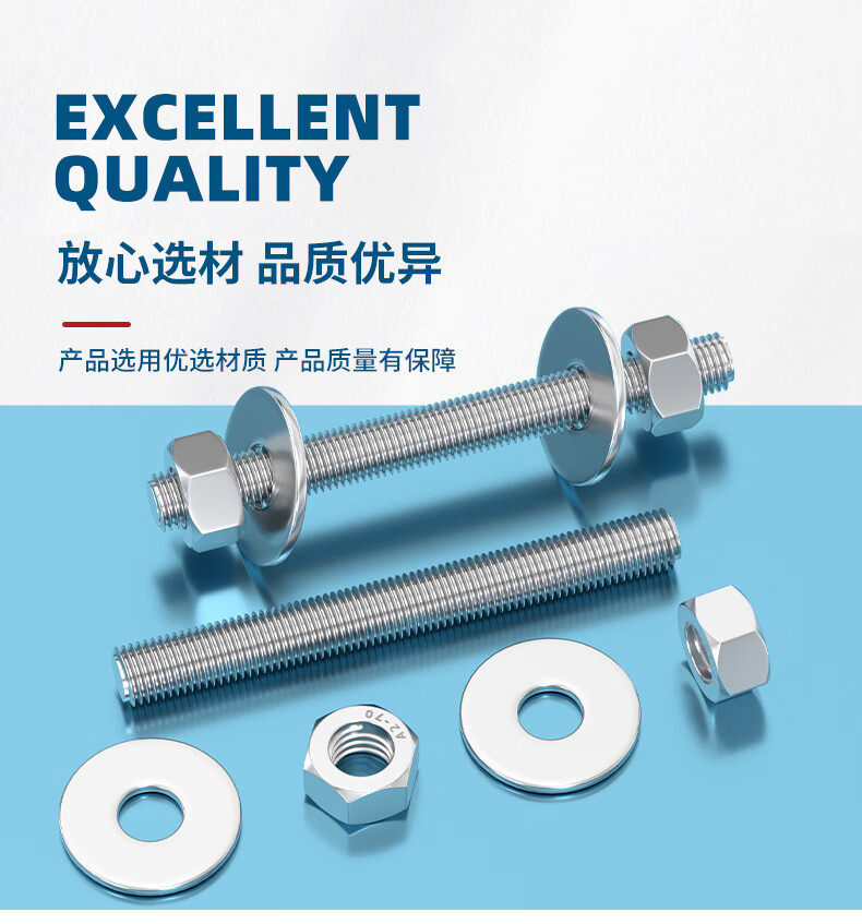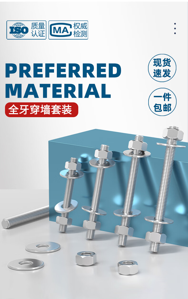 天卓五金304不锈钢全牙棒穿墙螺丝螺杆加长螺栓对穿丝杆螺母垫片组合套装 M3*16【30套】