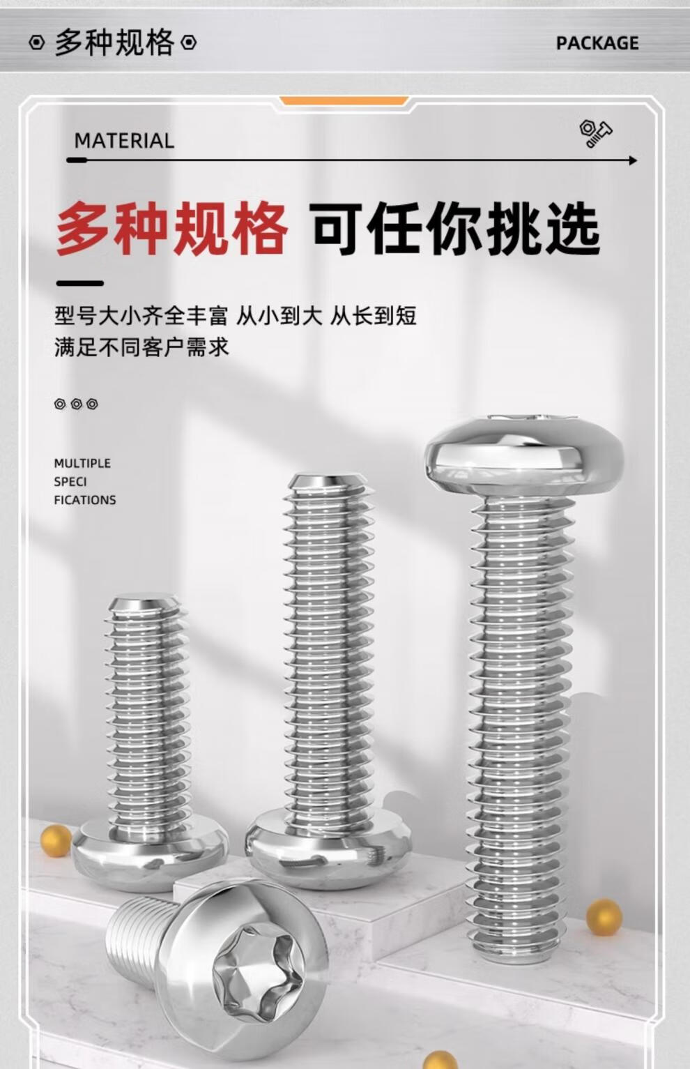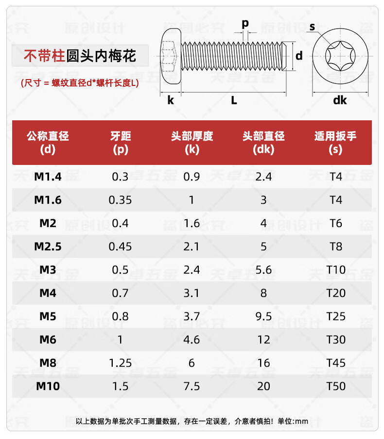 天卓五金国标316不锈钢盘头内梅花螺丝钉圆头防盗螺栓螺杆M3M4M5M6M8M10mm M2*3(150个)不带柱