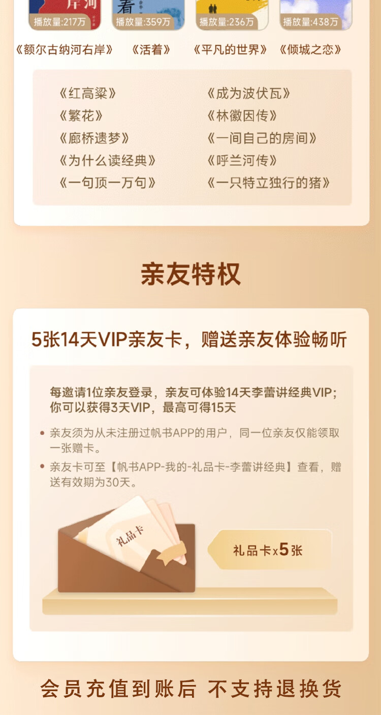 李蕾讲经典VIP买1年送1年 直接到账2年会员 帆书APP买一送一1