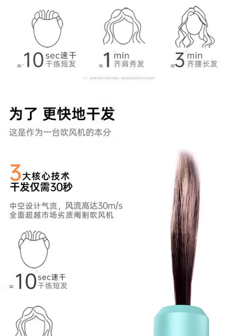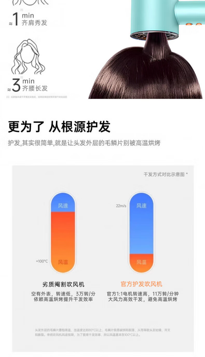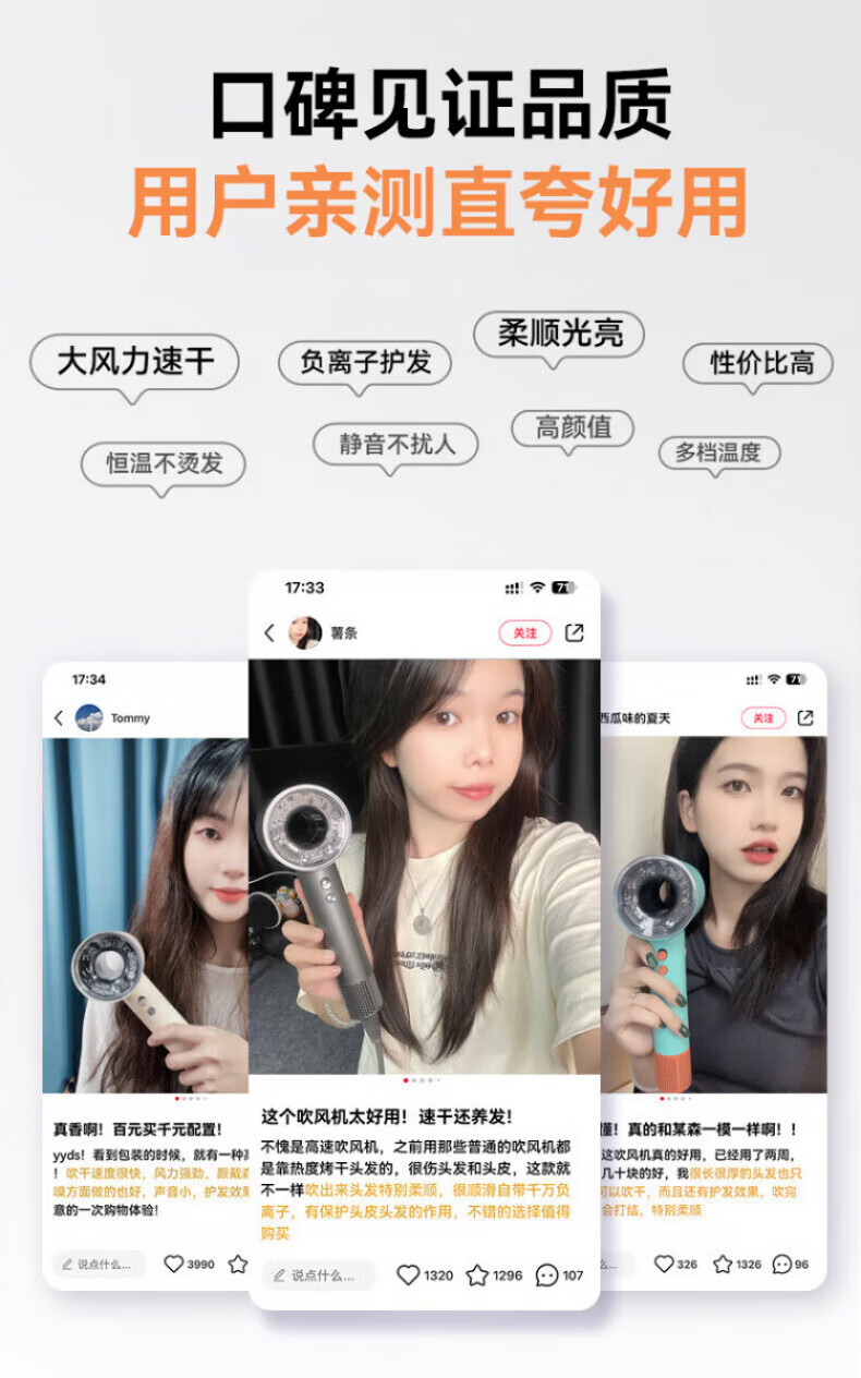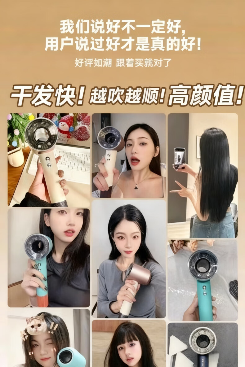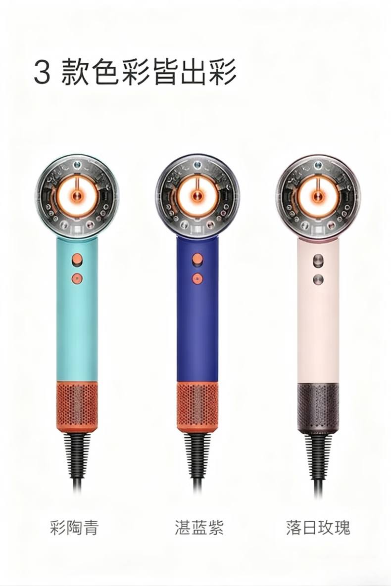 飒望德国吹风机智能感应负离子大功率不伤发护发无叶家用静音电吹风筒吹头发速干便携酒店情人节送女友 落日玫瑰【五风嘴】智能控温 全新升级 水润负离子