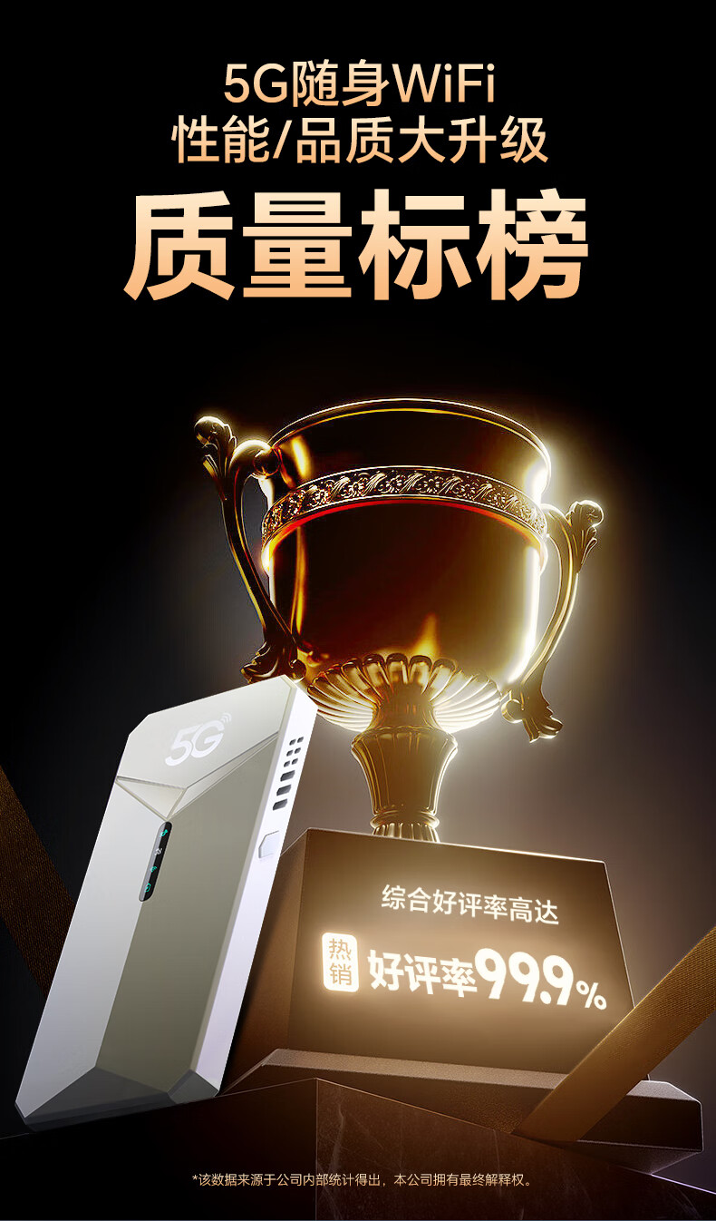 智选2025款免插卡移动随身WlFl5g无限流量全国通用穿墙无线网 WiFi6【荣耀版】提速9999%