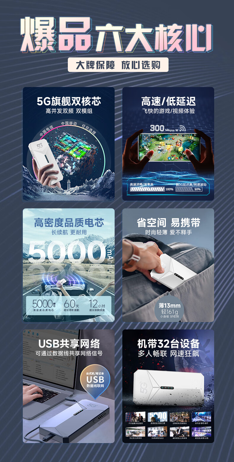 夏新5g随身wifi6移动无线网卡免插卡路由器无限速流量车载便携网络高速mifi移动热点笔记本 【5G性能版-科技白】WiFi6支持32台设备在线