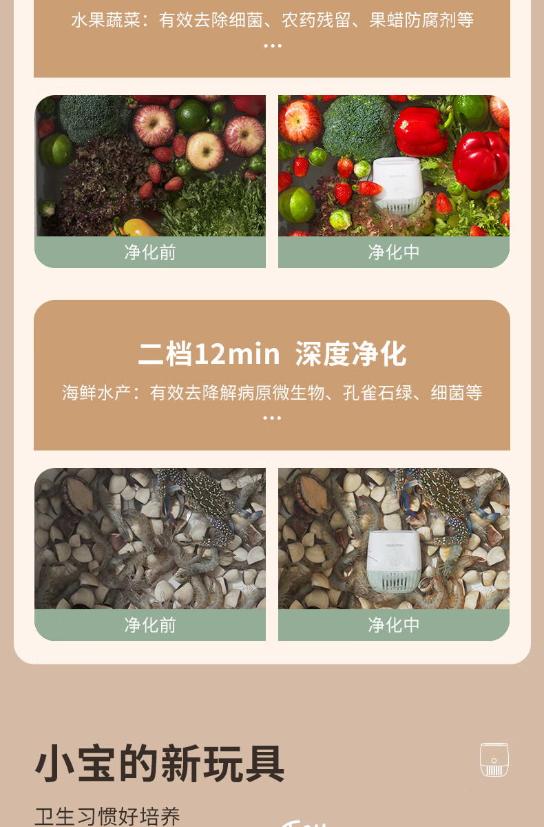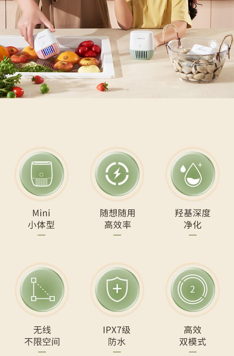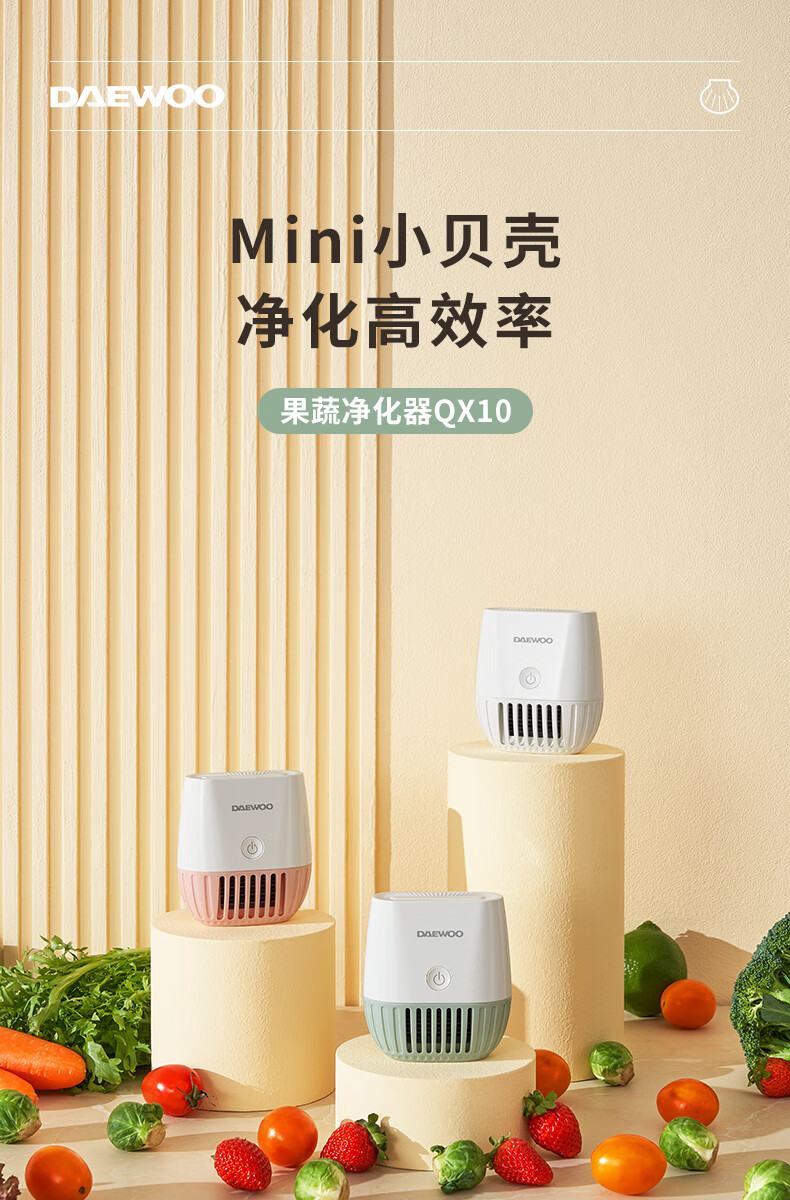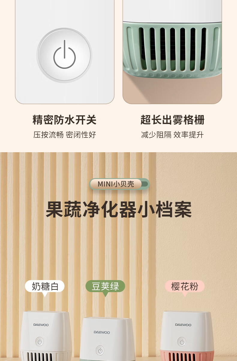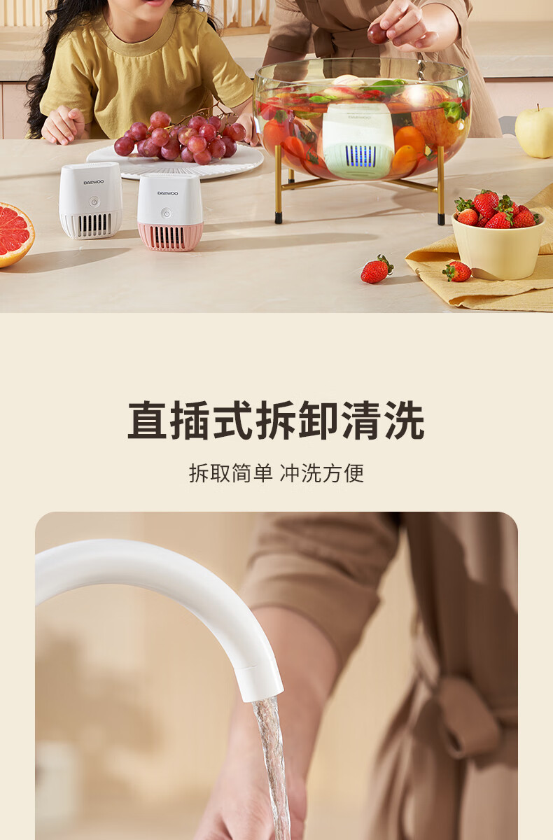 大宇果蔬清洗机果蔬清洗器无线洗菜机去农残蔬菜清洗机多功能果蔬净化器食材净化机果蔬净化清洗机QX10 米白色QX10