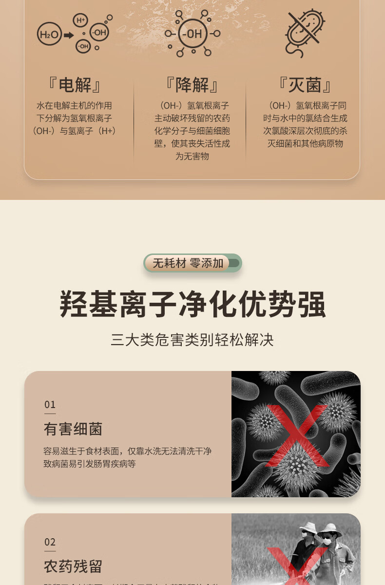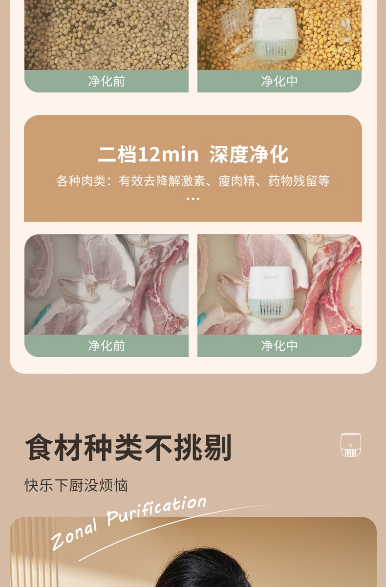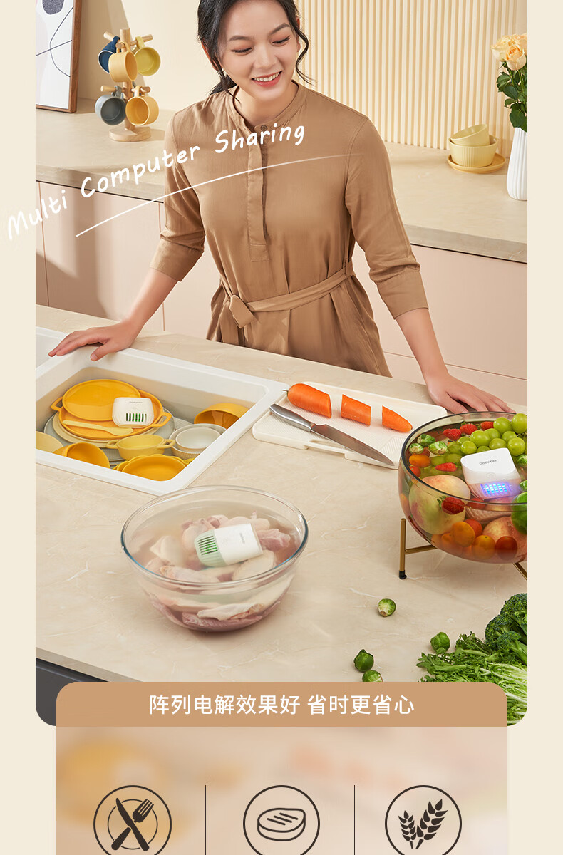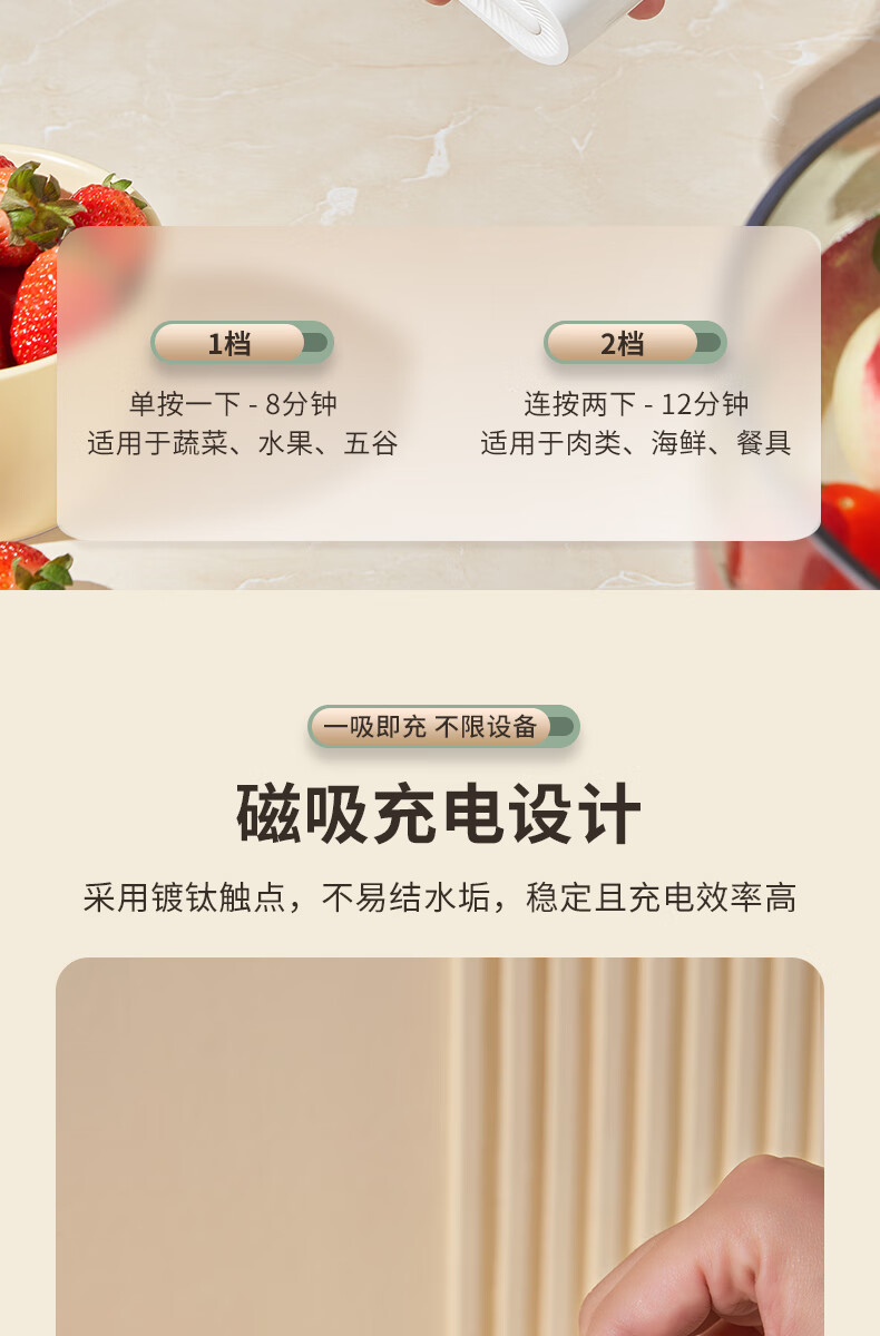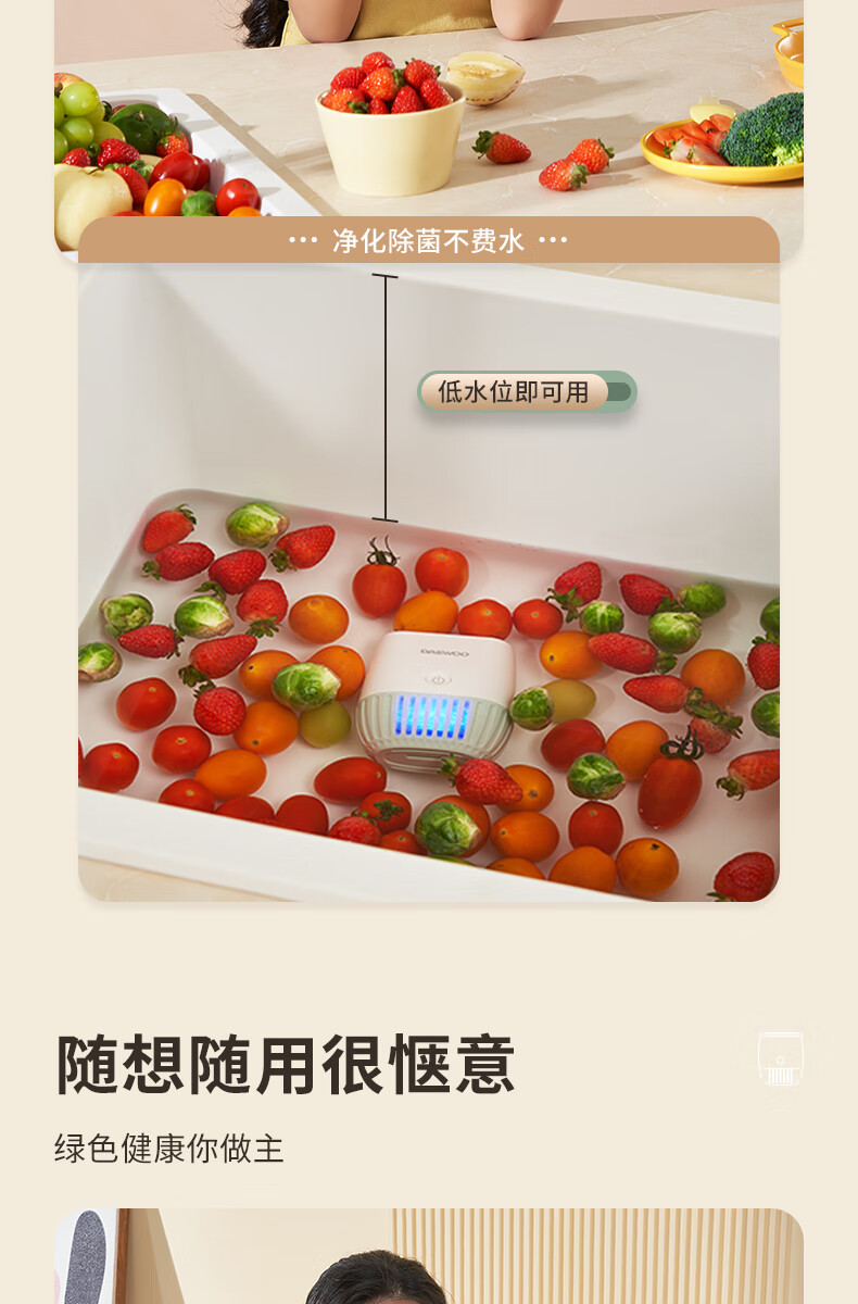 大宇果蔬清洗机果蔬清洗器无线洗菜机去农残蔬菜清洗机多功能果蔬净化器食材净化机果蔬净化清洗机QX10 米白色QX10