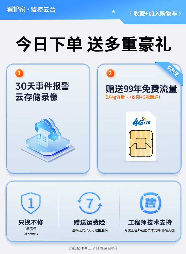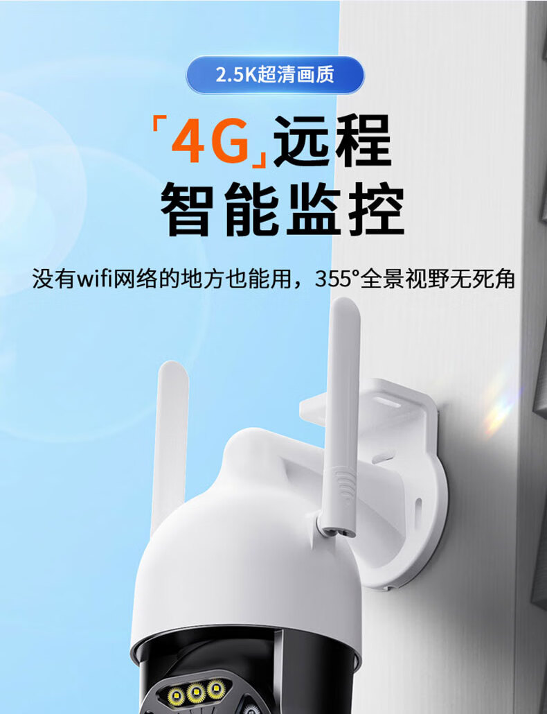 看护家4G监控摄像头超大广角家用摄影头录像机室内外WIFI无线监控器360度夜视无死角户外摄影机商用球机 爆款4G版【99年免流量】+32G免费回放录像卡
