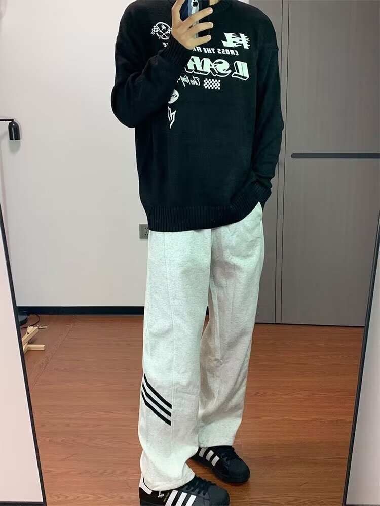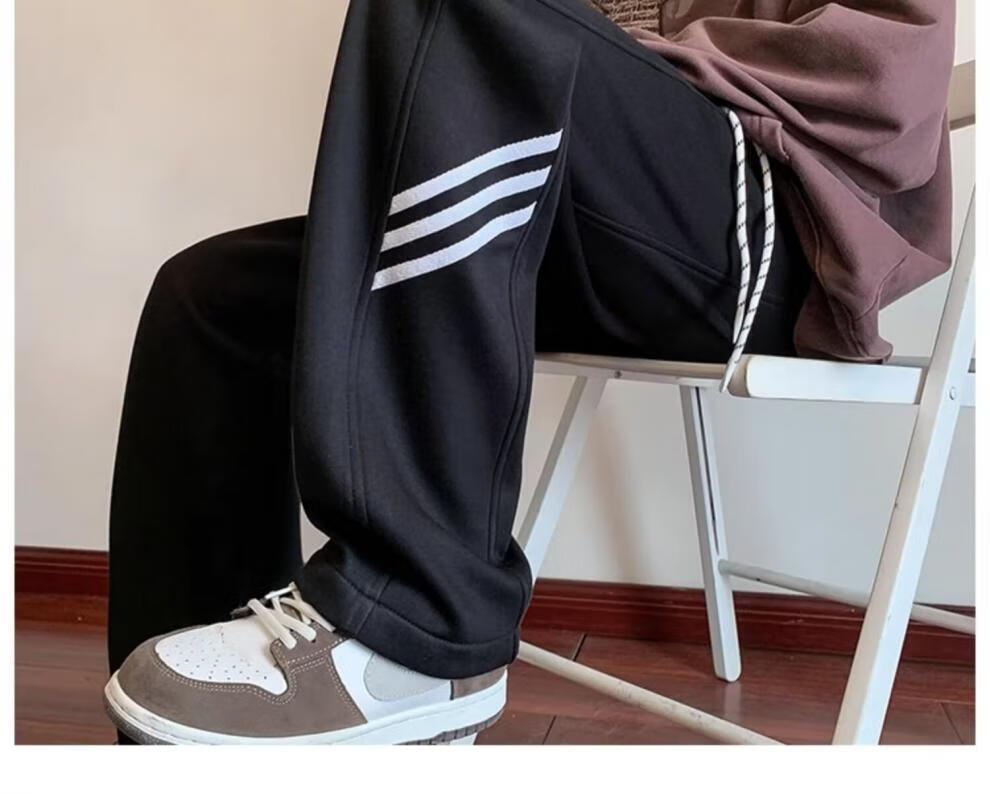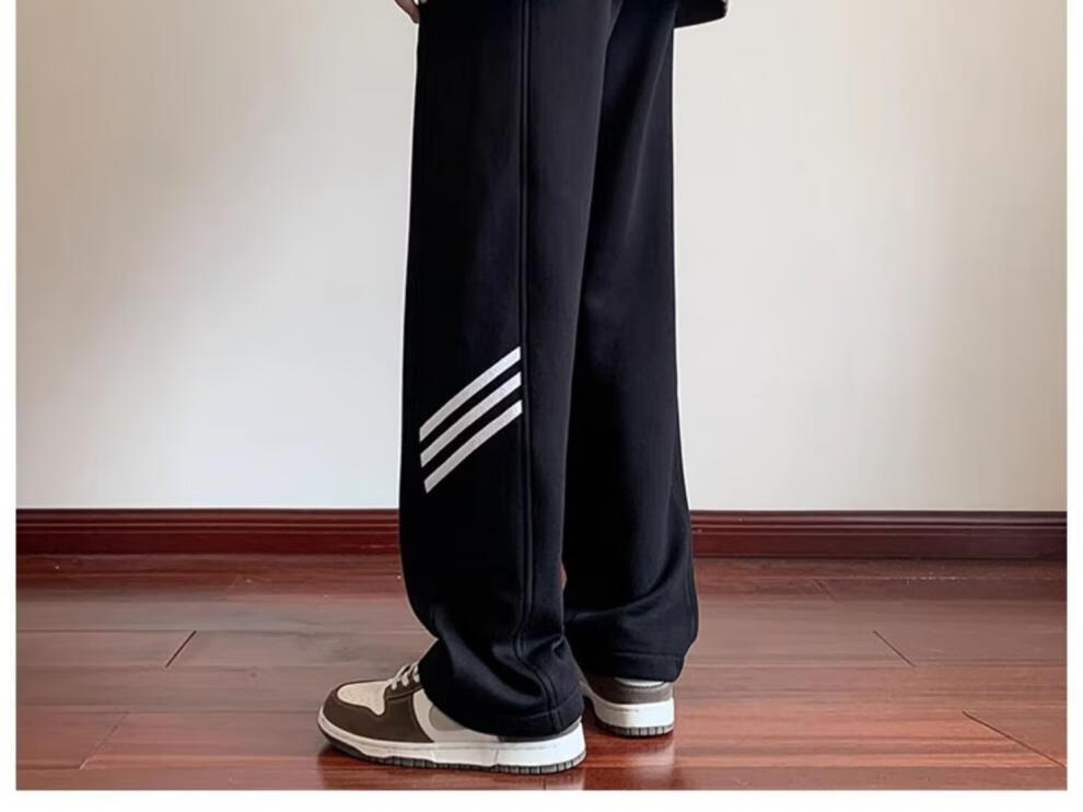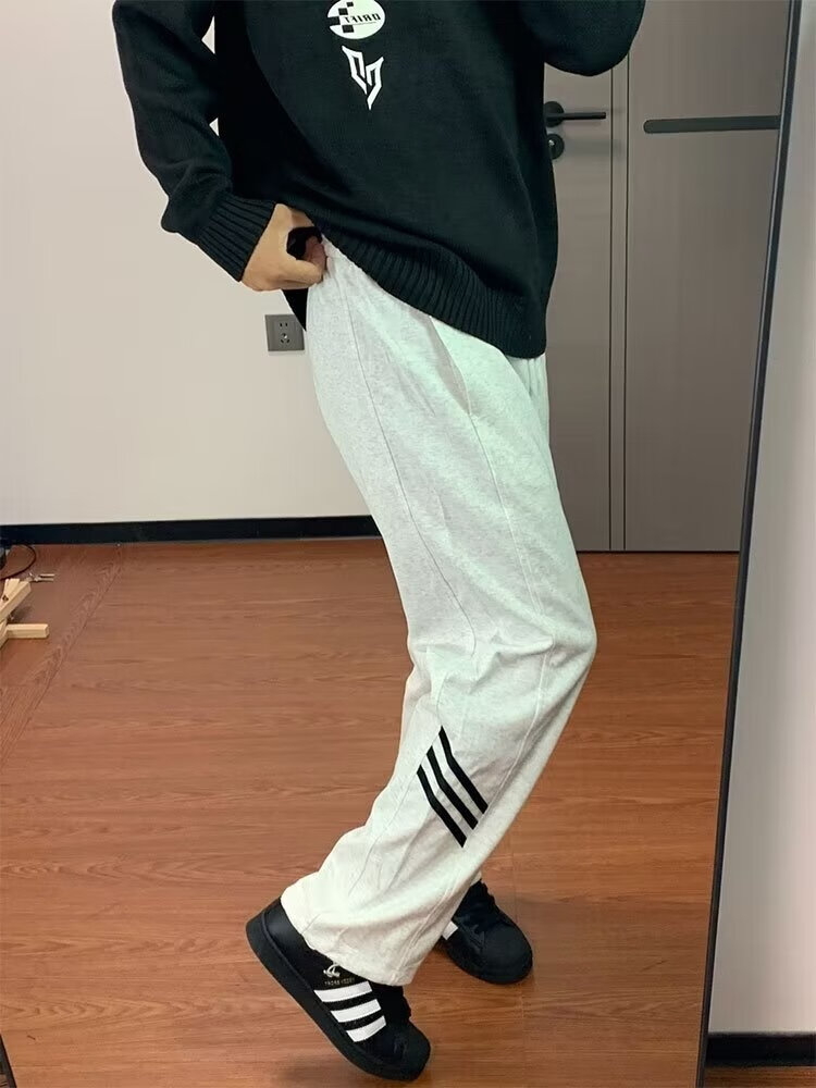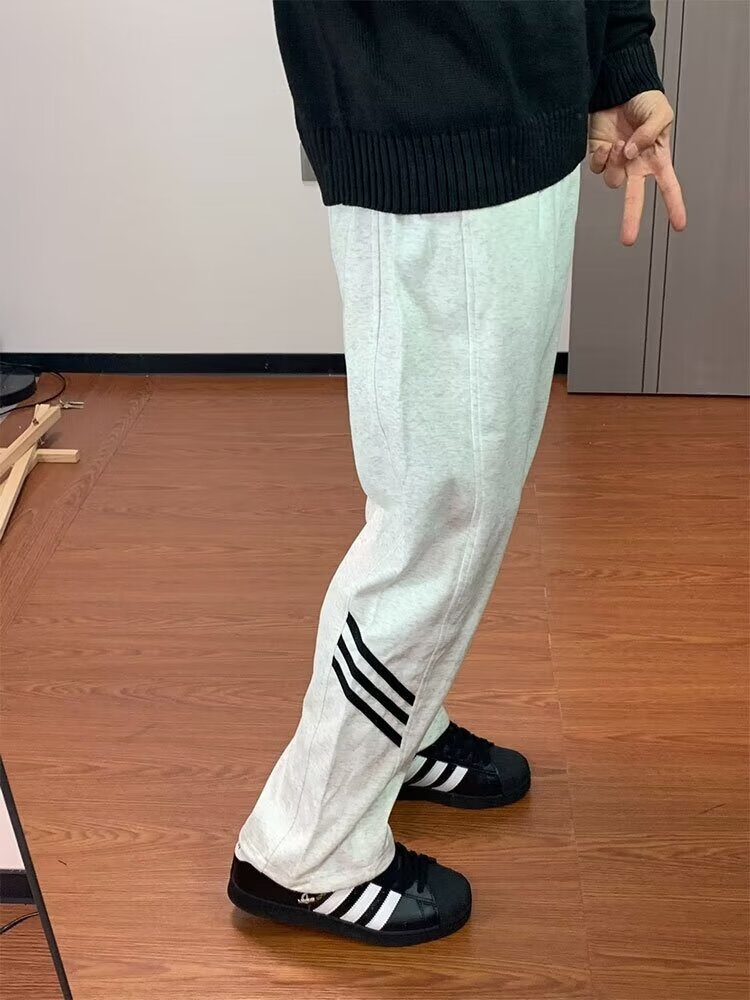 POUM休闲裤男百搭直筒宽松长裤男女美式条纹阔腿裤男日常慵懒风裤子男 BKEG-bk06灰色 2XL 【建议125-140斤】