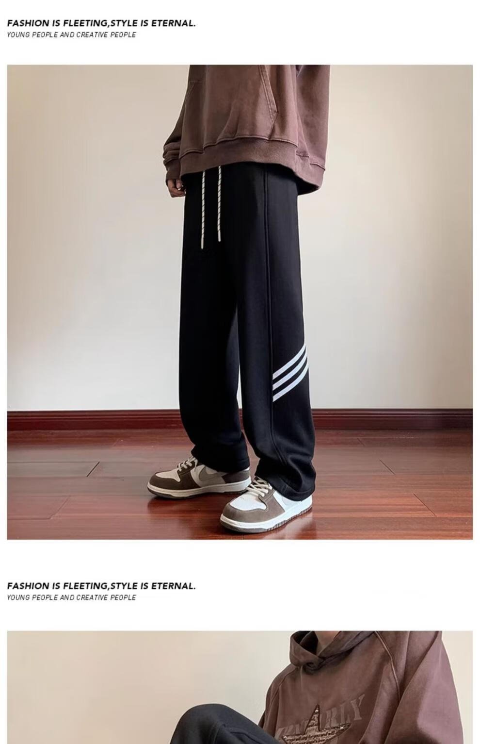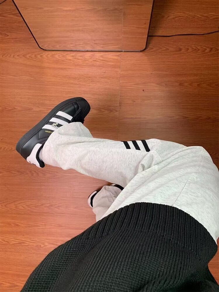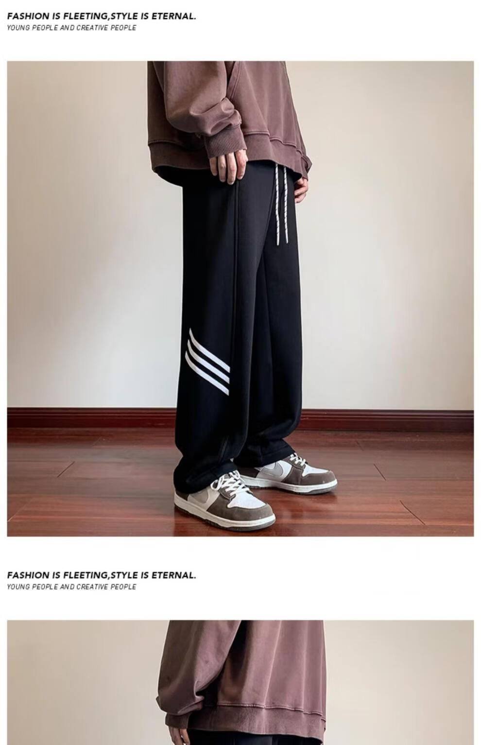 POUM休闲裤男百搭直筒宽松长裤男女美式条纹阔腿裤男日常慵懒风裤子男 BKEG-bk06灰色 2XL 【建议125-140斤】